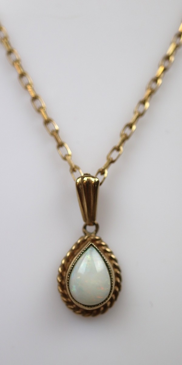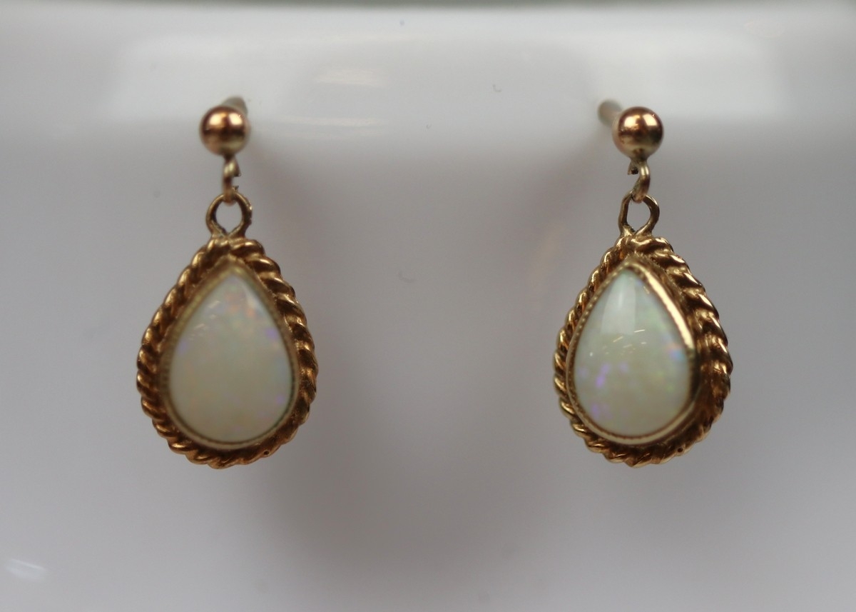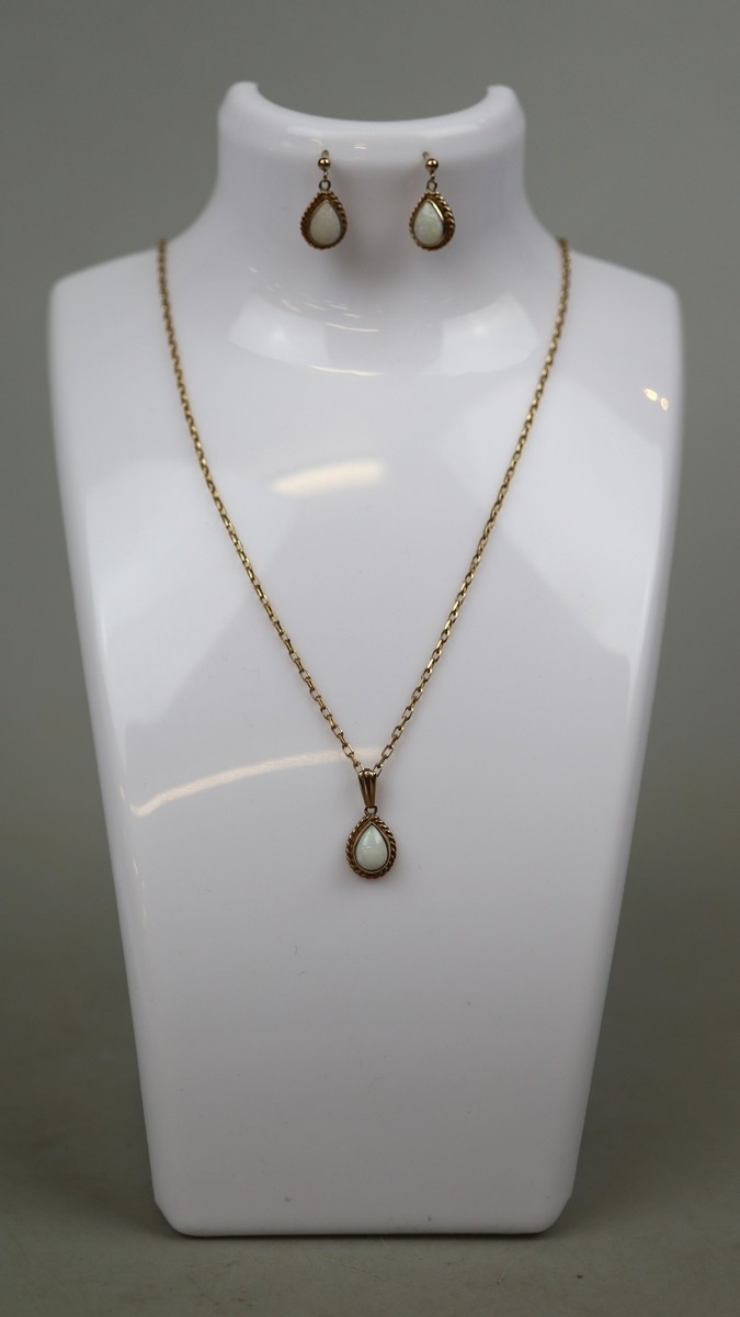 9ct gold and opal drop earrings and pendant on chain set - Approx 4.8g