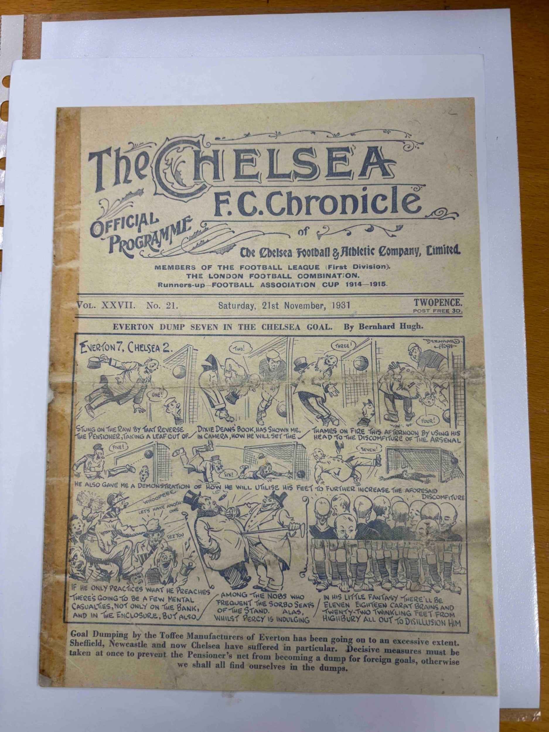 Chelsea 1931/1932 v Arsenal. Professional repair to previously taped edge. VG