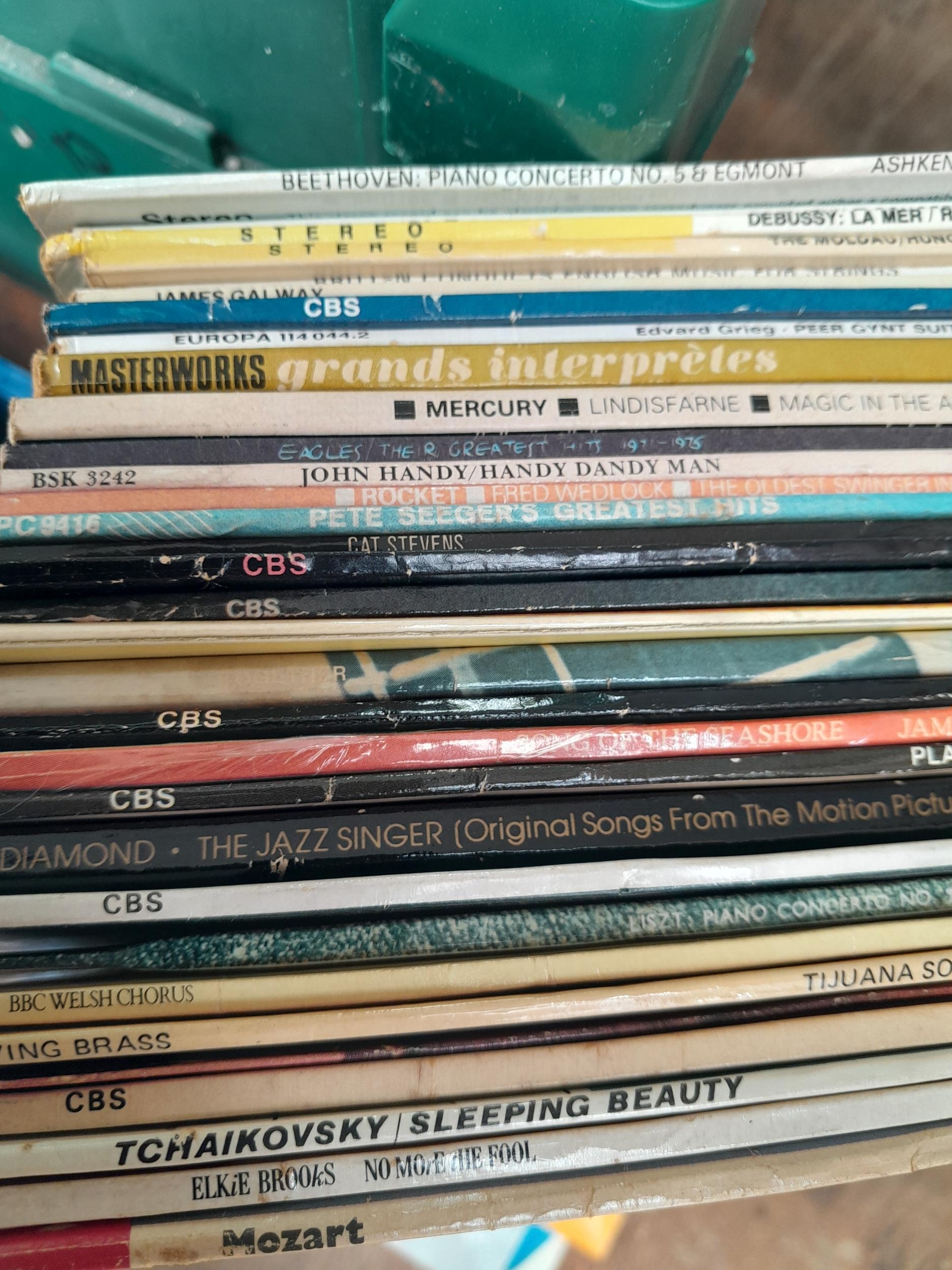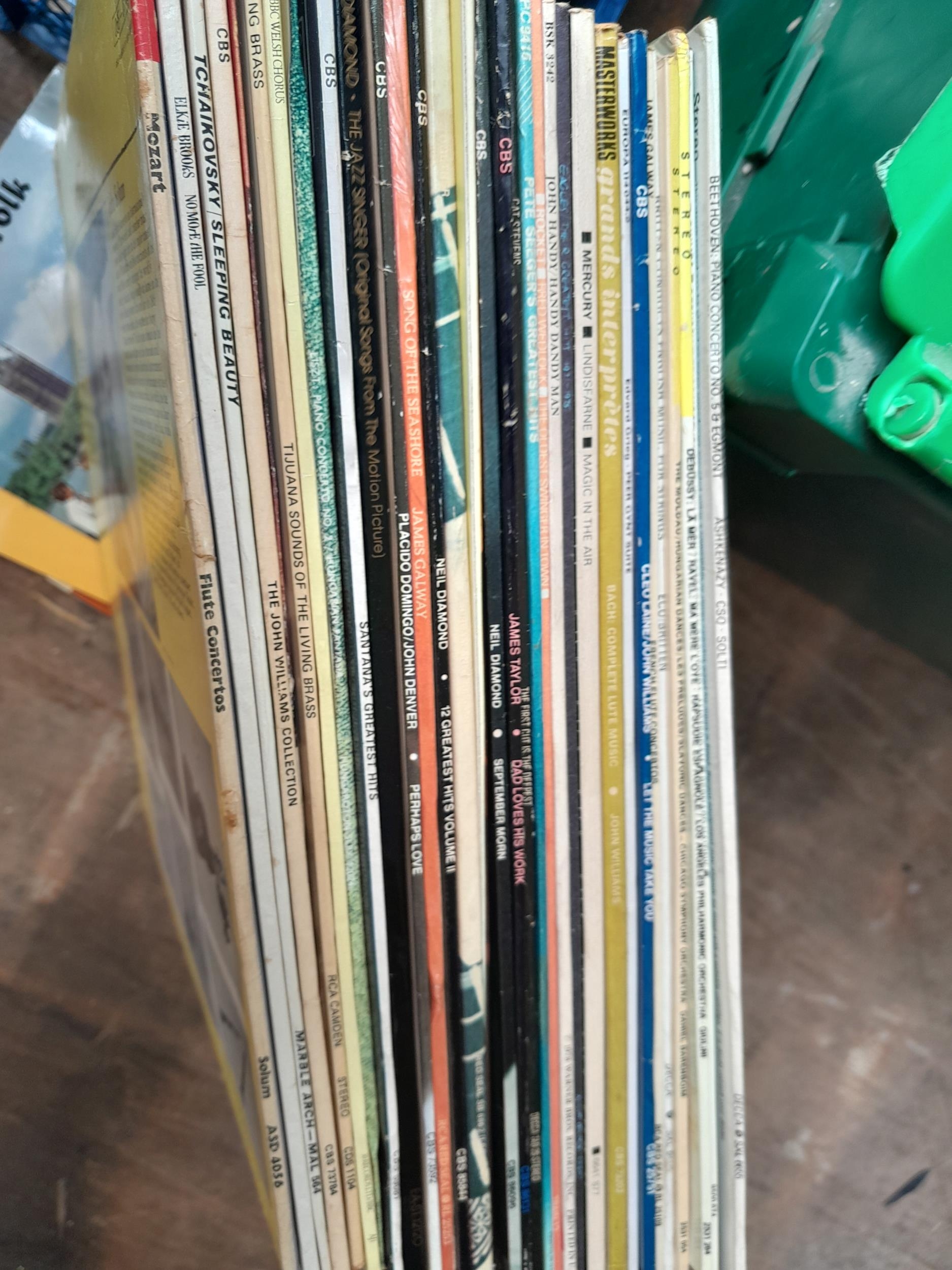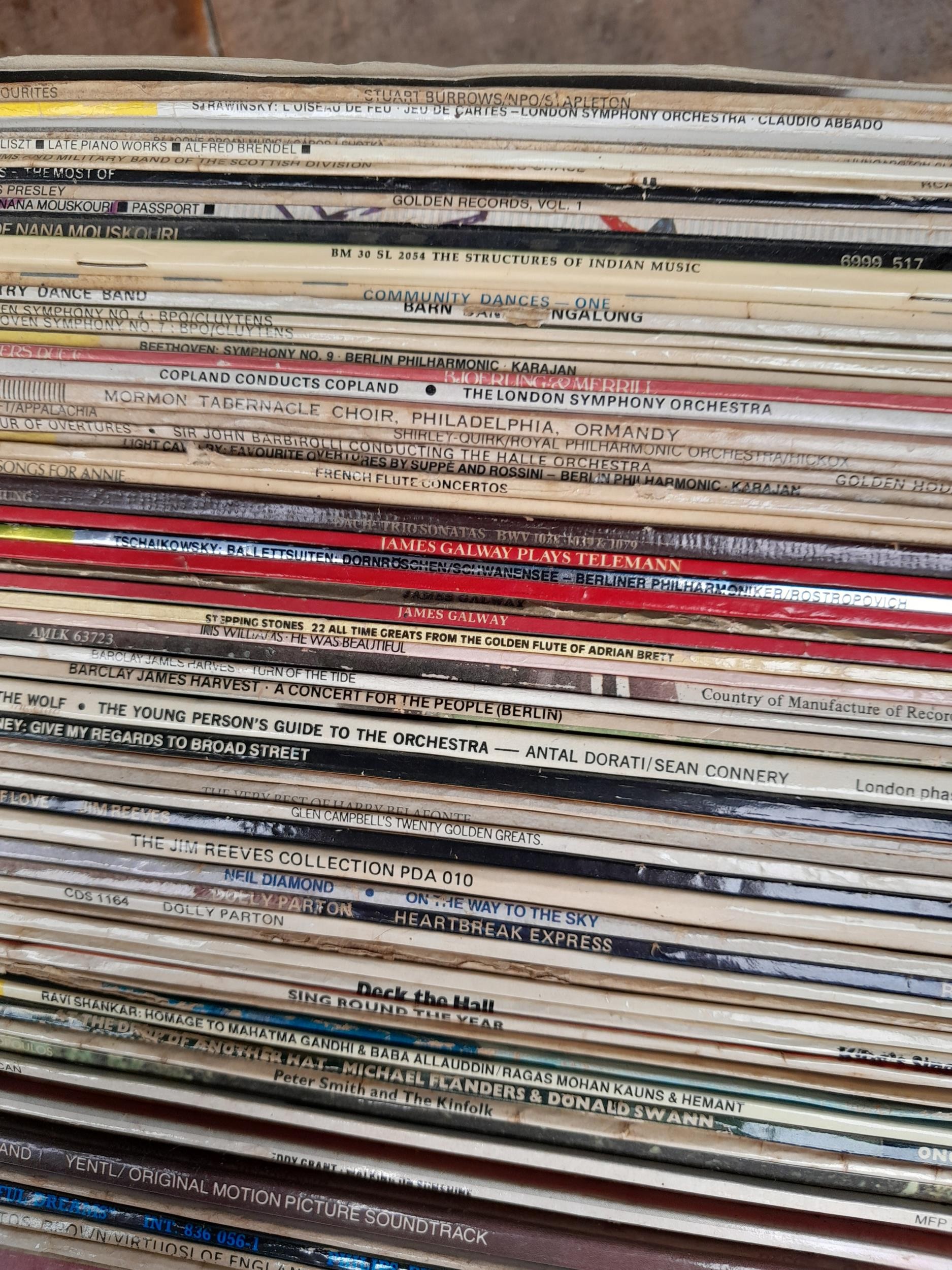 3 x Boxes of mixed theme records, Classical some stereo press noticed, some singer song writer noticed, Roy Harper, Pete Seeger, James Taylor