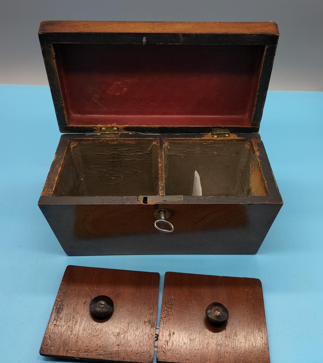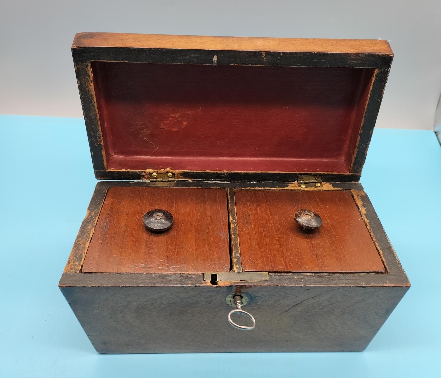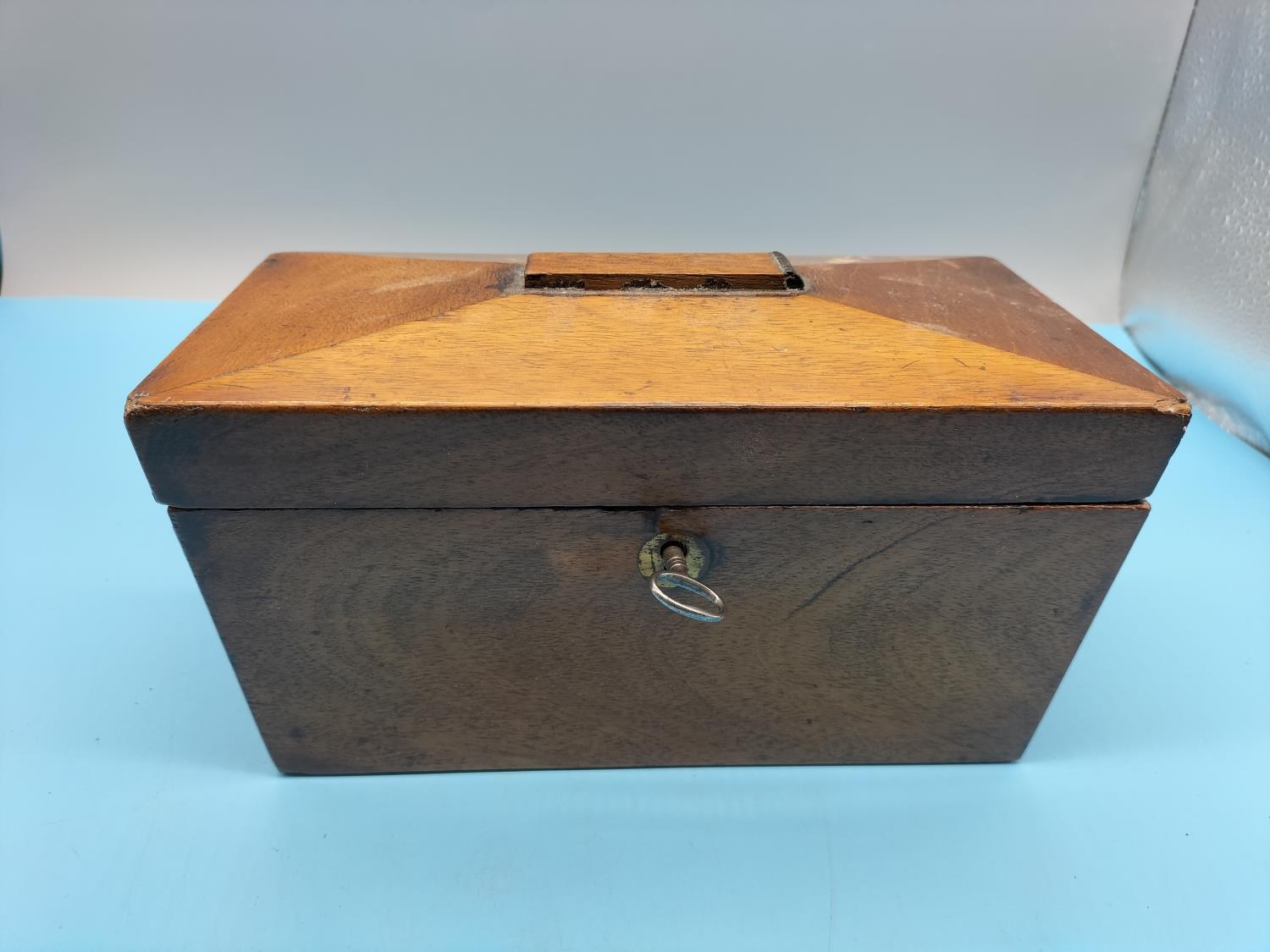 Victorian Tea Caddy with Key. 12cm High, 23cm x 12cm.