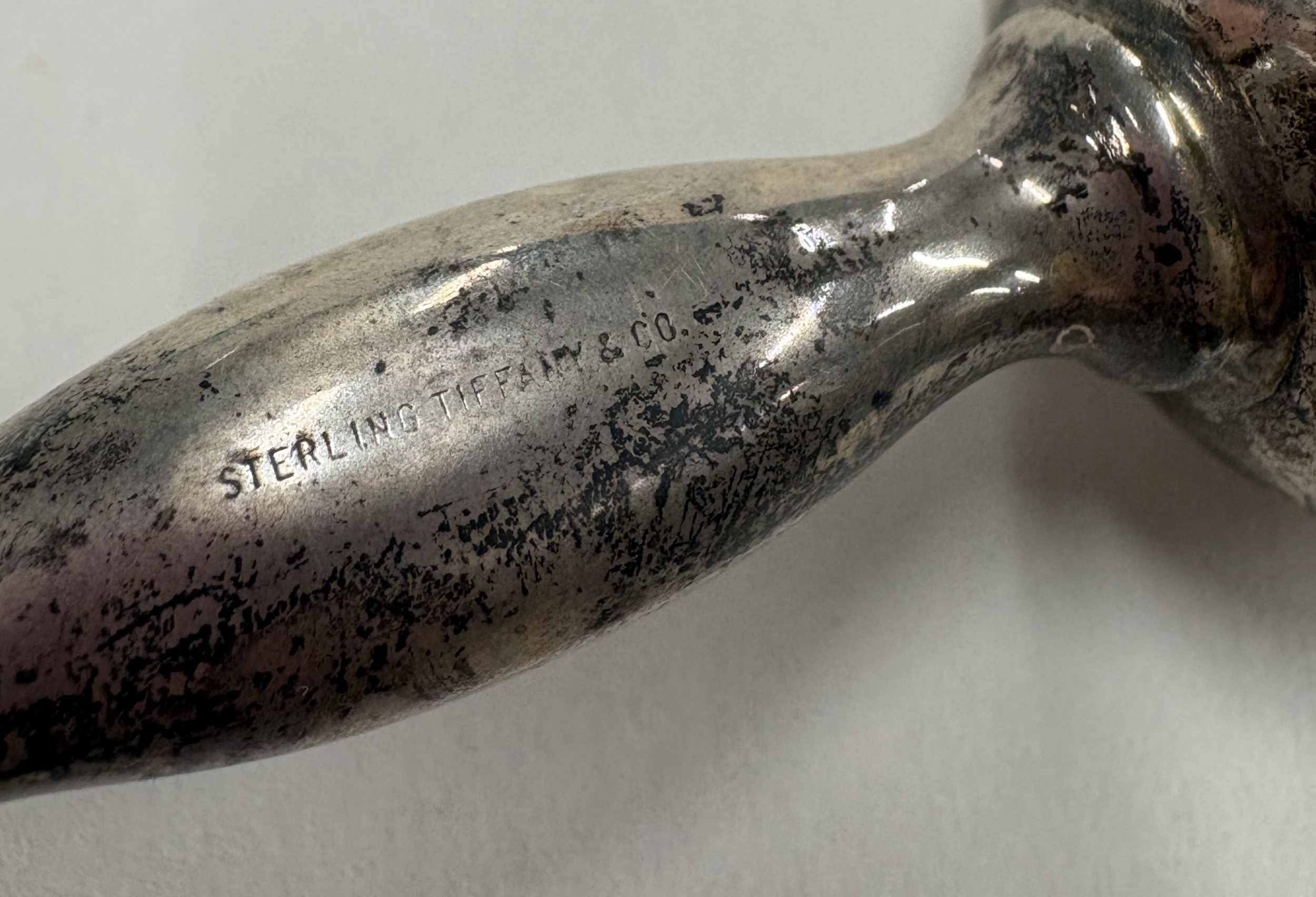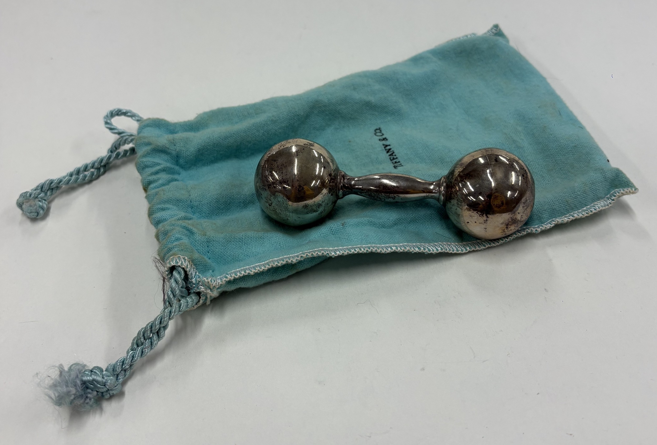 A baby's silver rattle contained within original pouch. By Tiffany & Co. Approx. 53 grams. Est. £50 - £80.