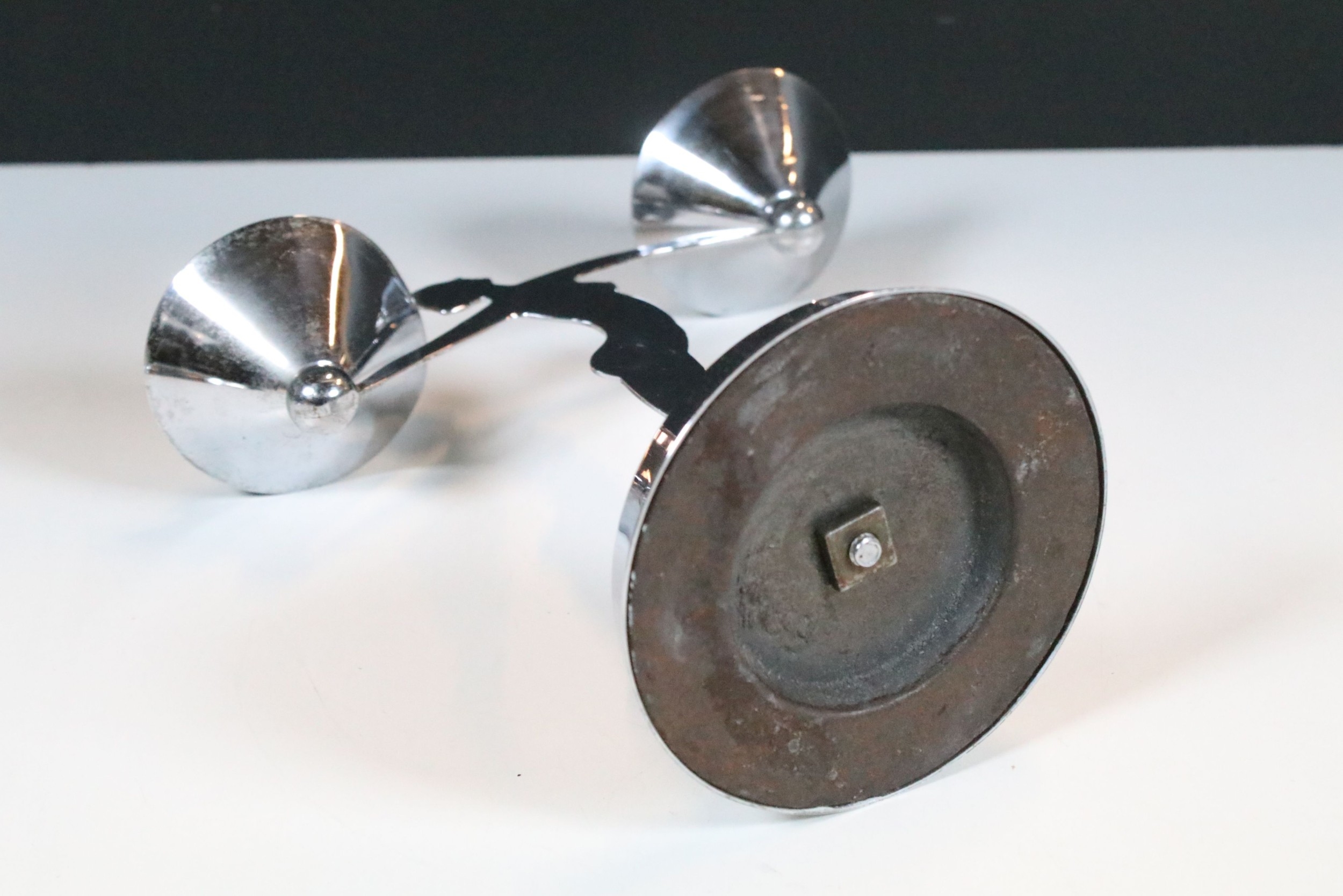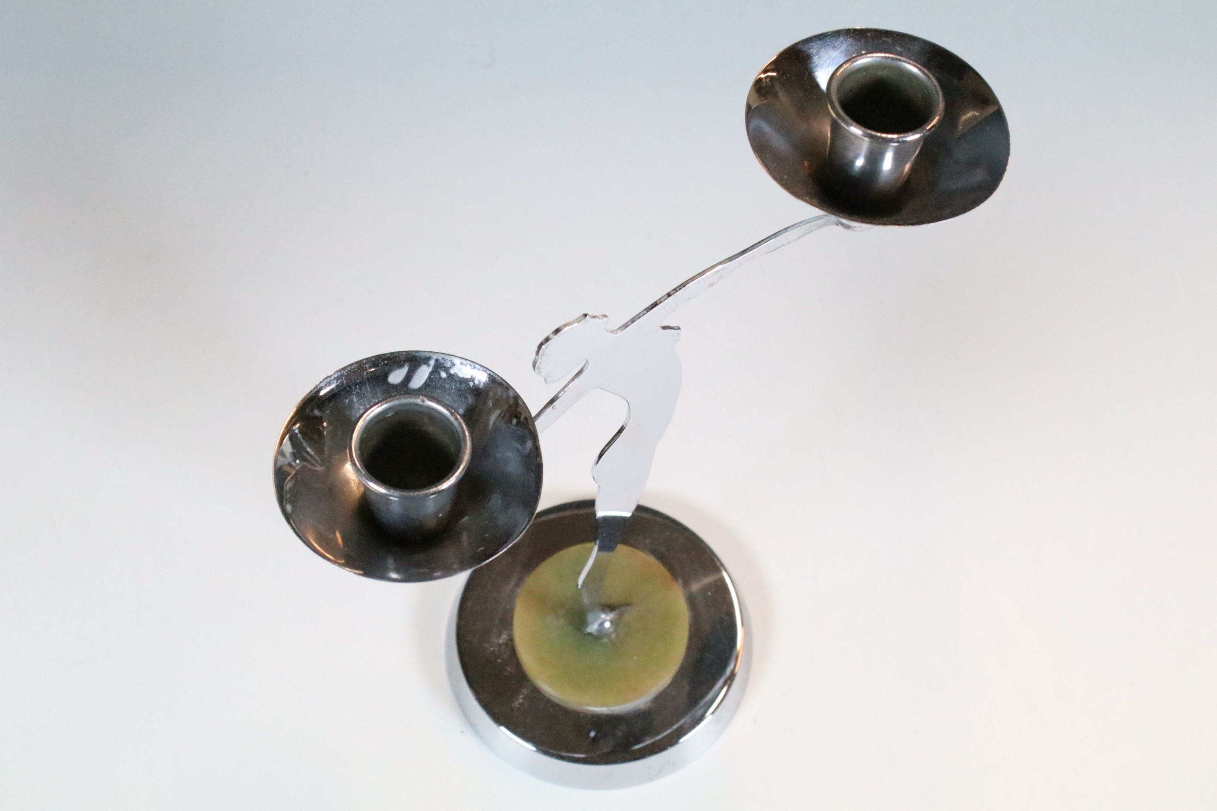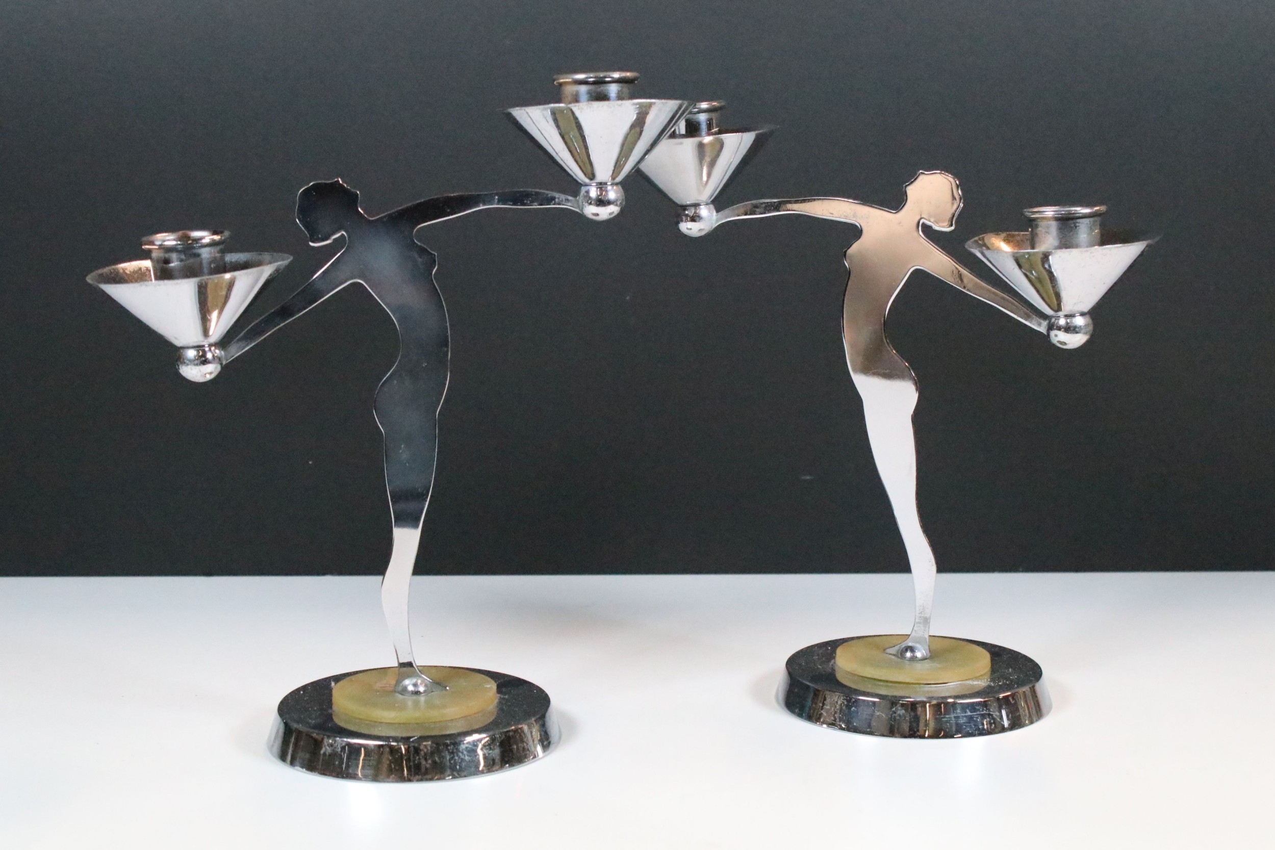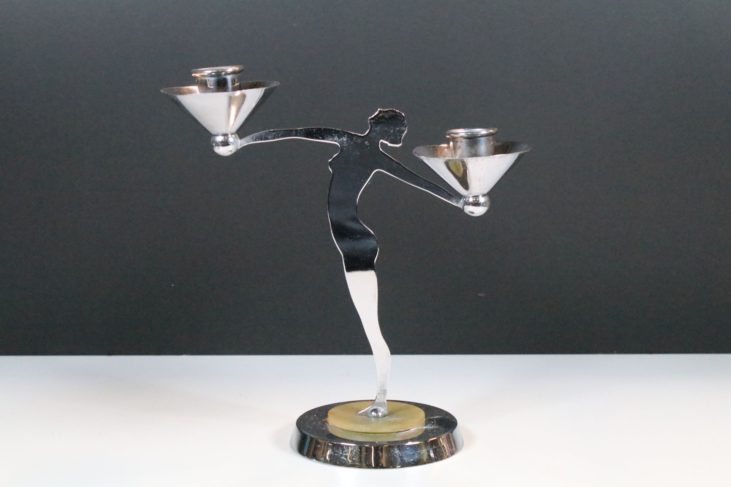Pair of Art Deco figural chromed candlesticks, in the form of a nude lady, H 23cm (2)