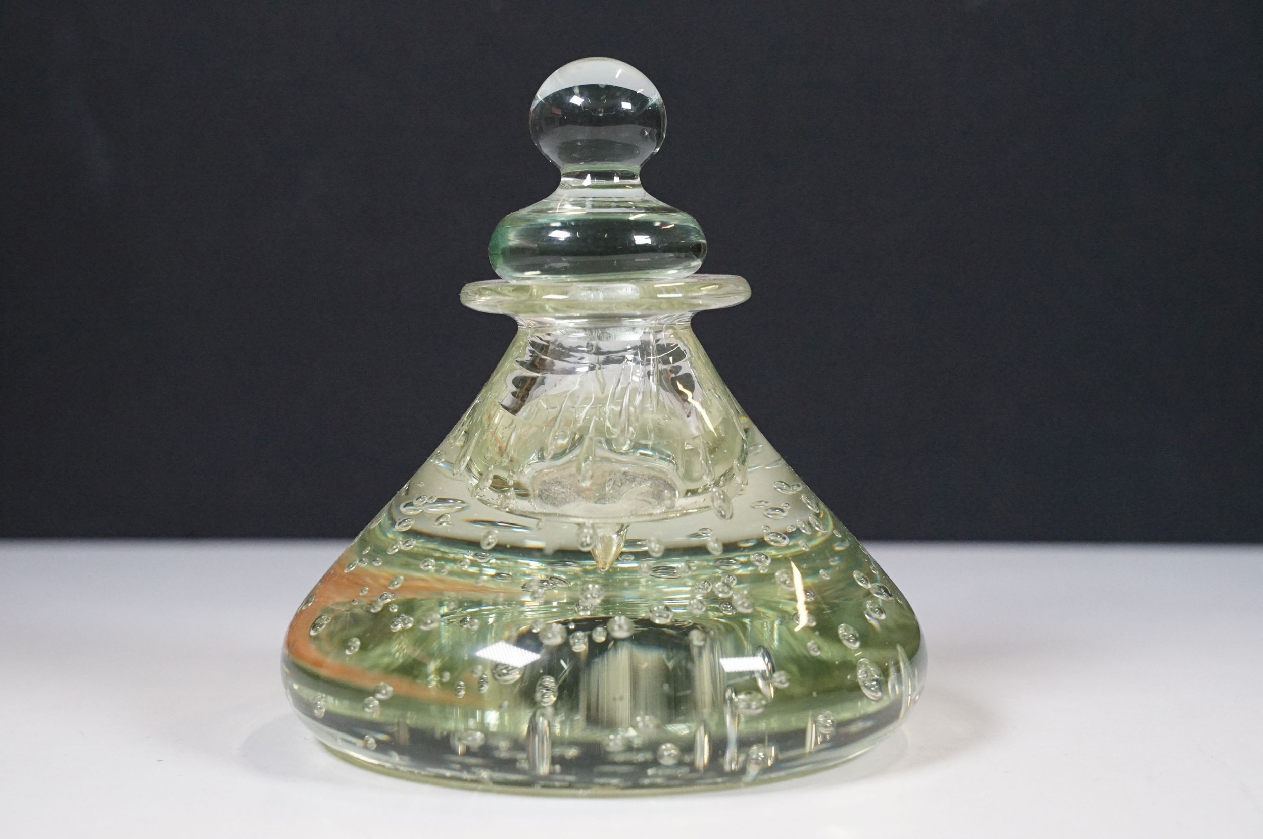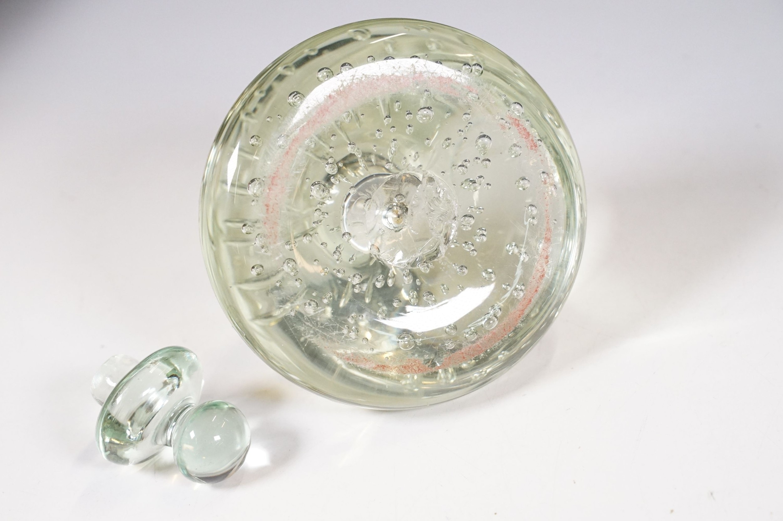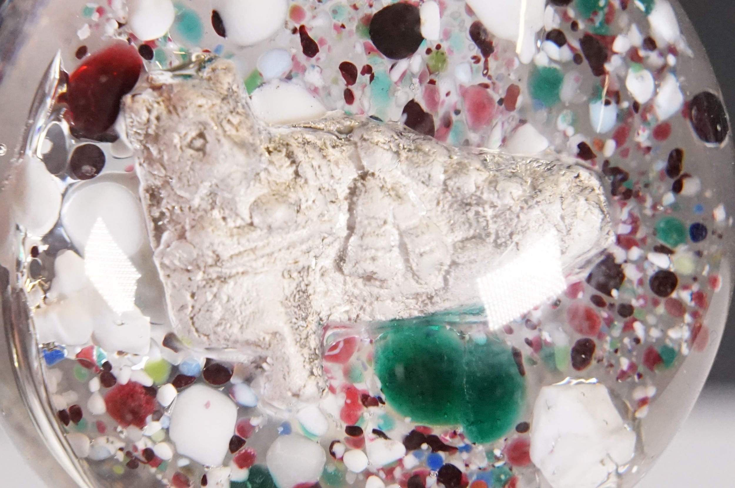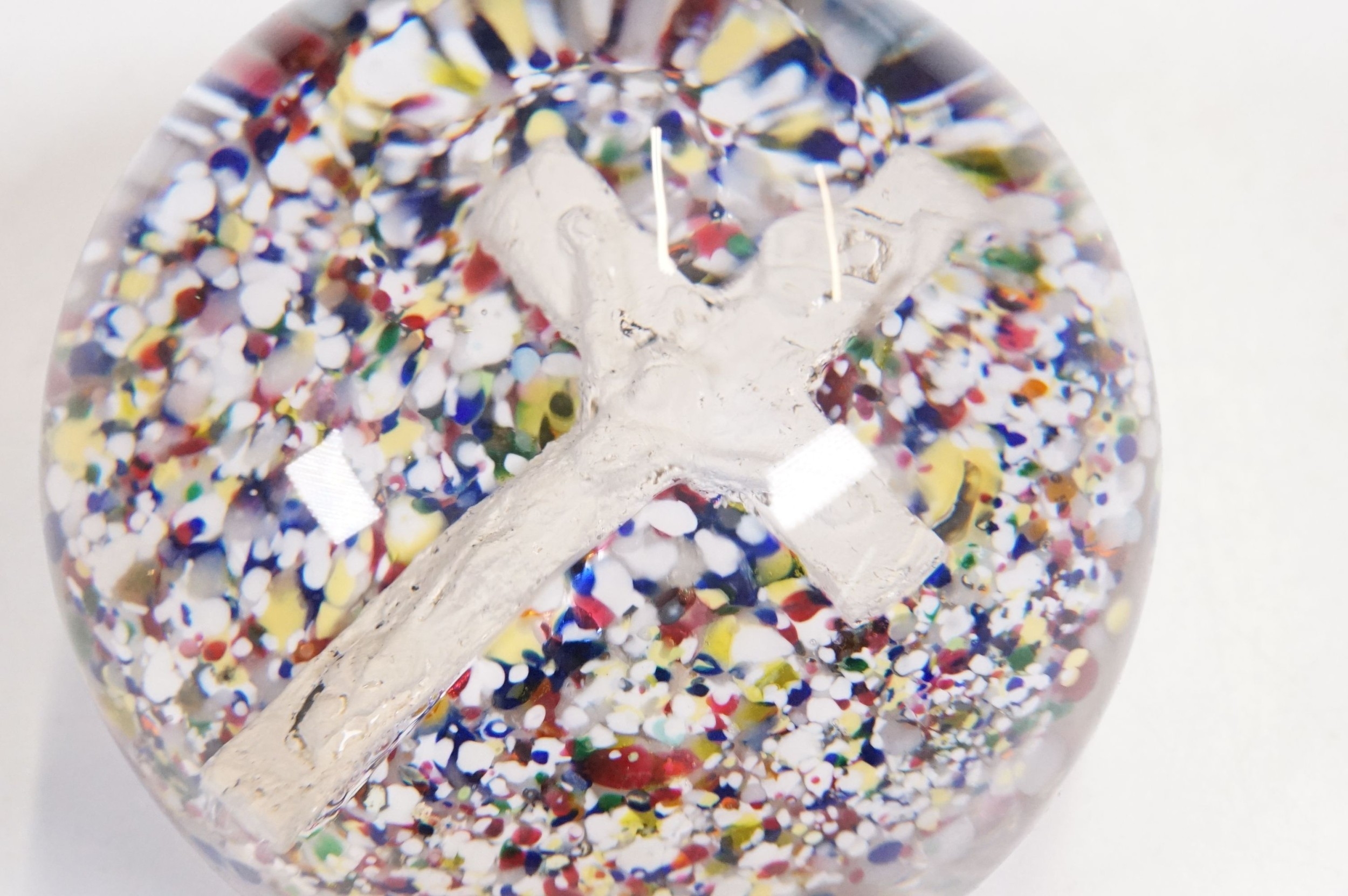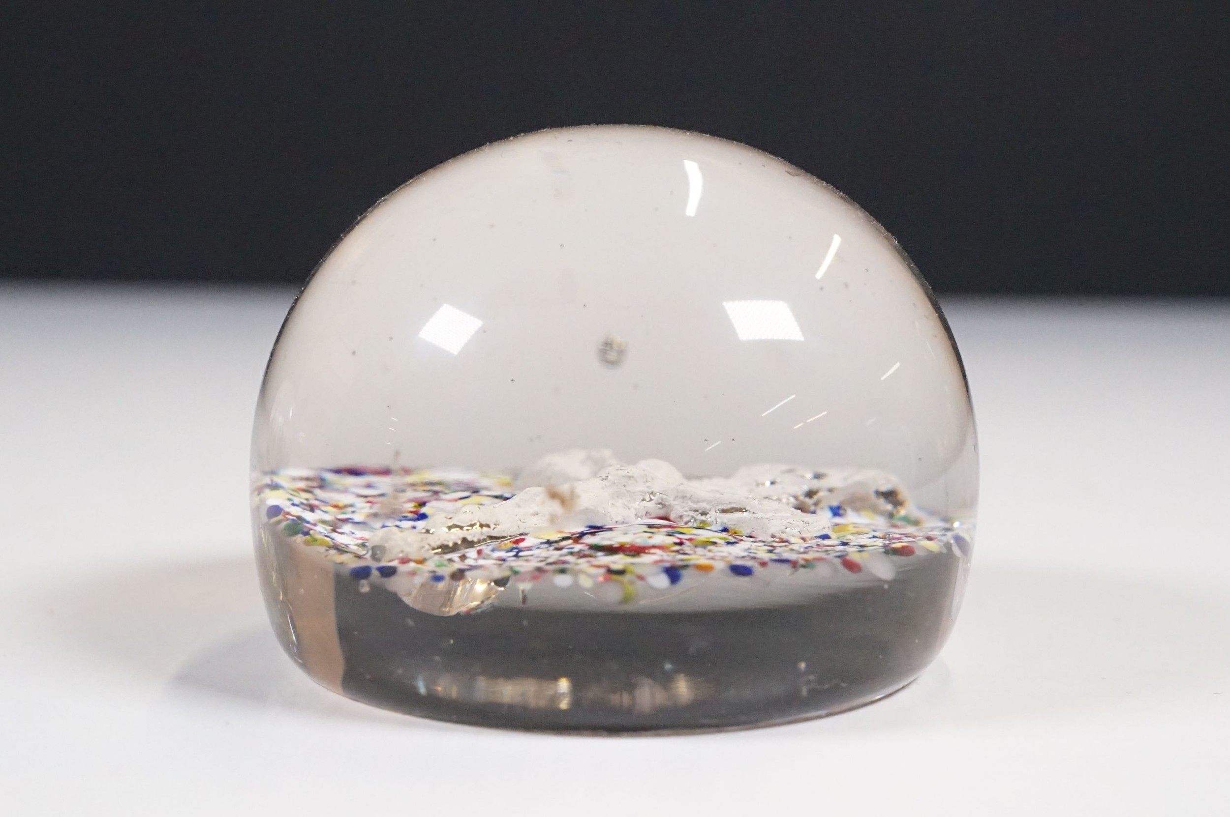 Victorian dump glass bubble ink well together with two sulfide inclusion paperweights, one lion and one crucifix example (1 box)