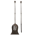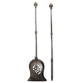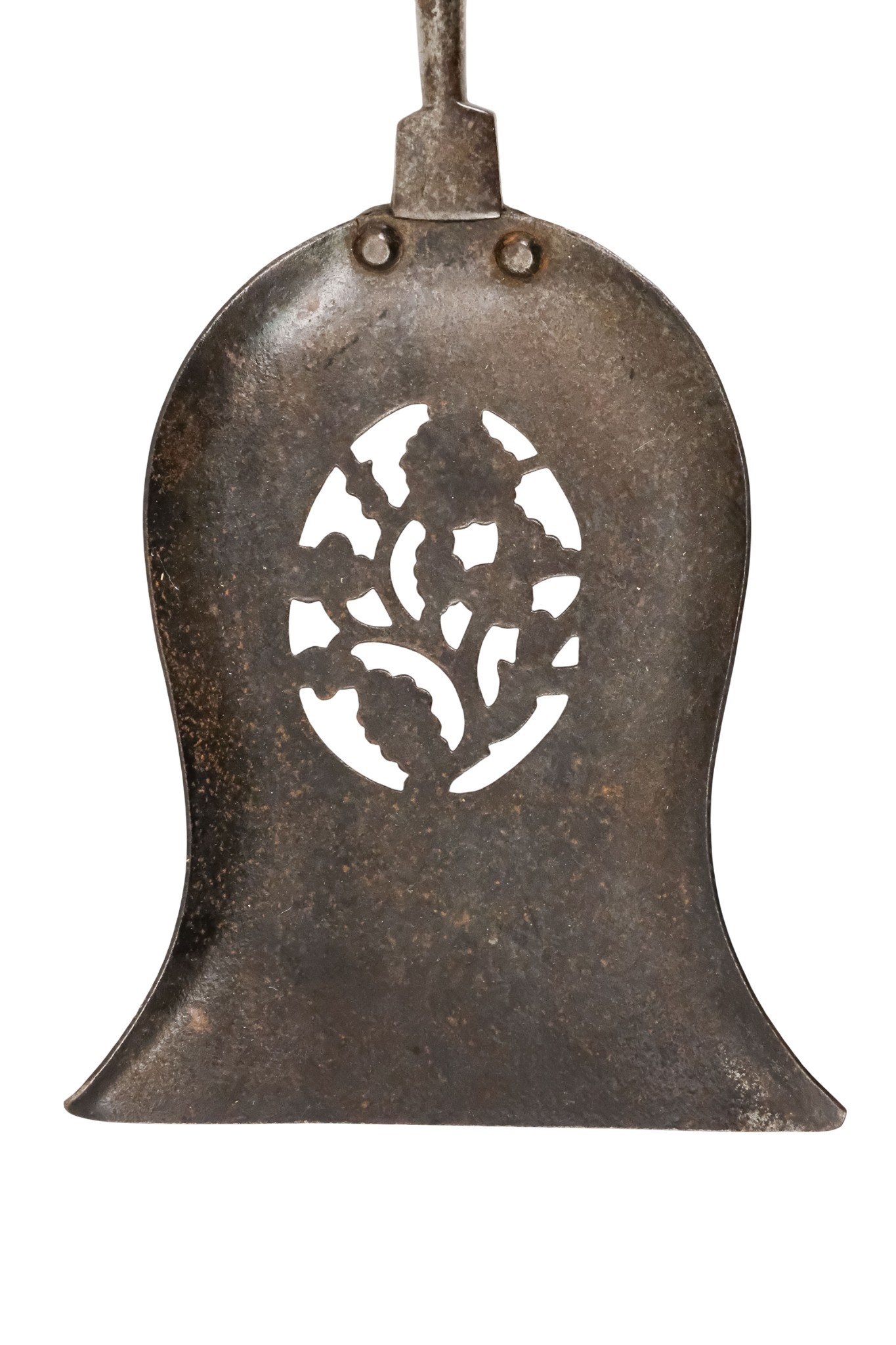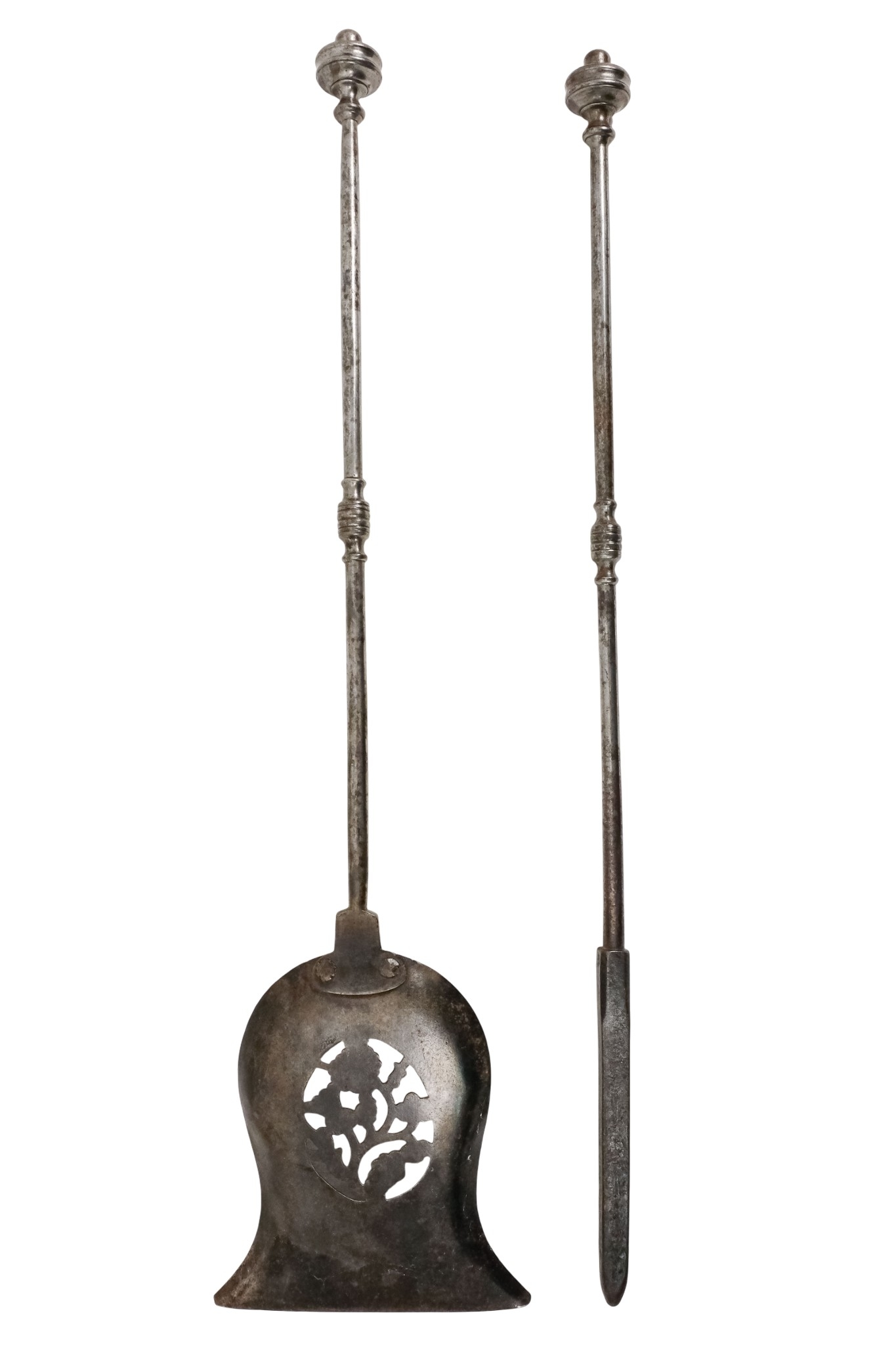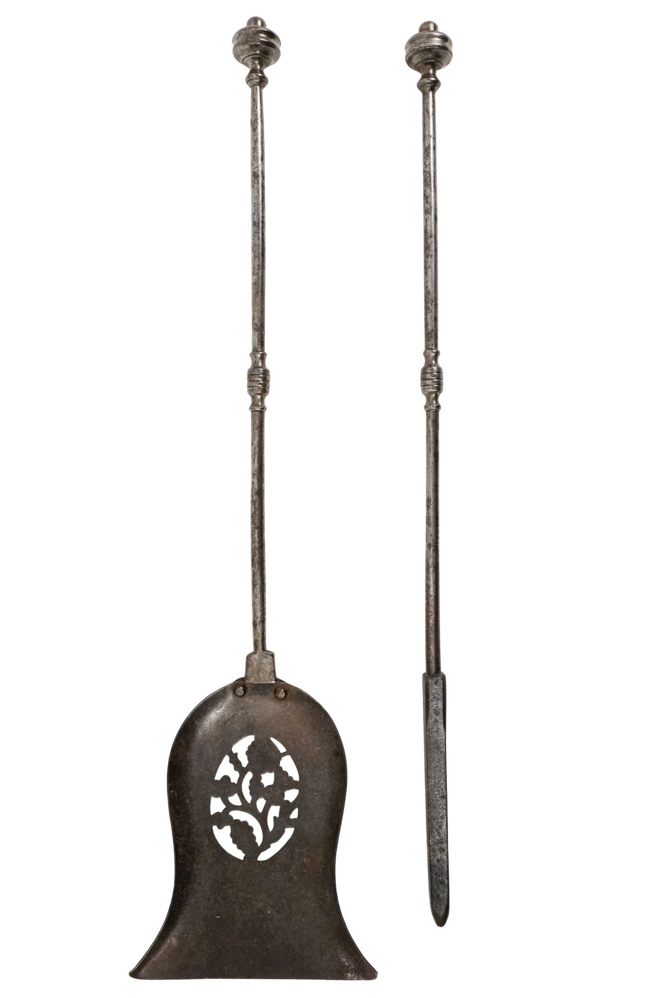 A steel fire shovel - 73cm long, together with a steel fire poker, 71cm long.
