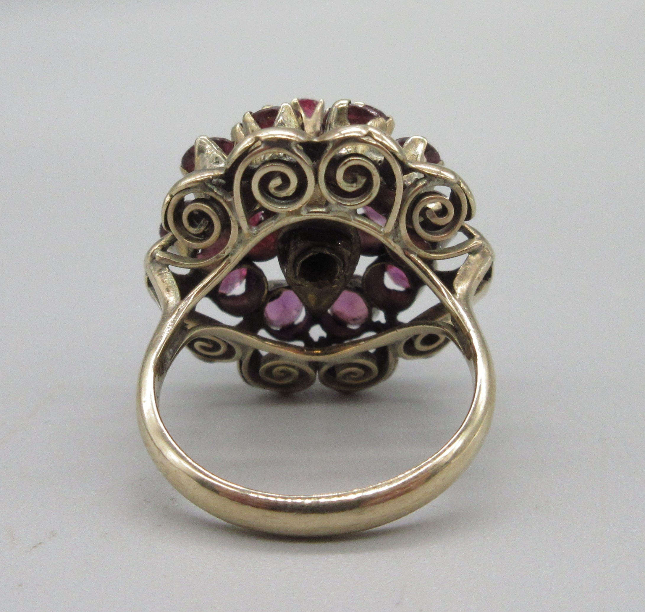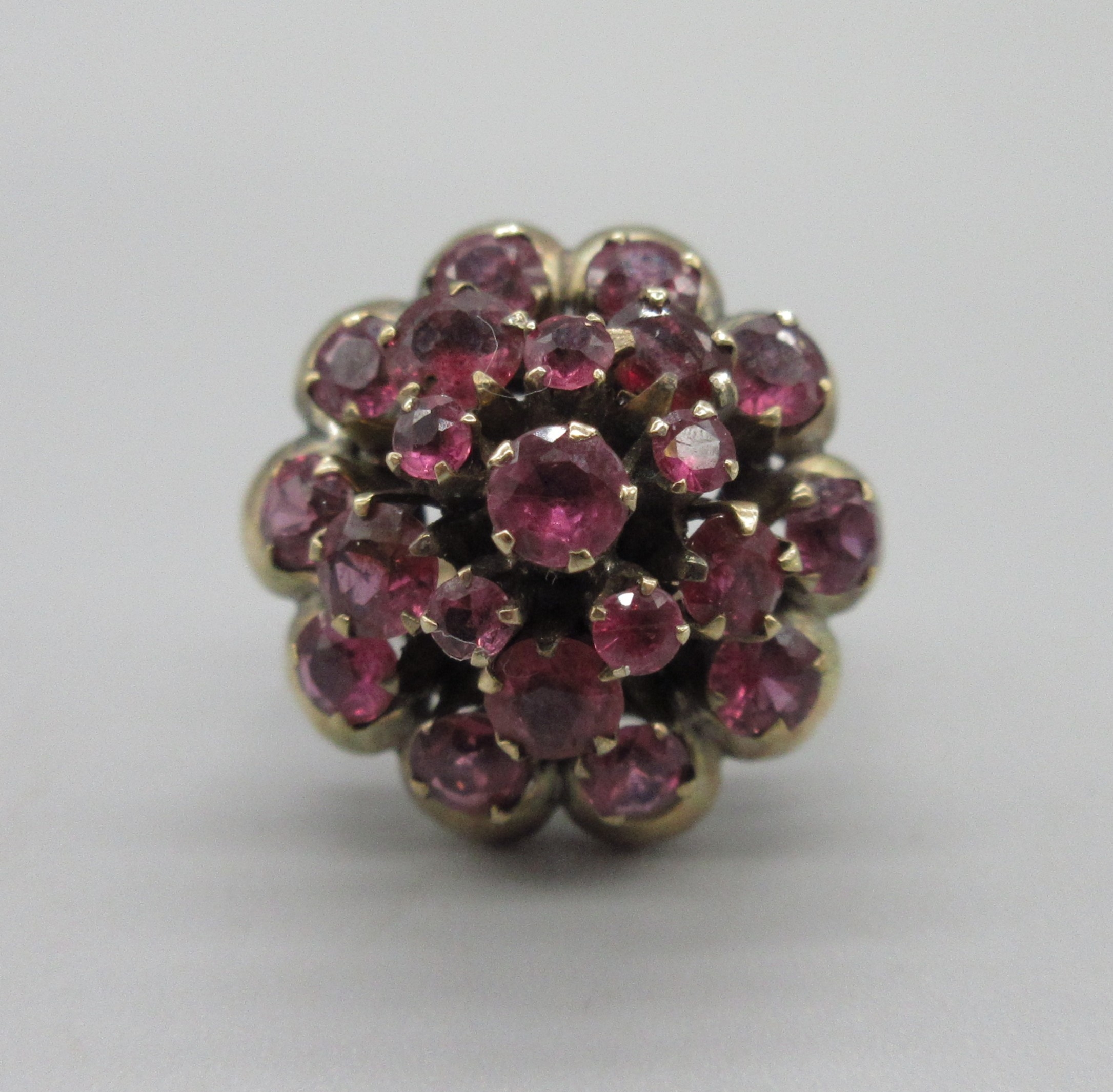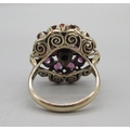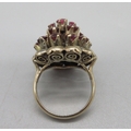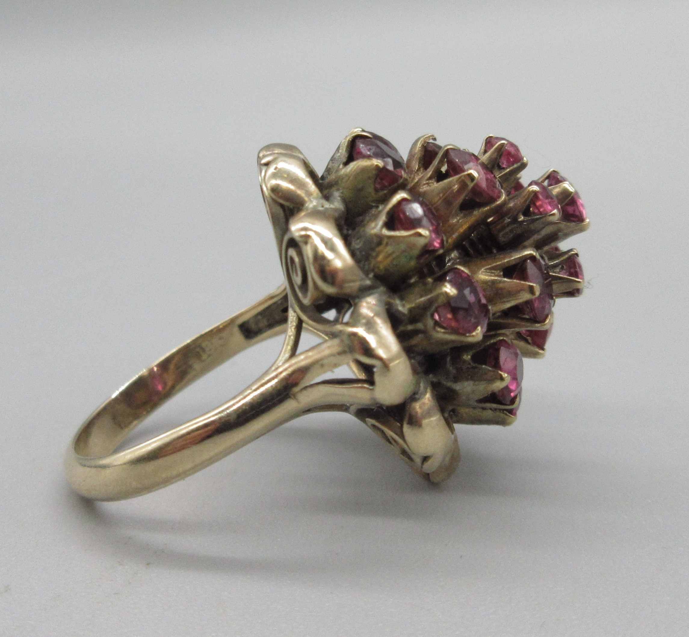 18ct yellow gold princess ring set with twenty-one rubies, stamped 18k, size K, 6.6g