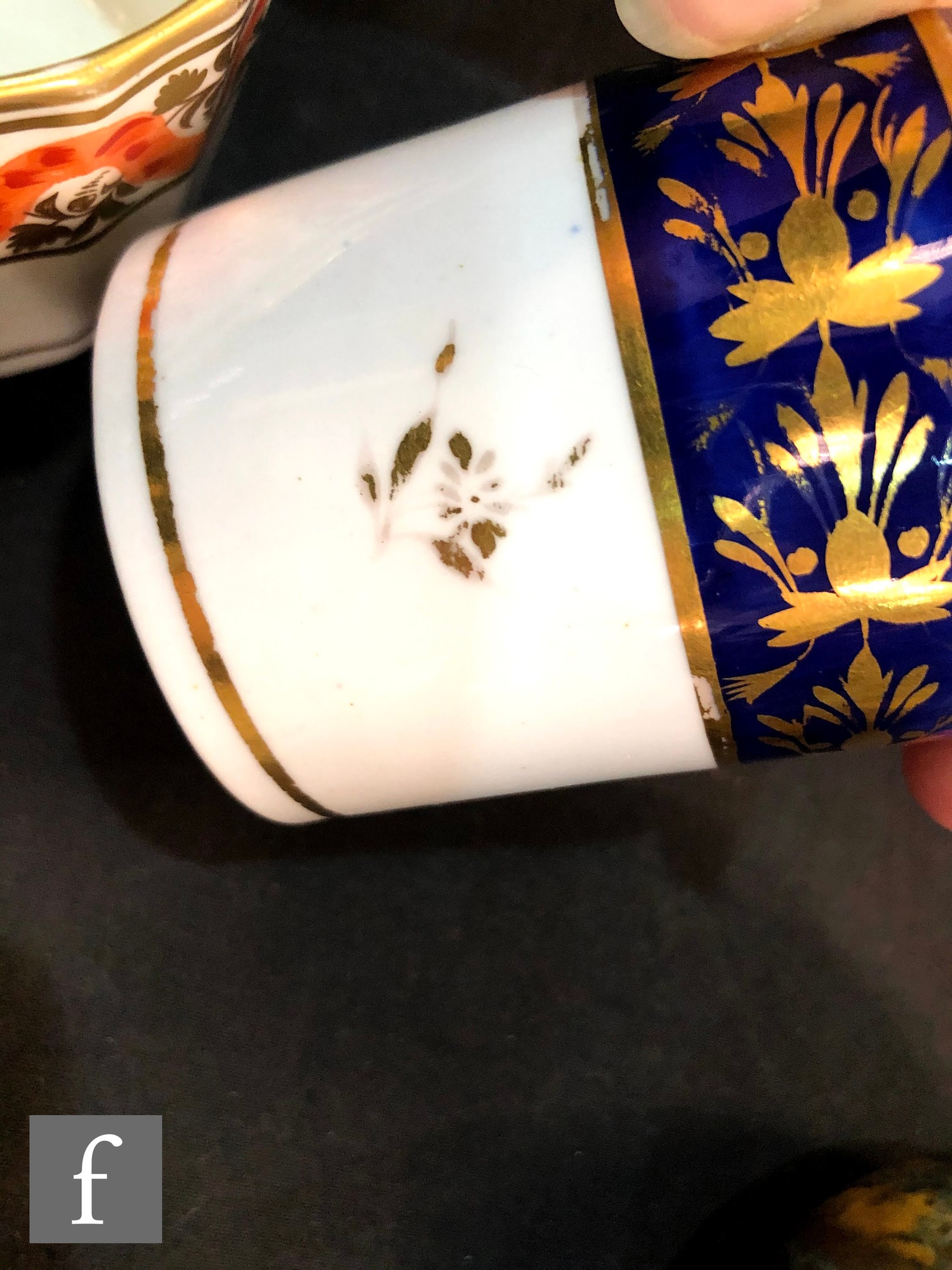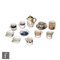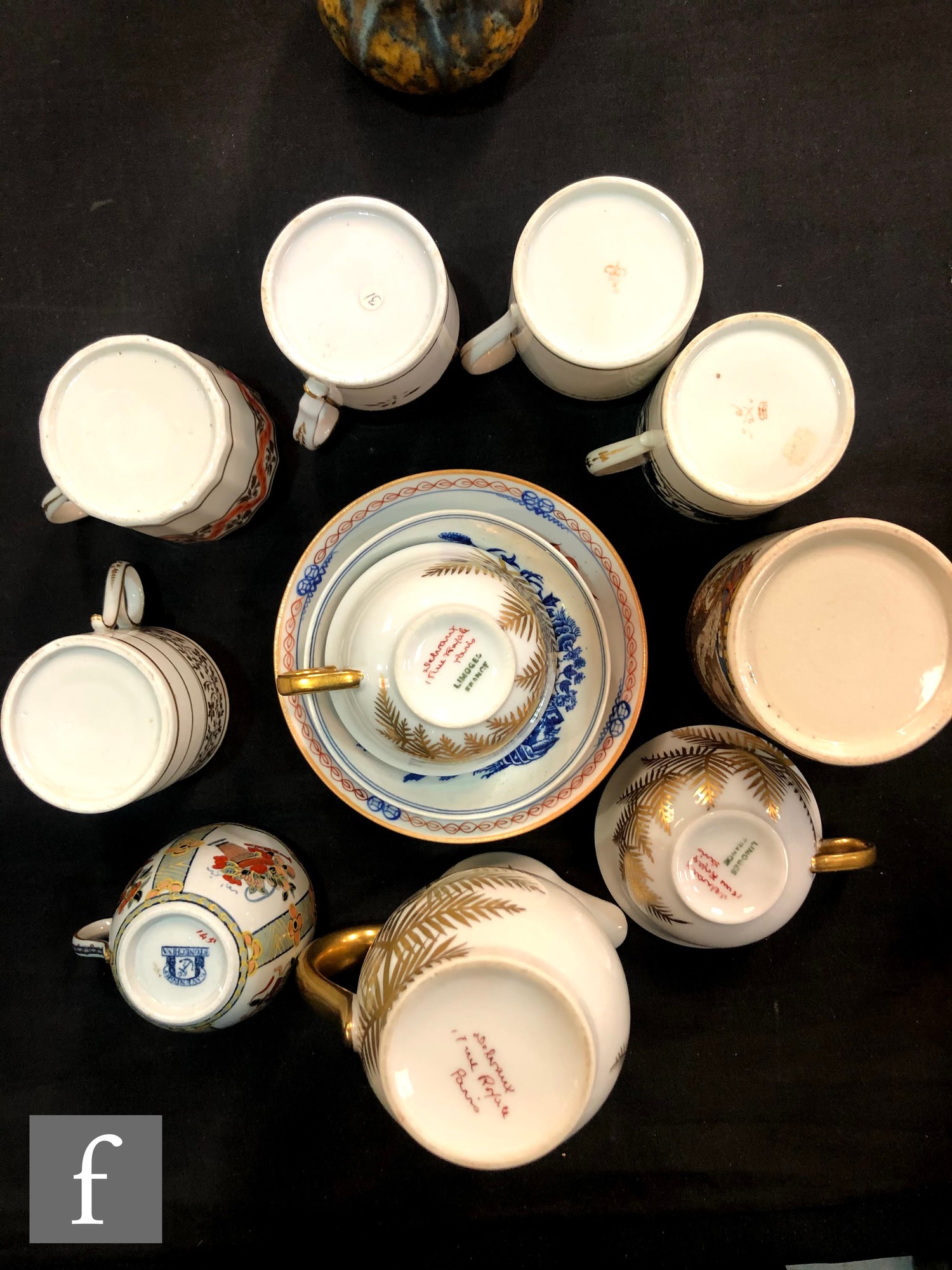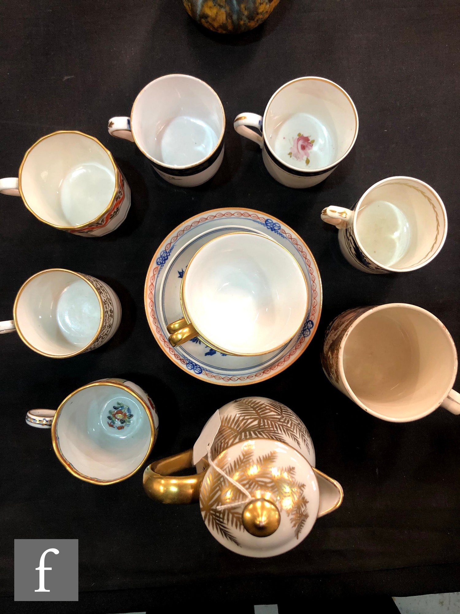 A collection of assorted 18th and 19th Century coffee cups to include Derby, Flight Barr and Barr Worcester and Davenport together with a Worcester Fence pattern saucer and a Limoges jug with two matching teacups etc. (qty)