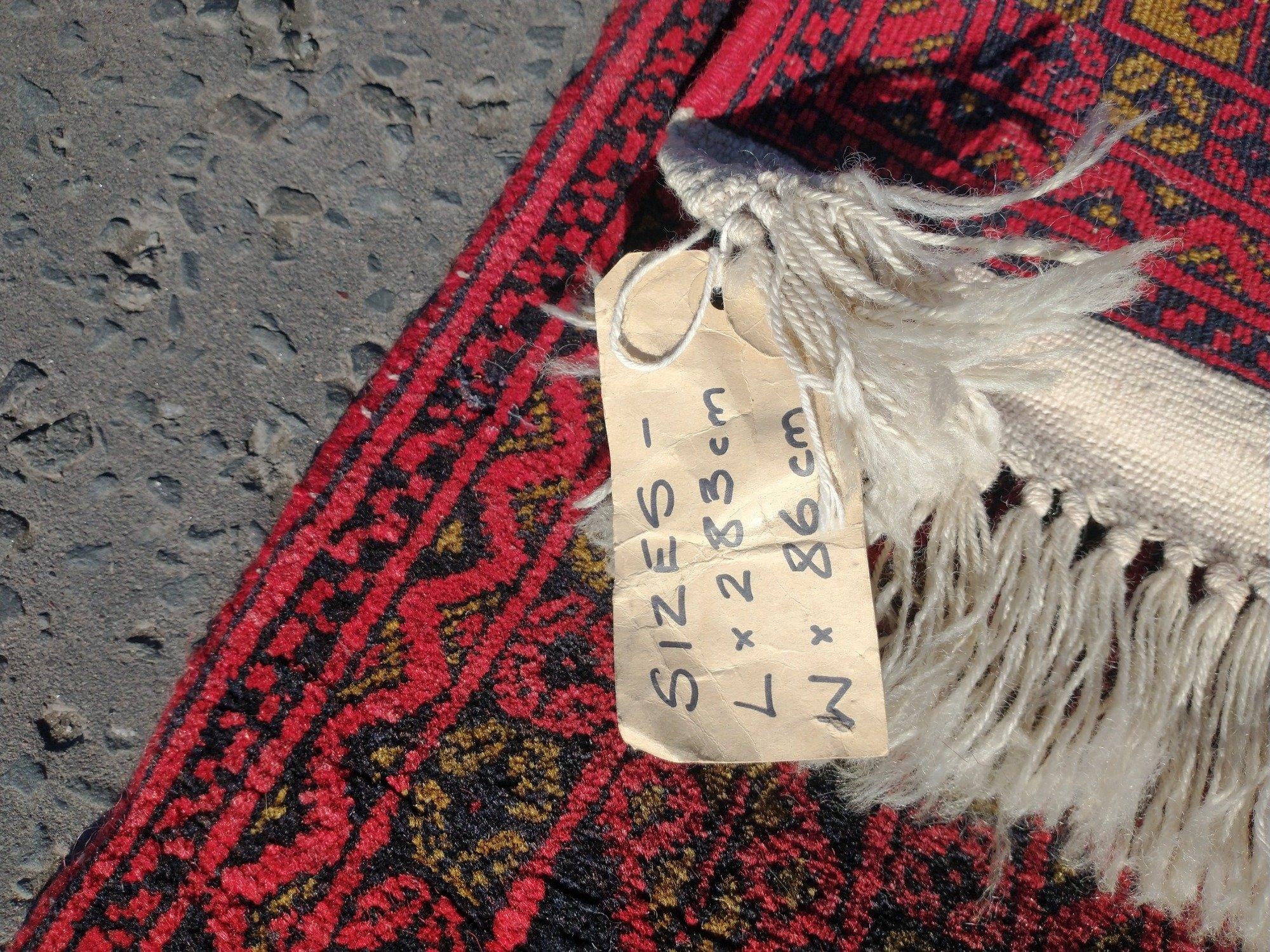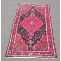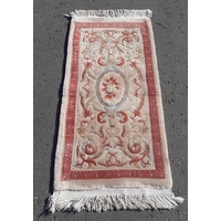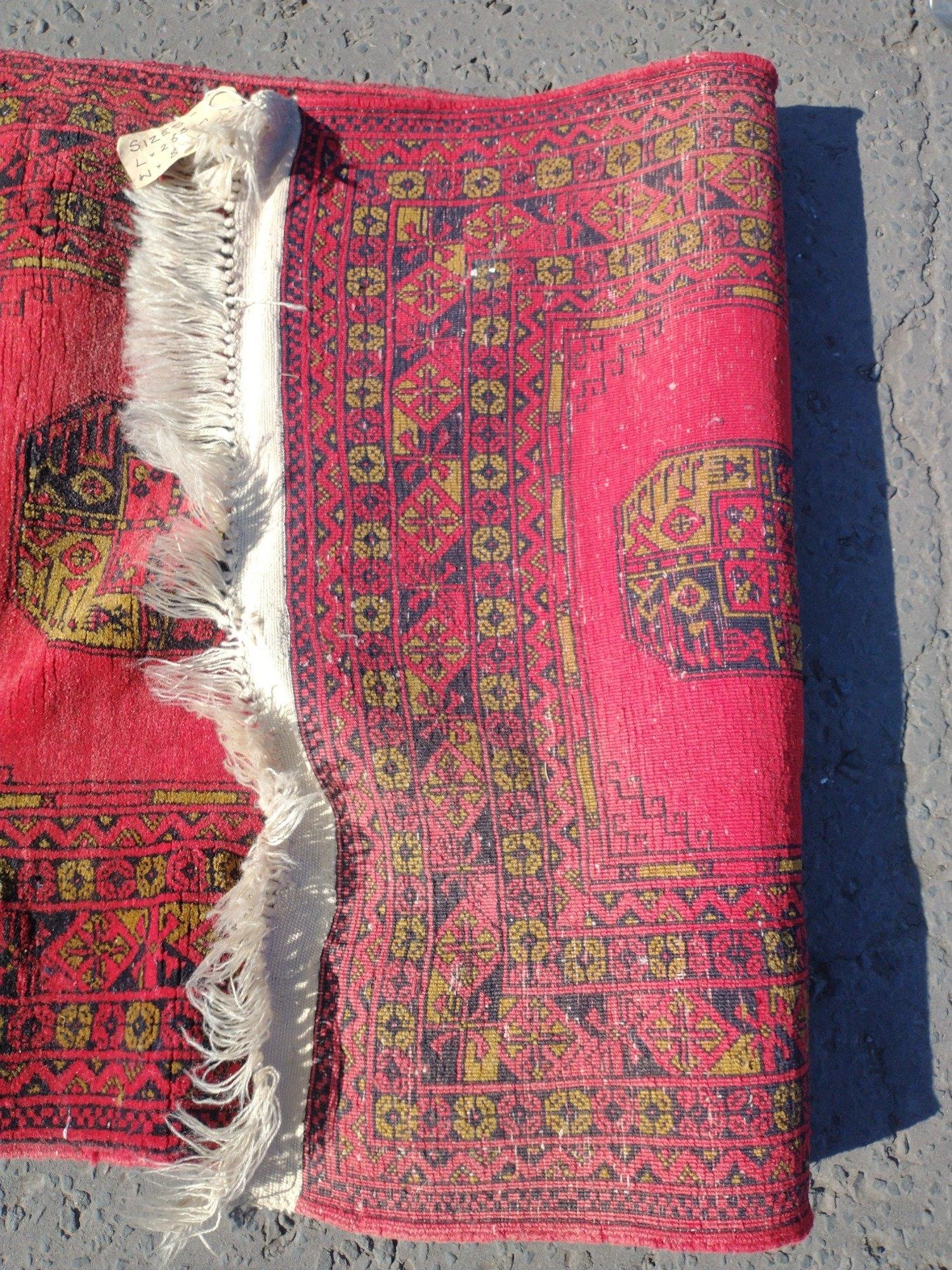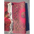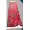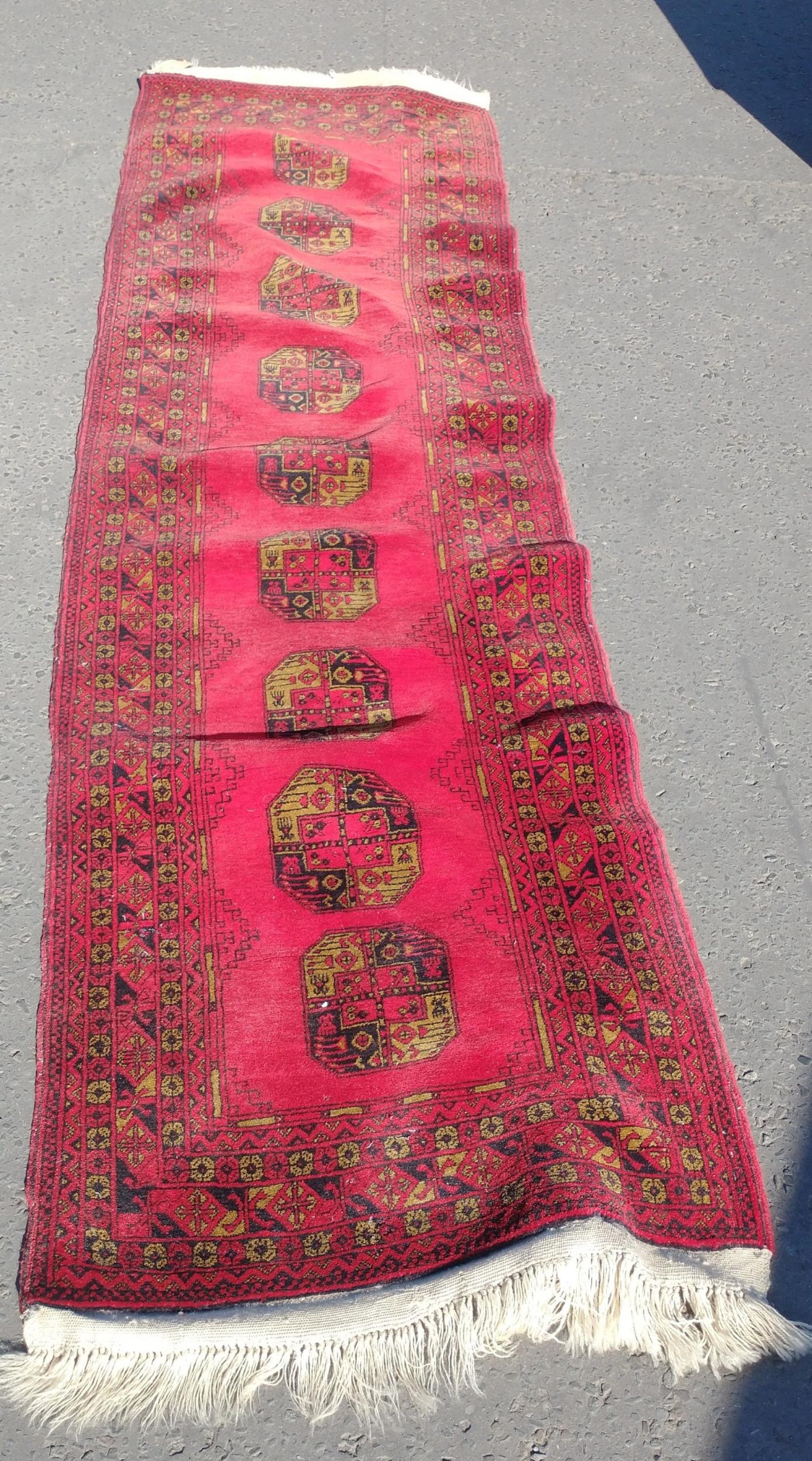 Red based runner with 9 medallions. L: 283cm W: 86cm approx