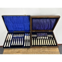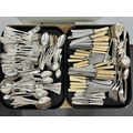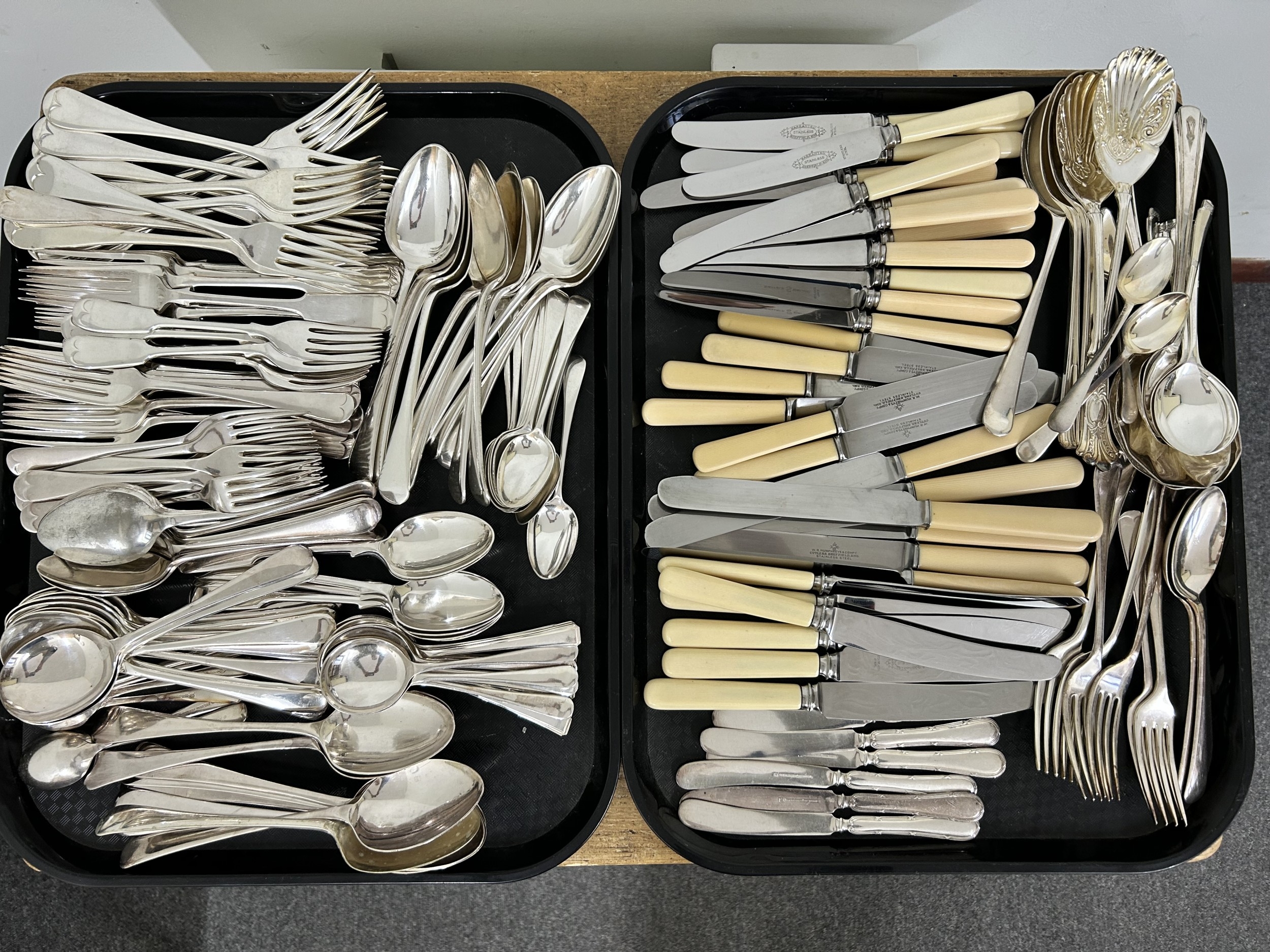 An extensive collection over two trays of good quality silver plated cutlery, mainly in sets of 12, with various makers (mild signs of use)