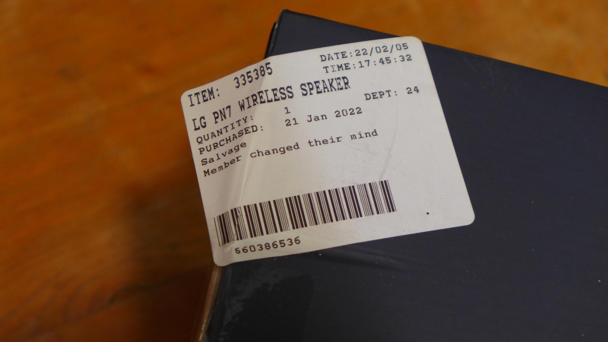 LG Pn7 Wireless Speaker , Original RRP £114.99 + vat , (249-145) * This lot is subject to vat