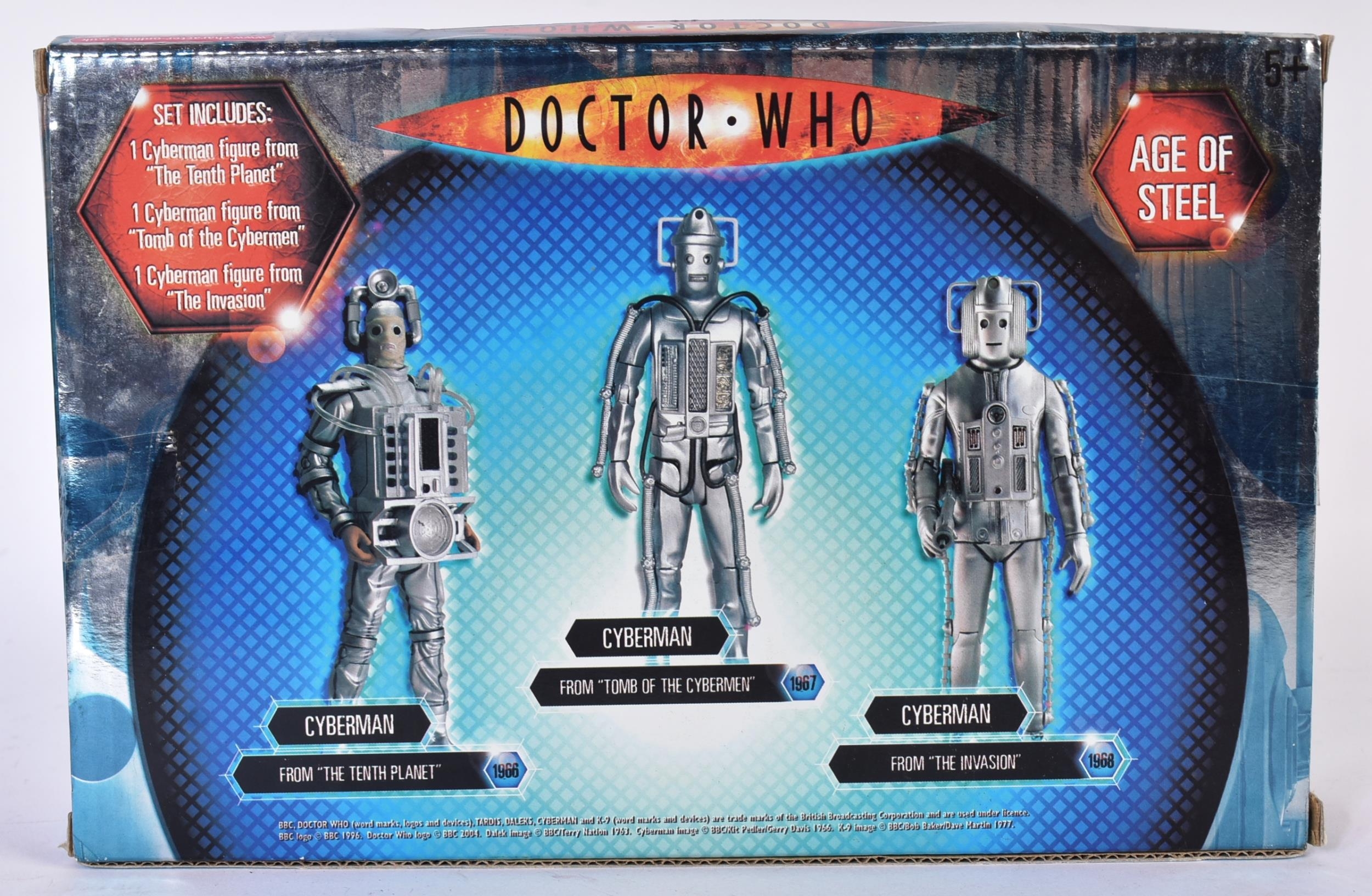 Doctor Who - Character Options - ' Age Of Steel Cyberman Figure Set ' action figure presentation set. Features three figures from various Dr Who episodes. Box sealed, contents mint and unused.