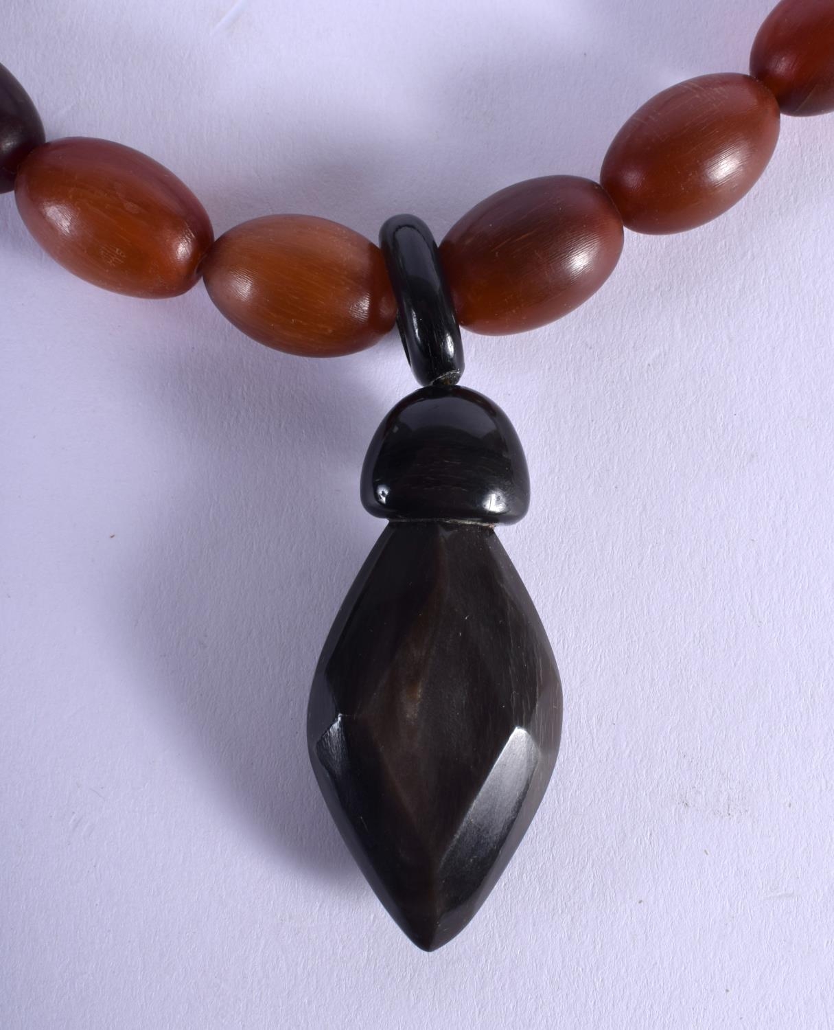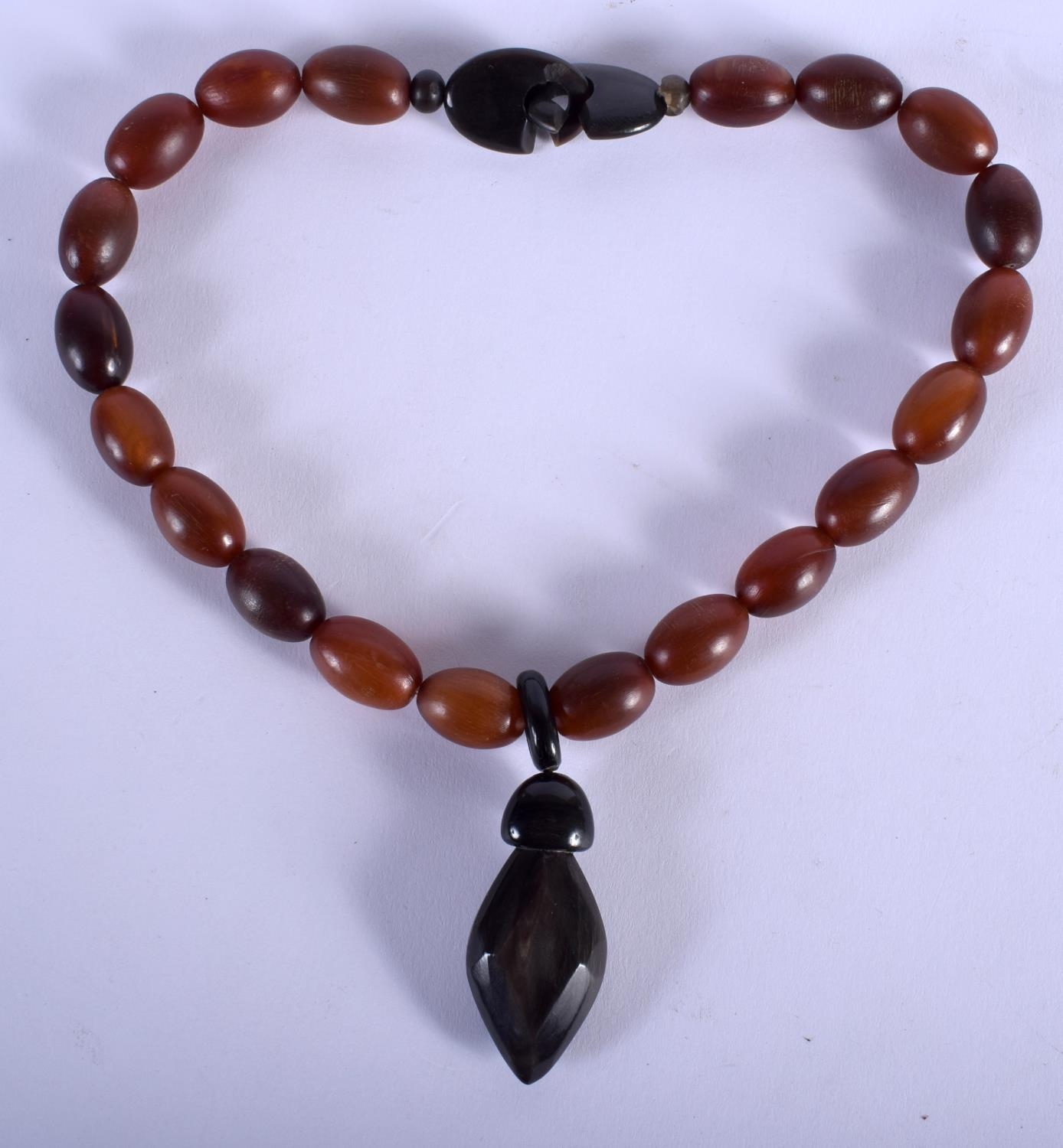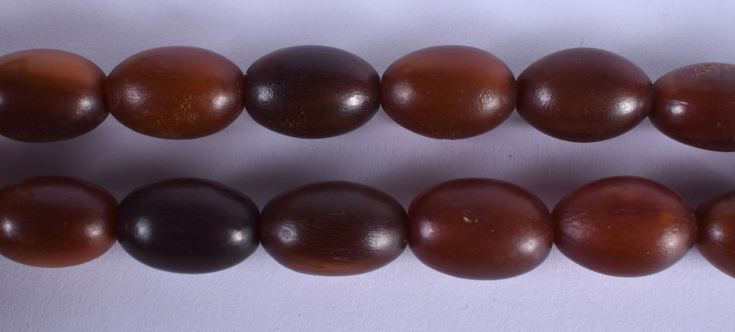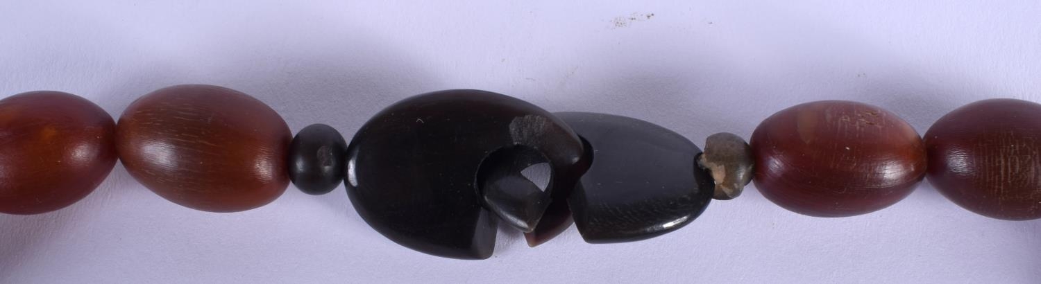 A FINE 19TH CENTURY CHINESE CARVED RHINOCEROS HORN NECKLACE of gradated form. 71.4 grams. 48 cm long. Largest 4 cm x 2.5 cm.