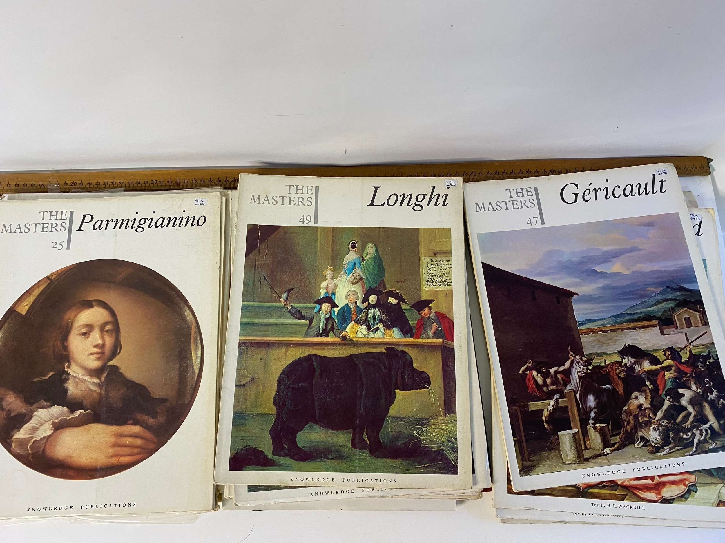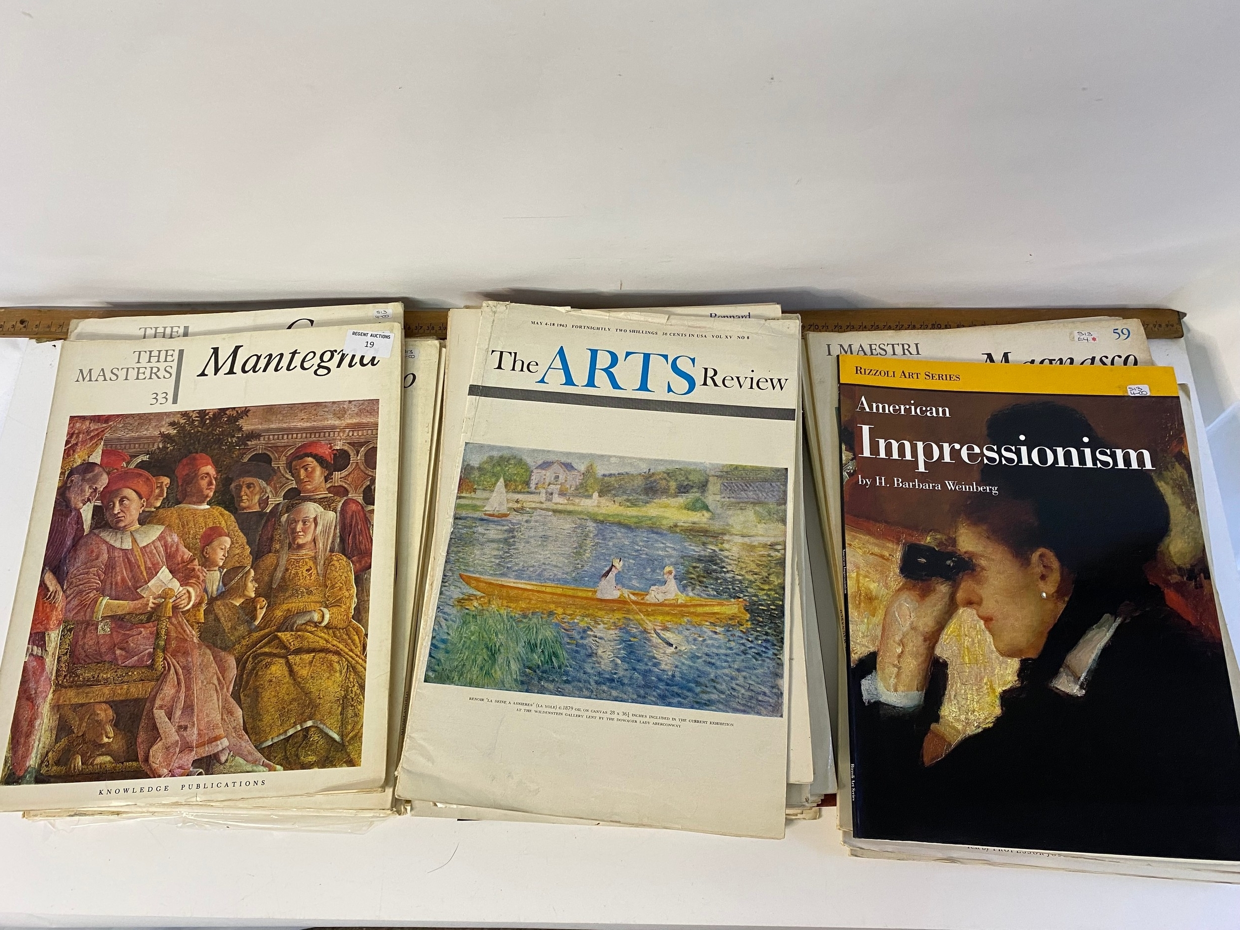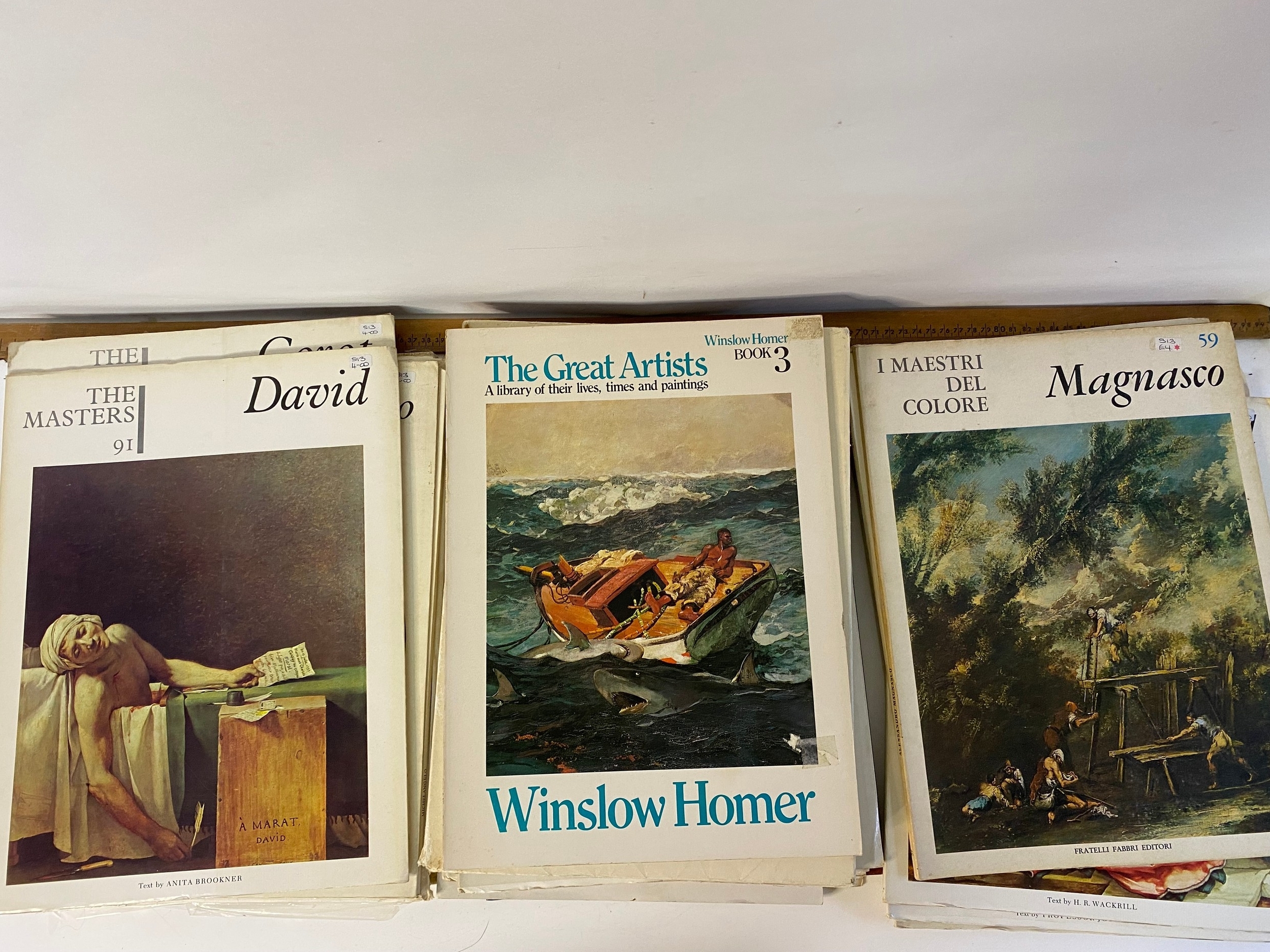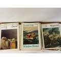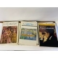Large collection of art folders and books with painted insert posters.