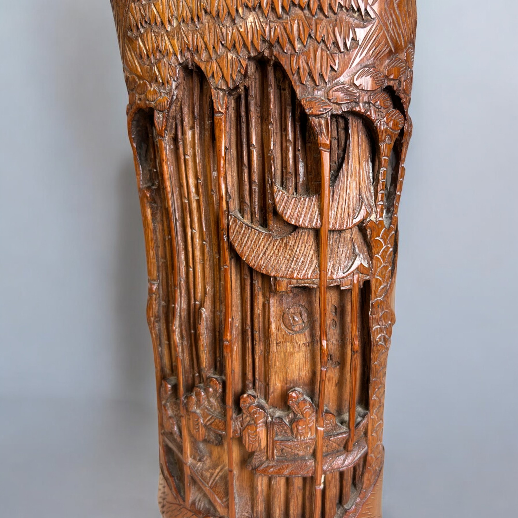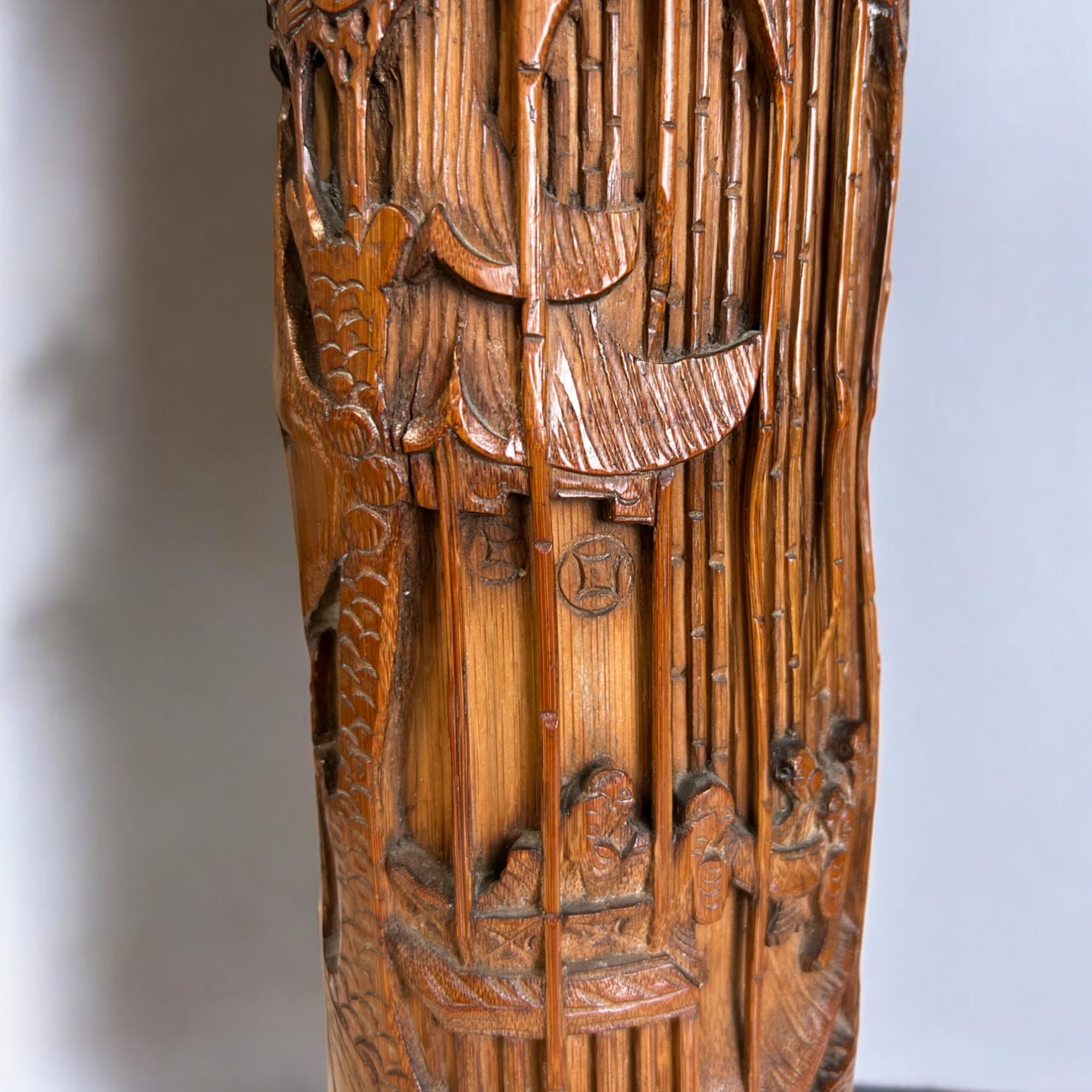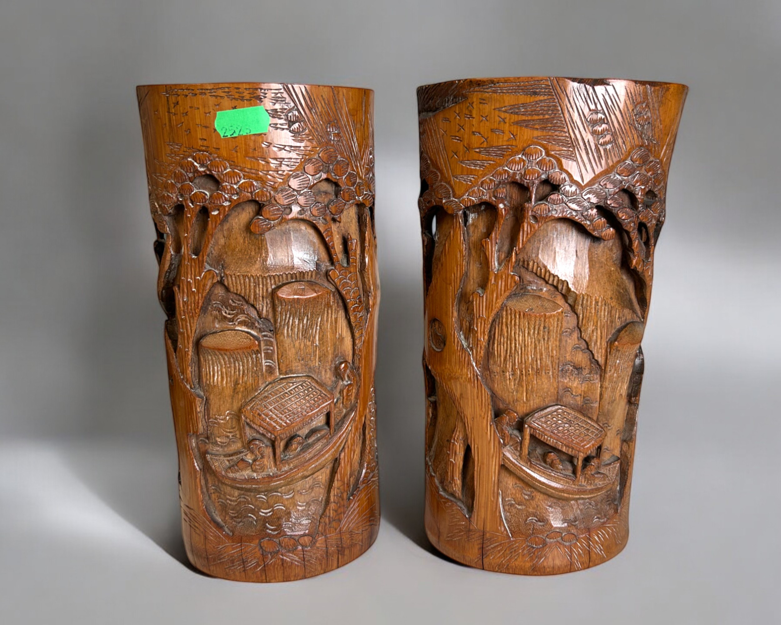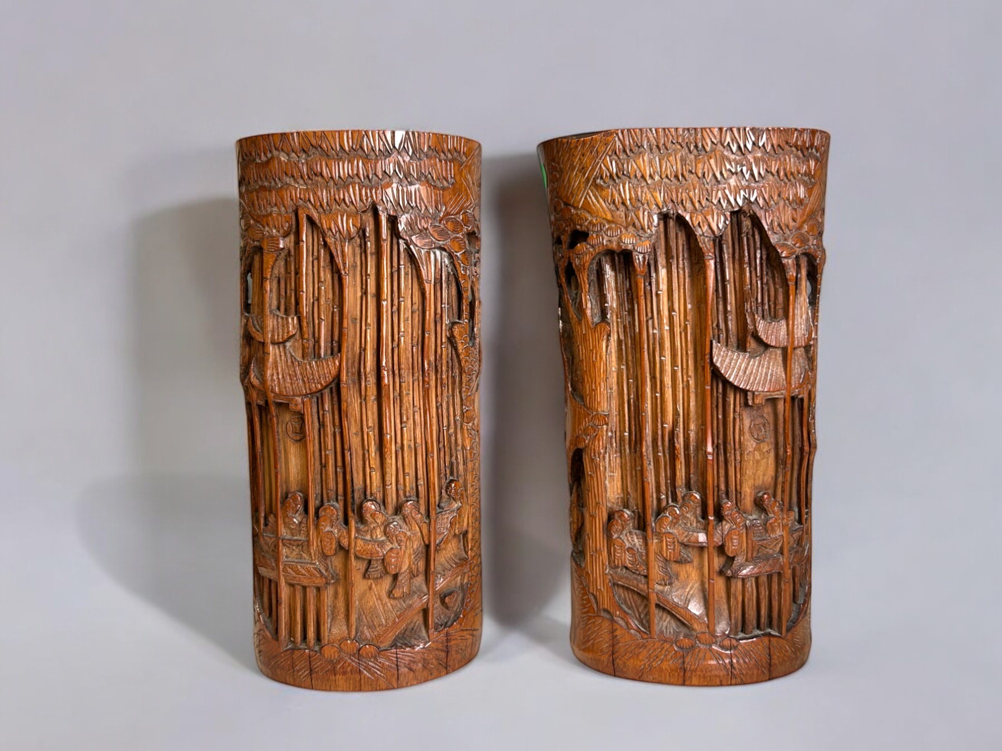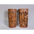 A Pair of Chinese carved bamboo vases / brush holders.