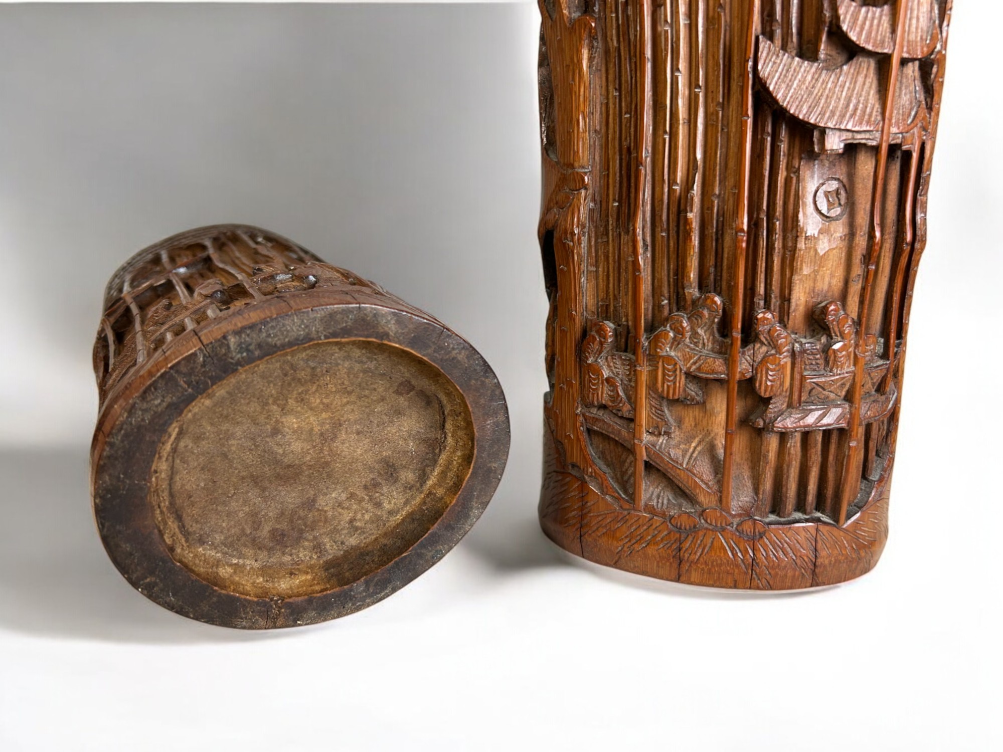 Deep carved landscape scenes.