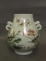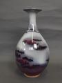 A Chinese flambe vase decorated with mountains in the clouds to sides, impressed mark to base, 12½' high