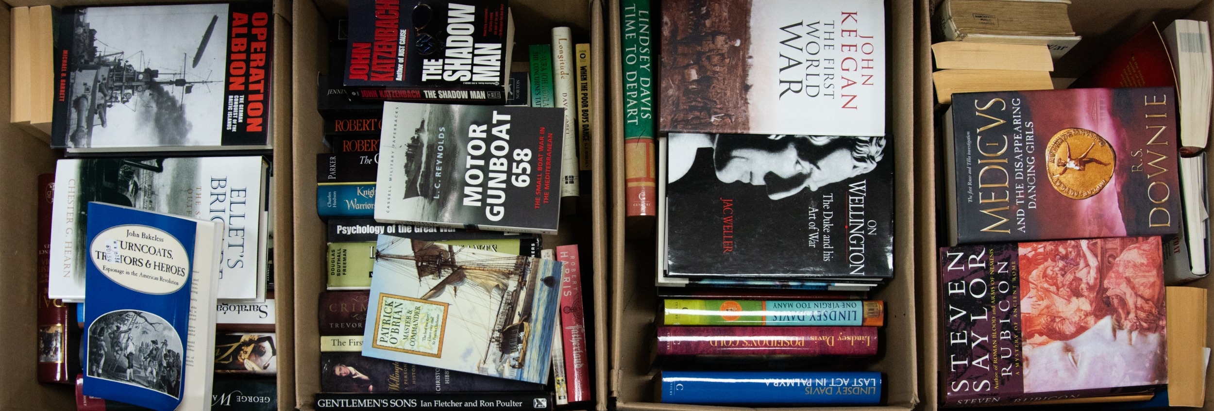 John Bakeless - Turn Coats, Traitors & Heroes, Espionage in the American Revolution, pub Da Capo, pb, 1998. Together with a quantity of REFERENCE BOOKS, centralising around MILITARY HISTORY. Various aspects of contemporary and historical WAR and WARFARE covered from across the globe. Contents of FOUR BOXES