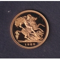 UK 1980 gold half Proof Sovereign, boxed with CoA