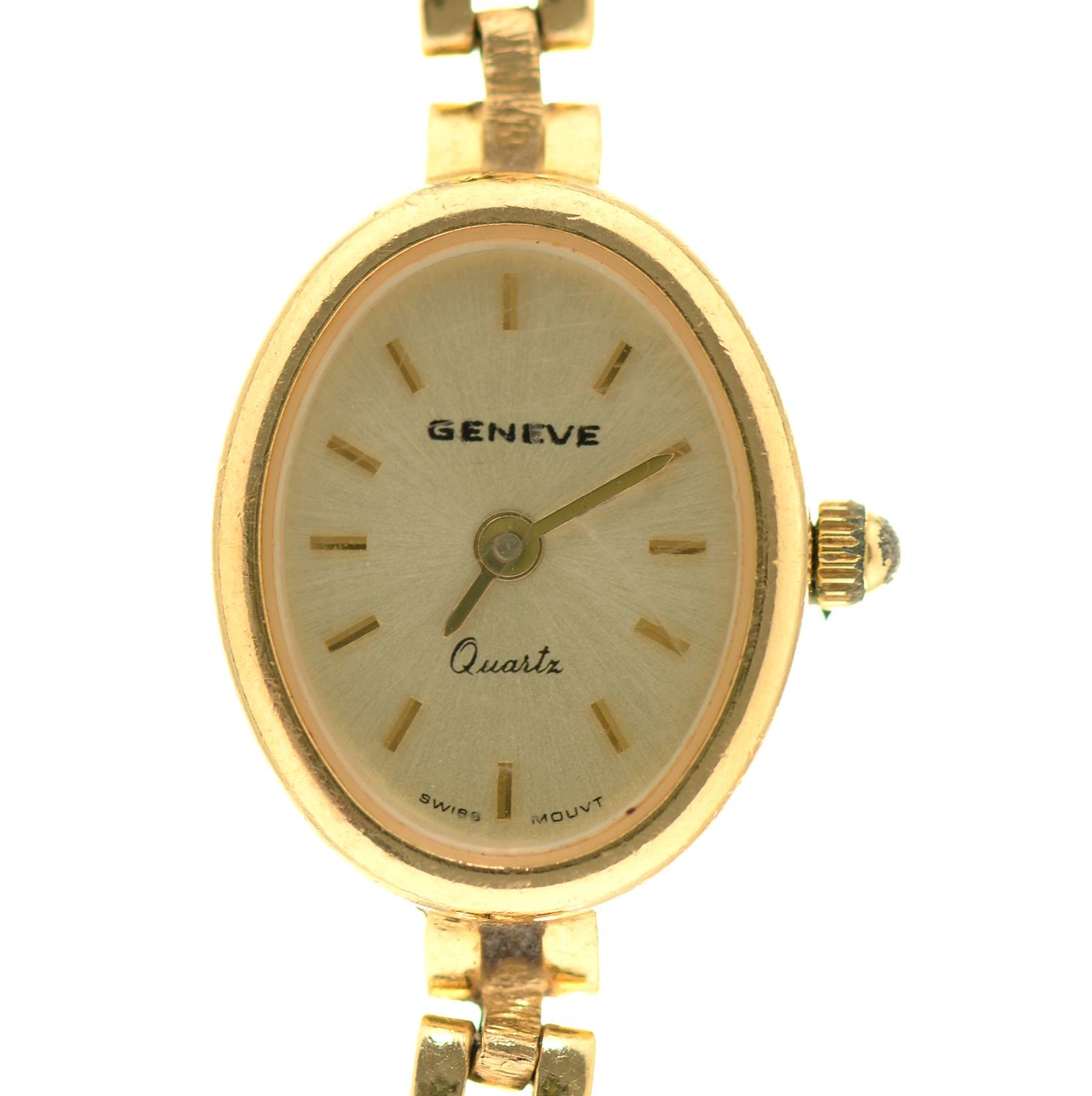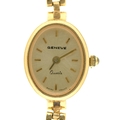 An oval gold lady's wristwatch, quartz movement, on gold bracelet, marked 18k 750, 19.2g