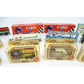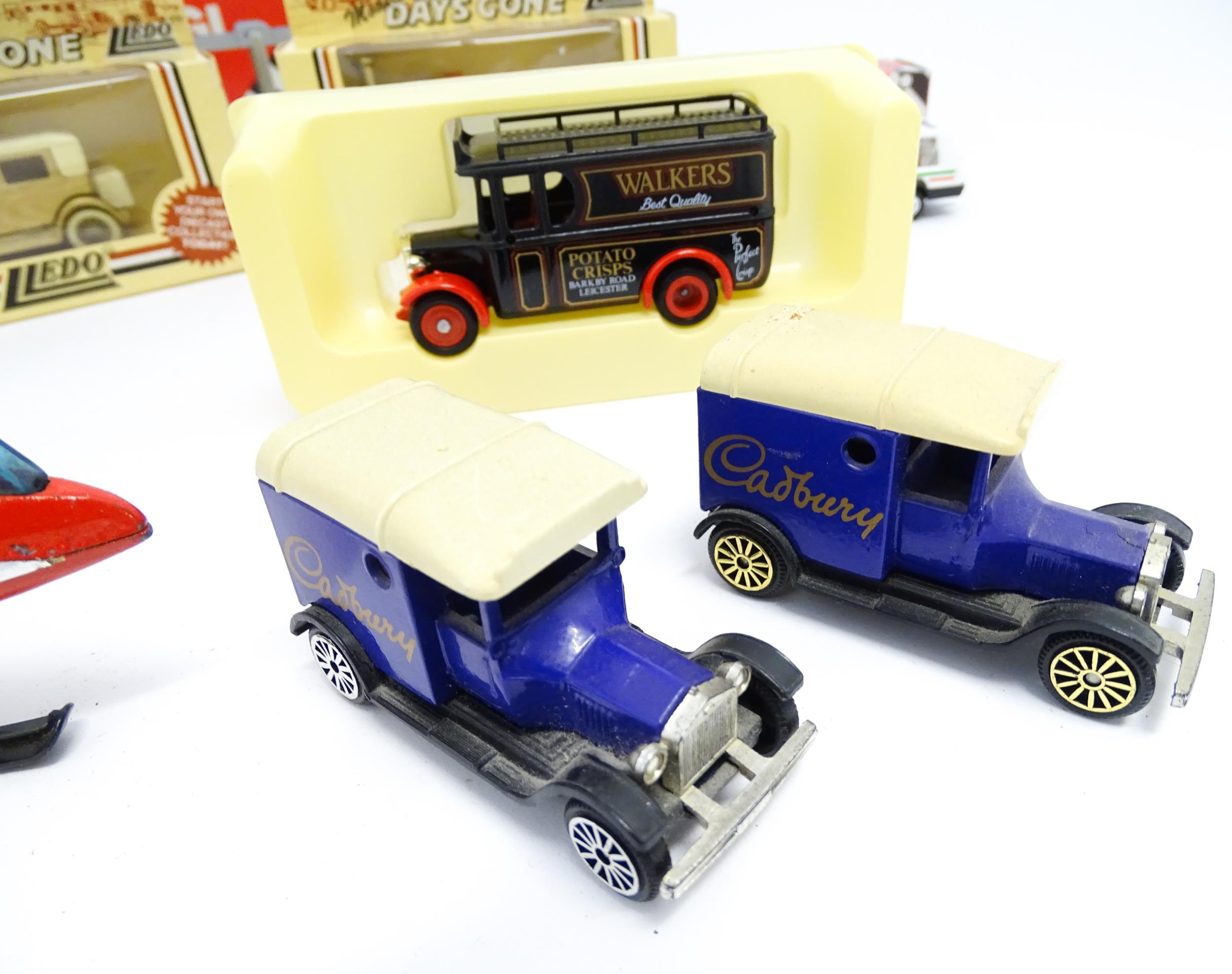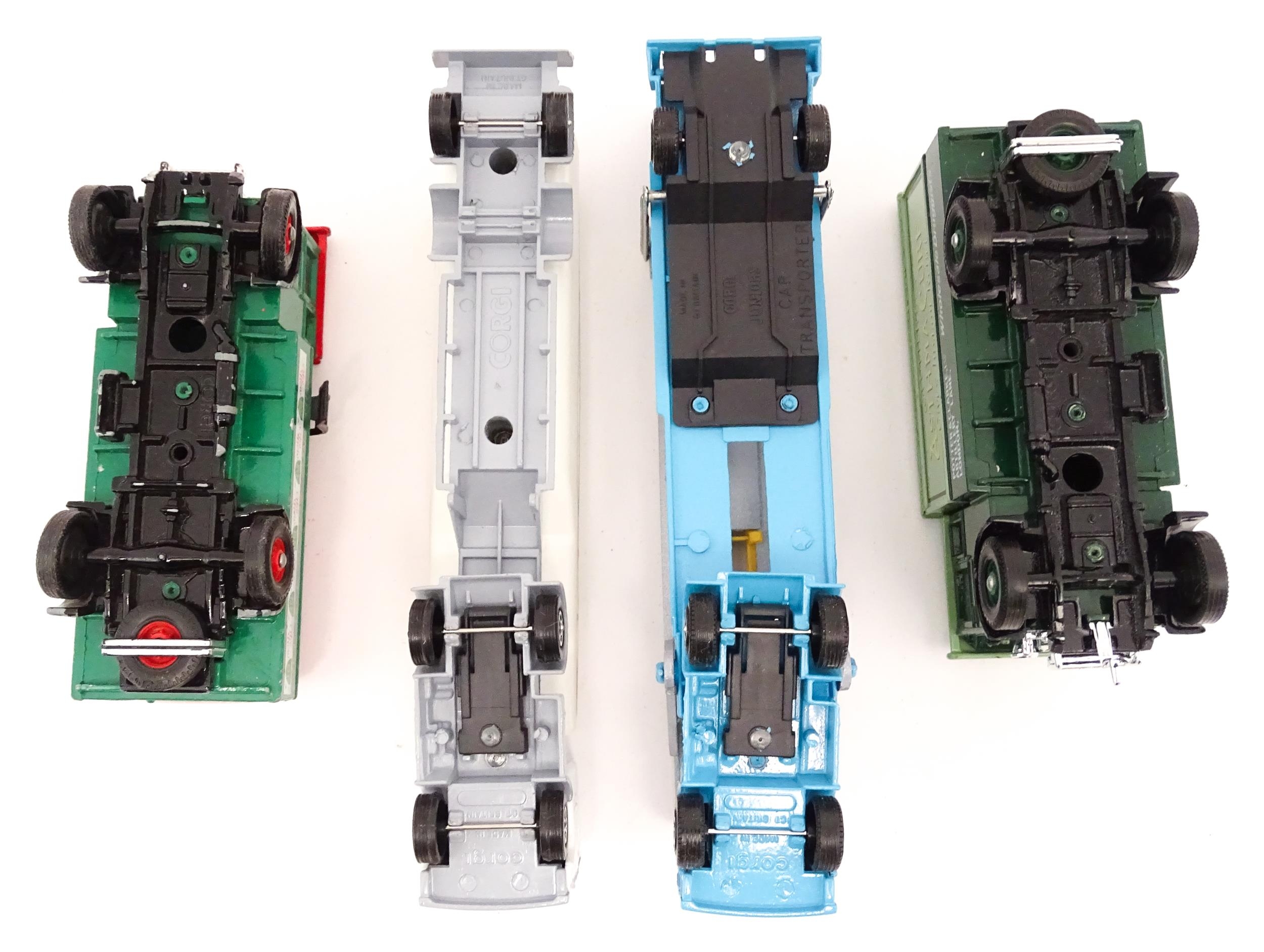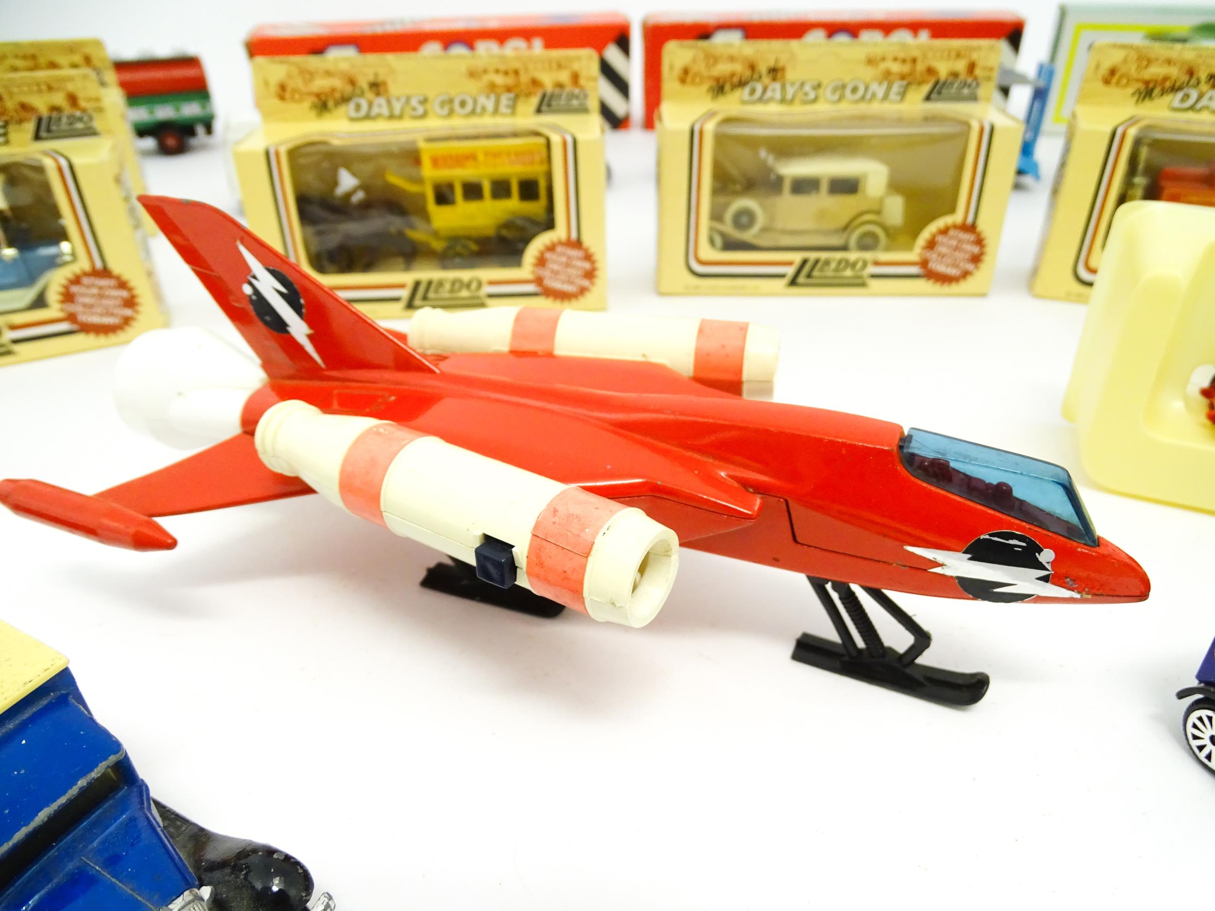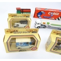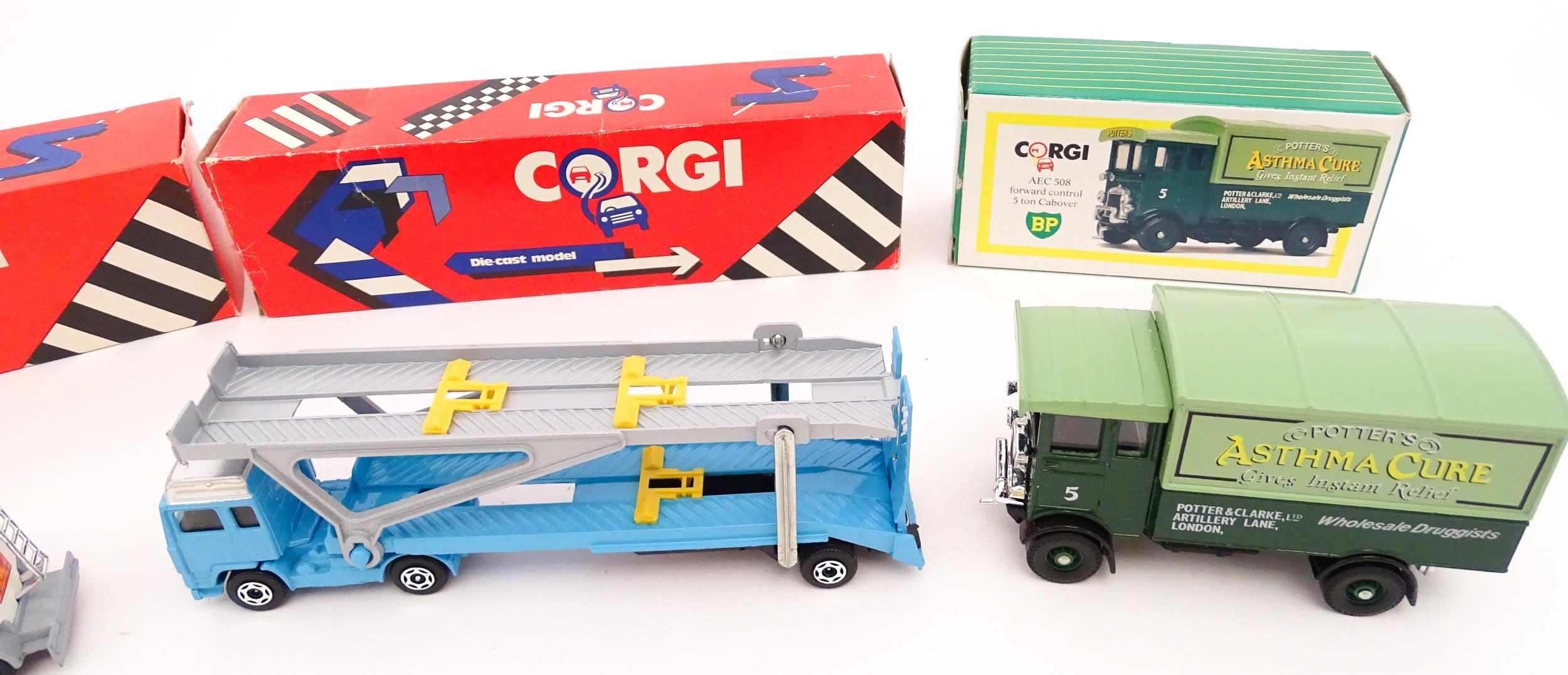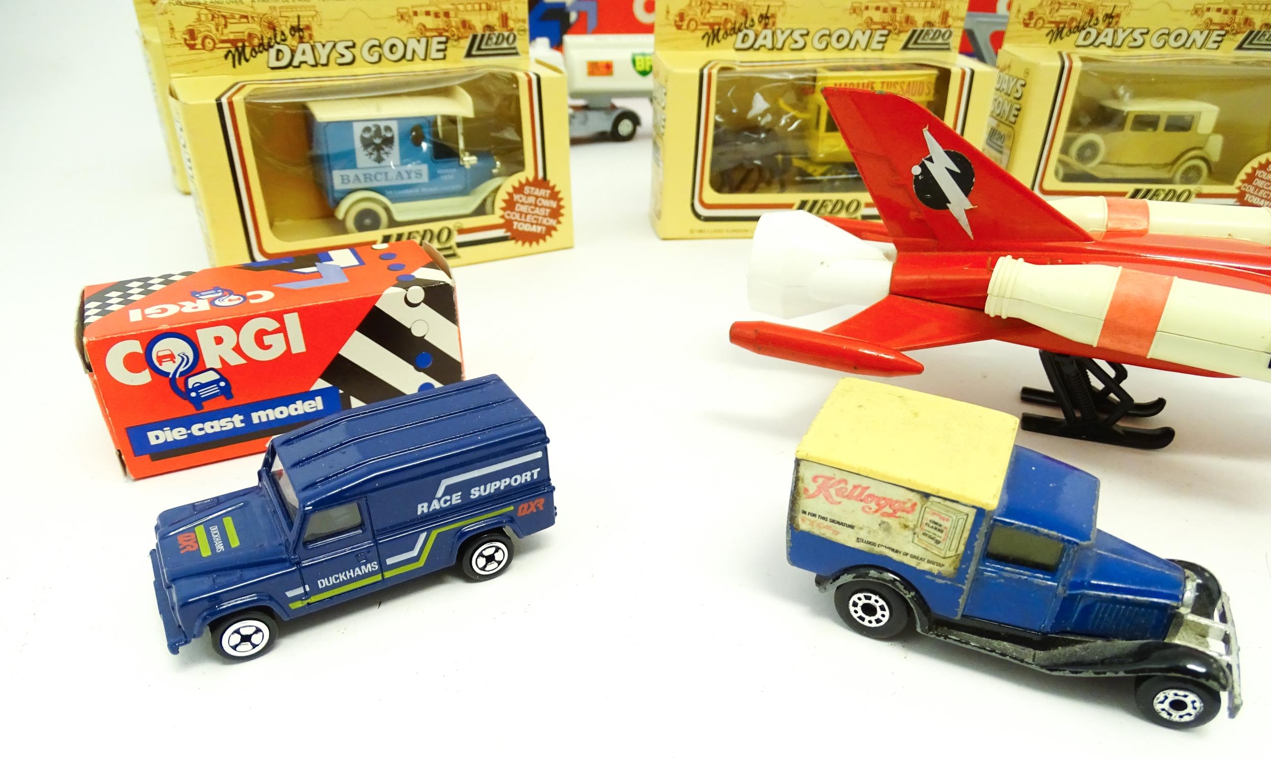 Toys: A quantity of die cast scale model vehicles etc. to include Corgi Toys Seddon Atkinson Tanker, Volvo Car Transporter, Matra Rancho, Land Rover, AEC 508 Cabover, Matchbox Sea Kings Helicopter Carrier K307, various Lledo cars, etc.