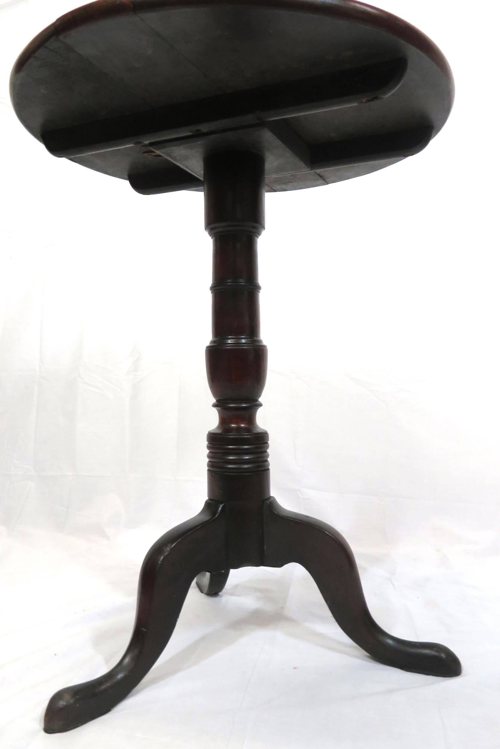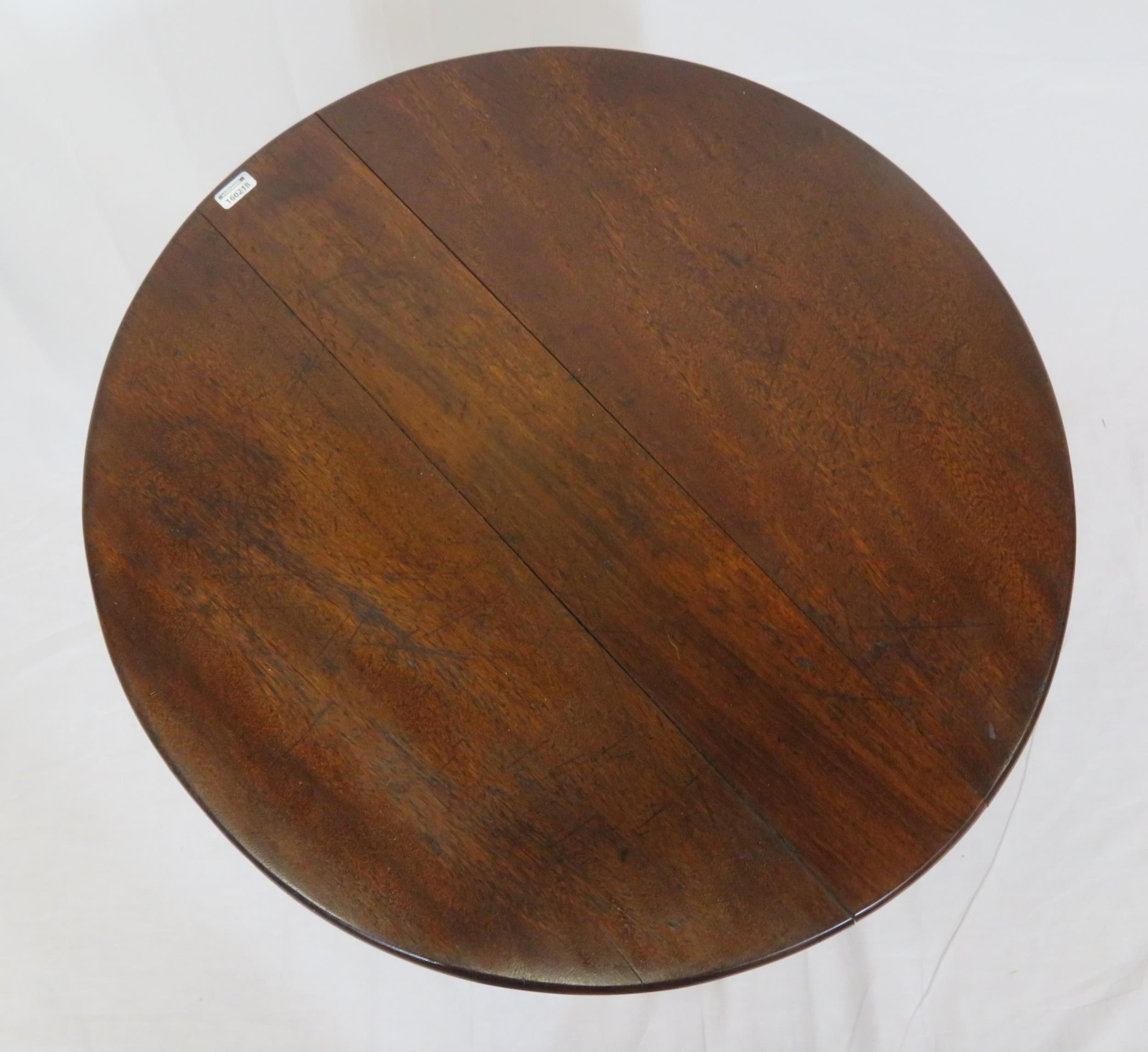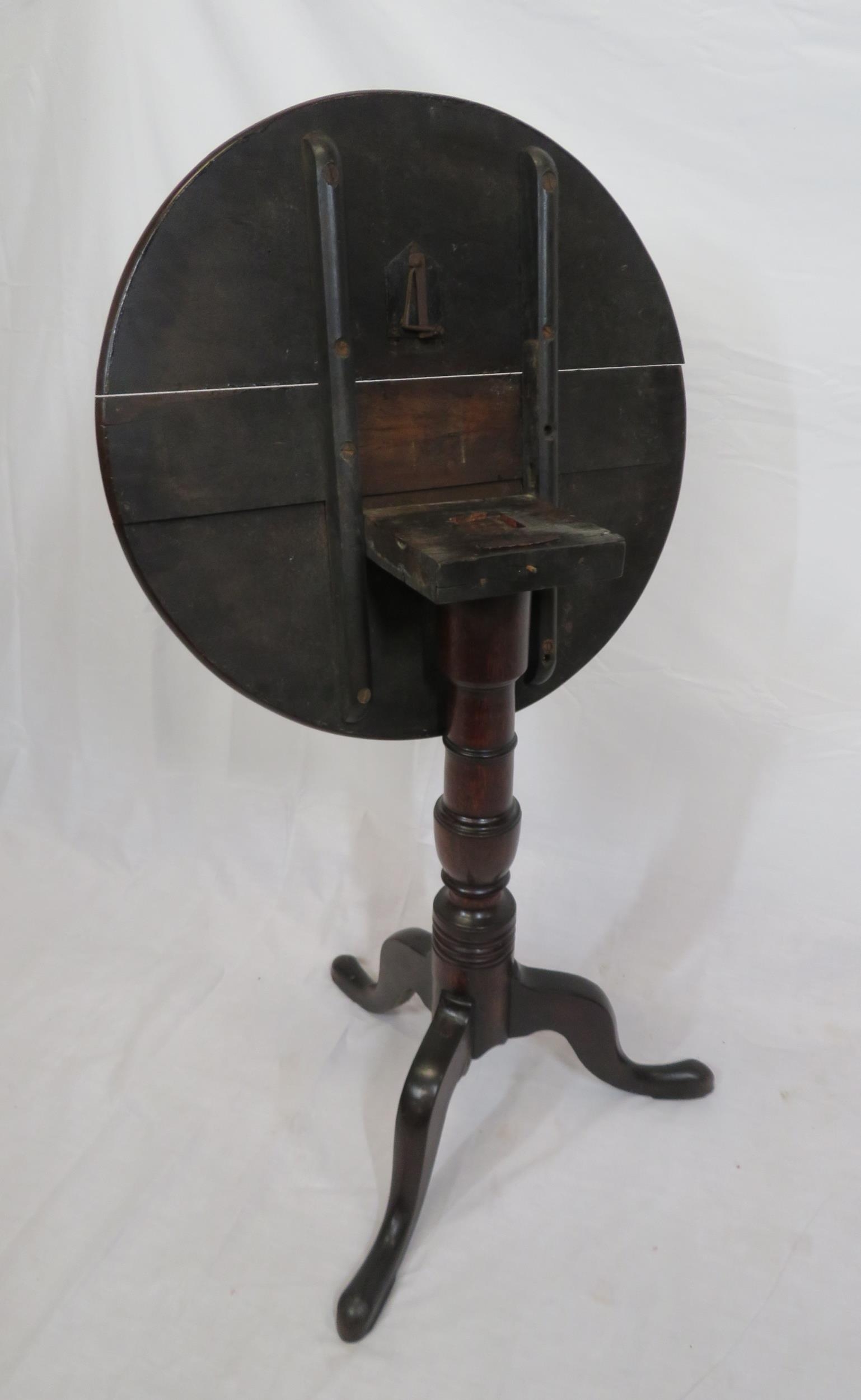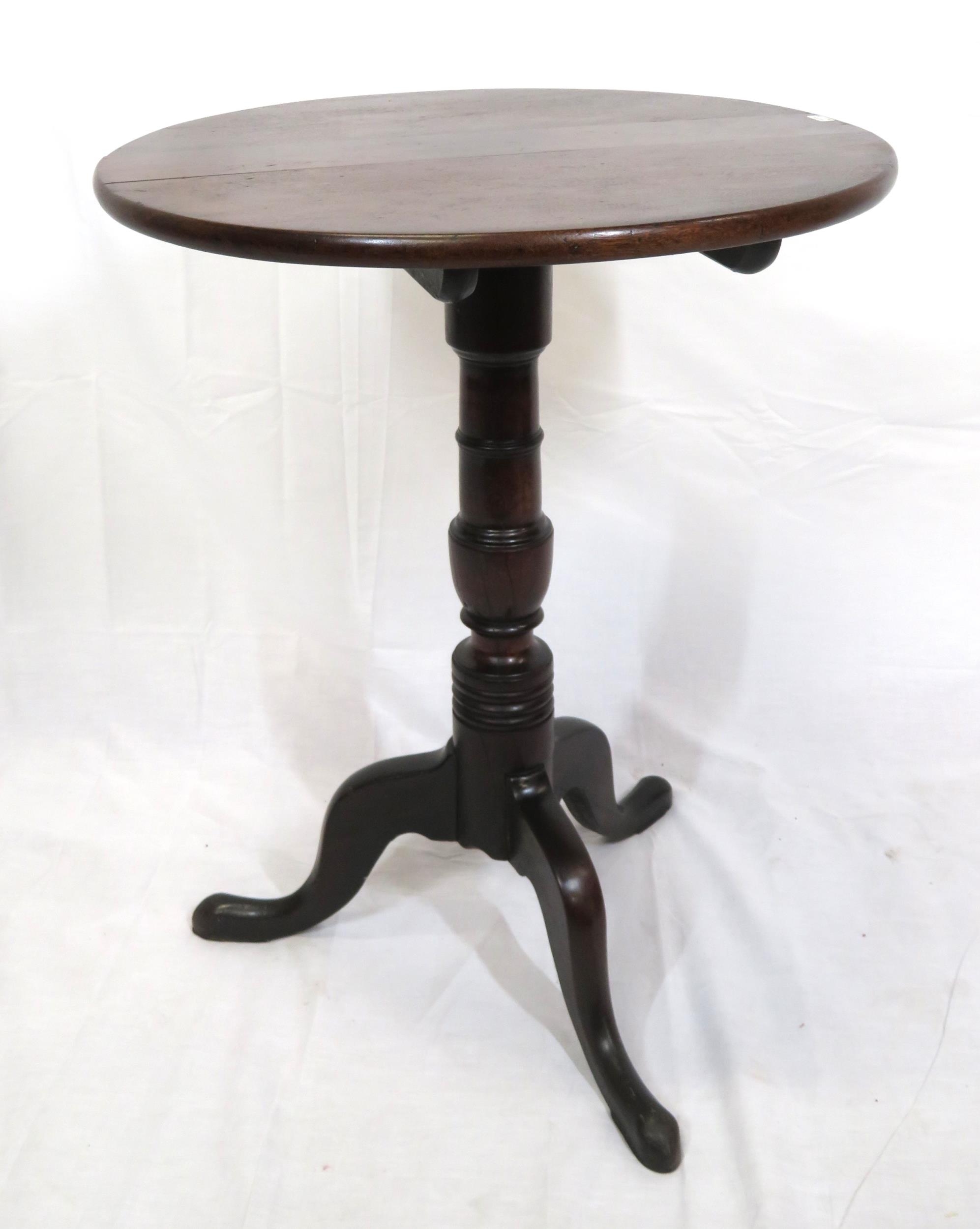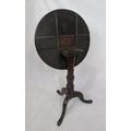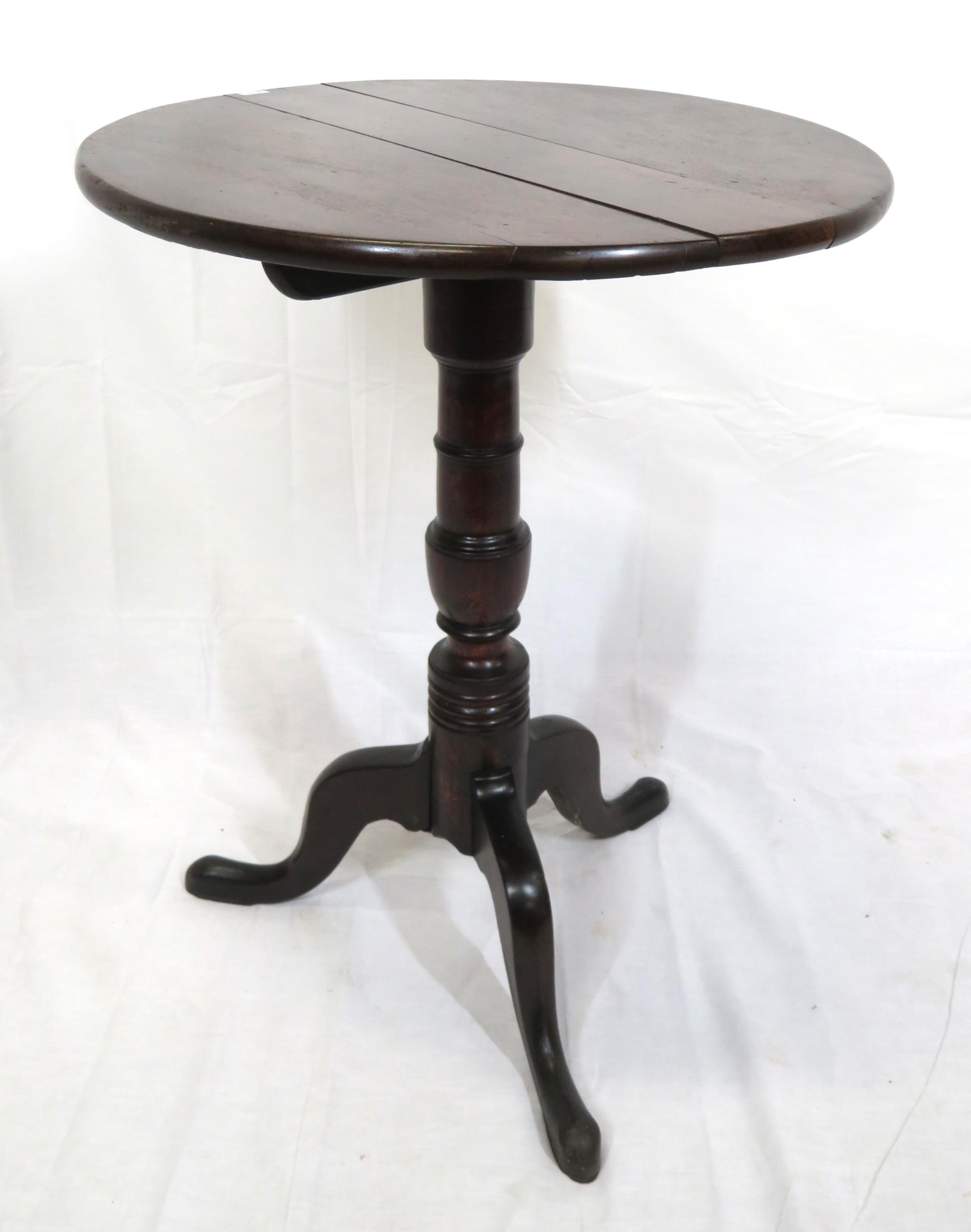 Victorian mahogany occasional table with tip-up round top, vase turned column, on hipped tripod