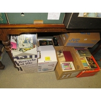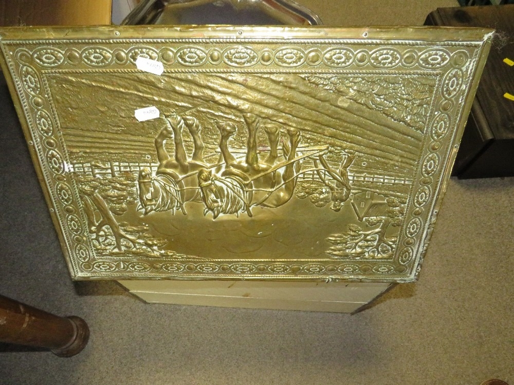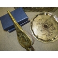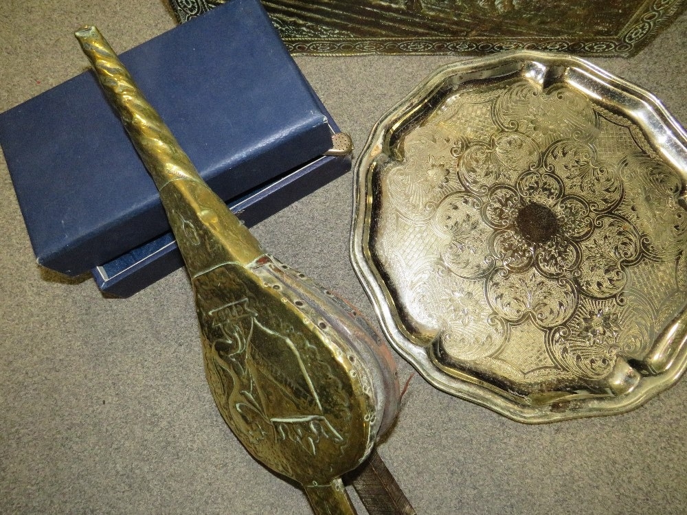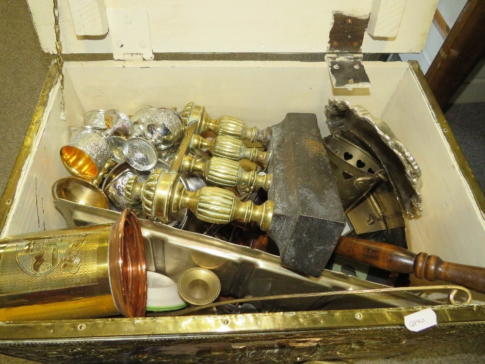 A copper covered coal bucket and contents, silver plated ware etc