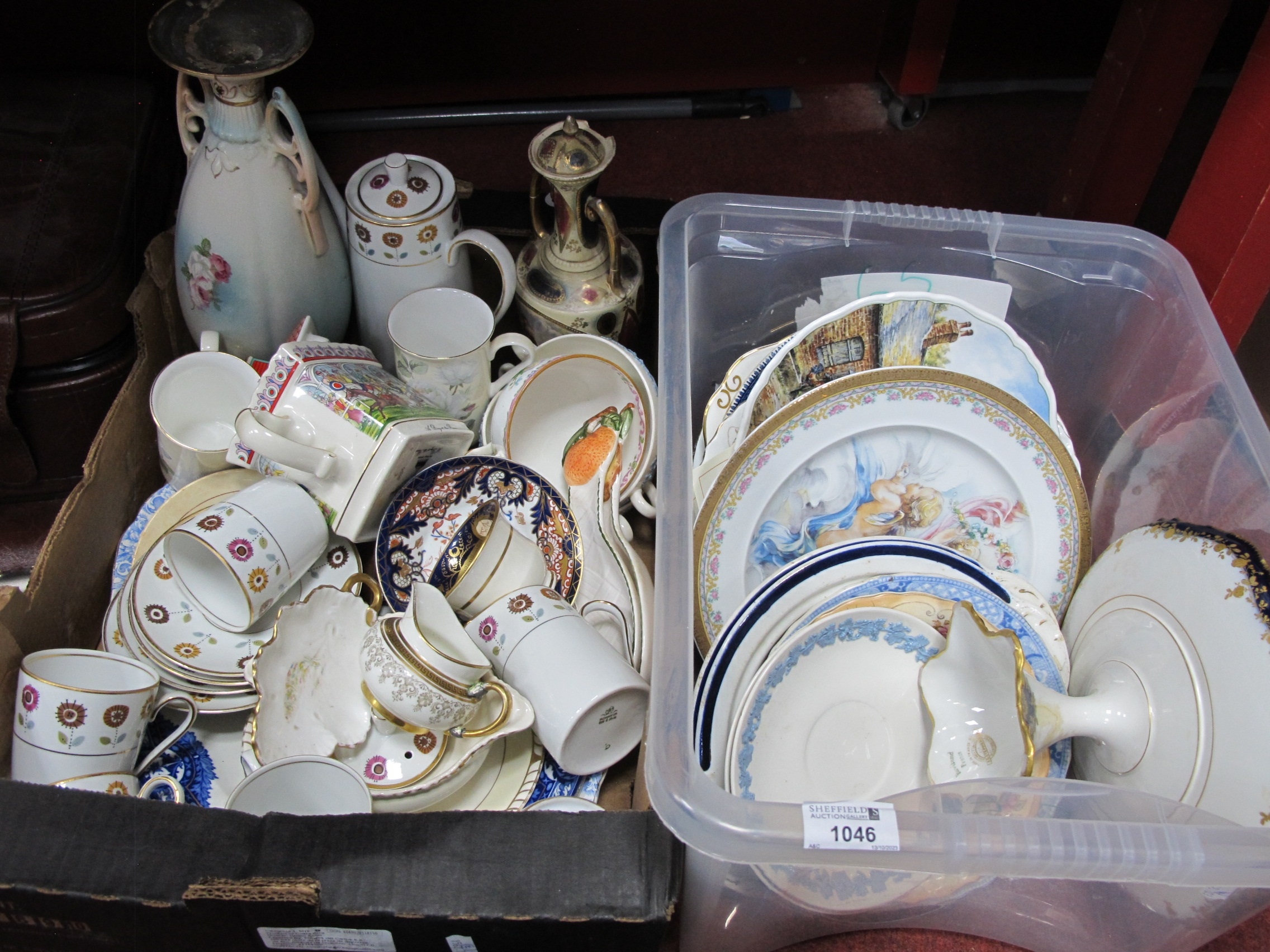 Sadler 'A Day At The Races' Teapot, collectors plates plus other ceramics:- Two Boxes