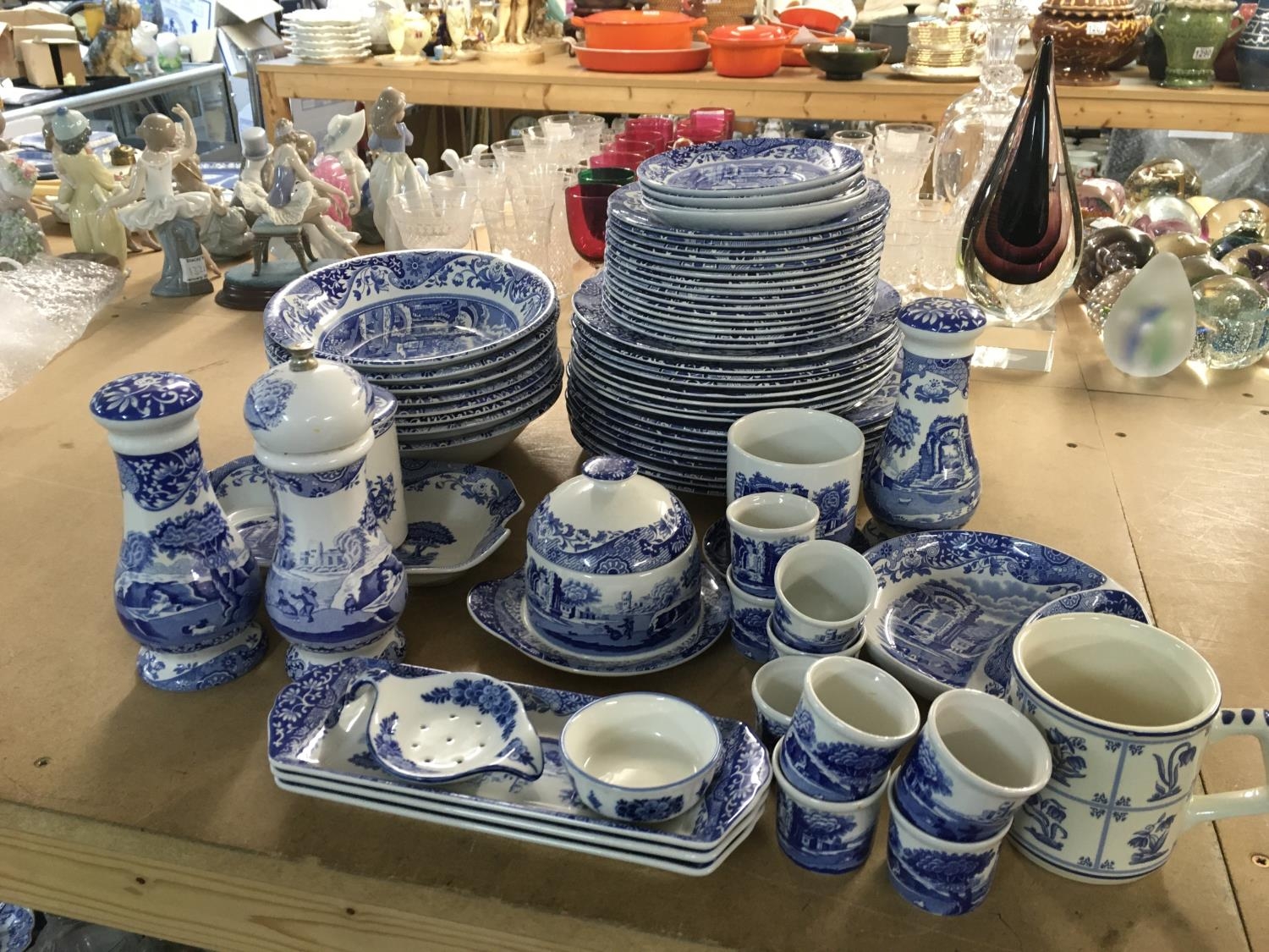 A collection of Spode blue and white porcelain including plates, bowls, cups etc. No obvious damage or restoration Postage category D