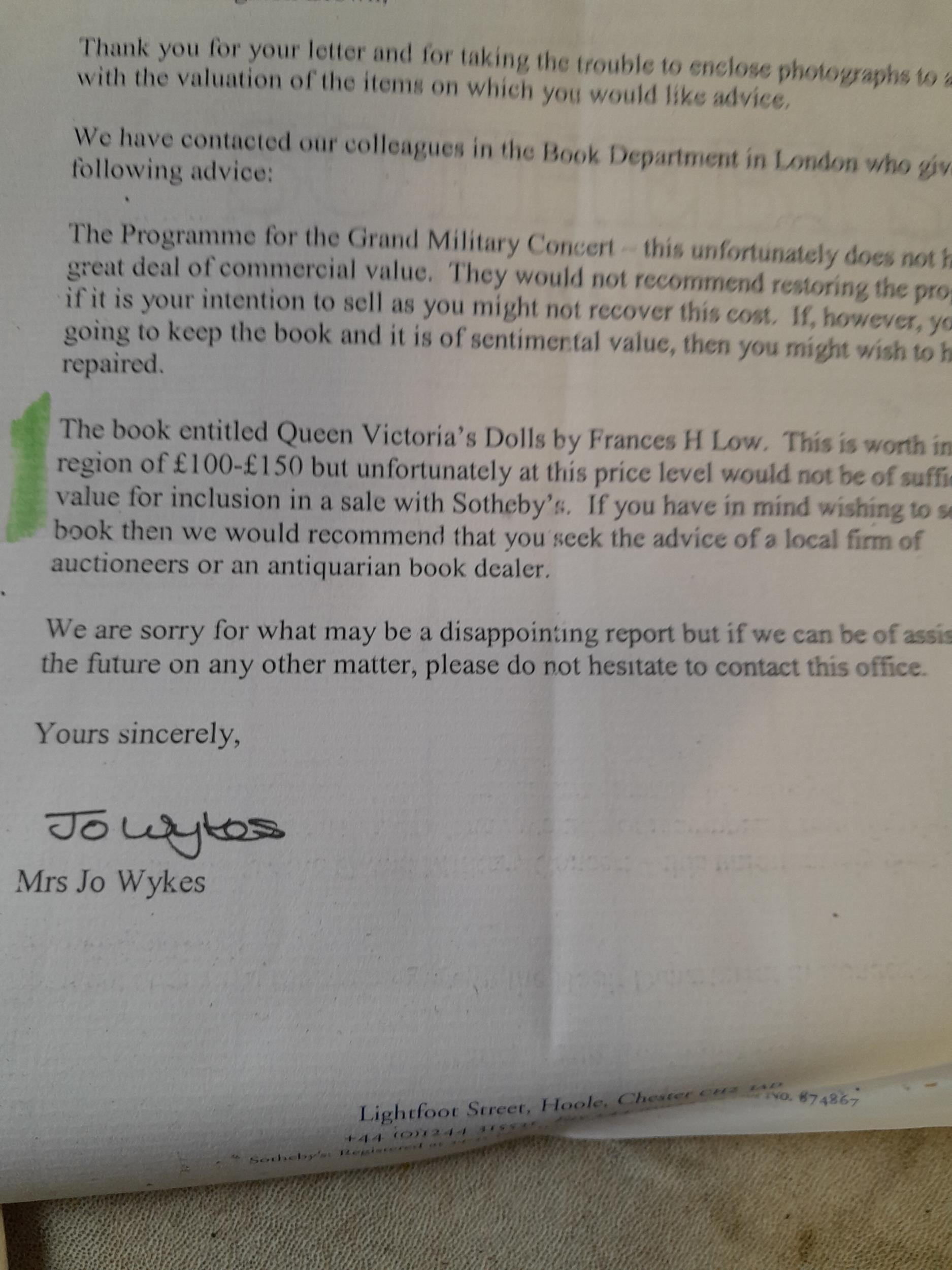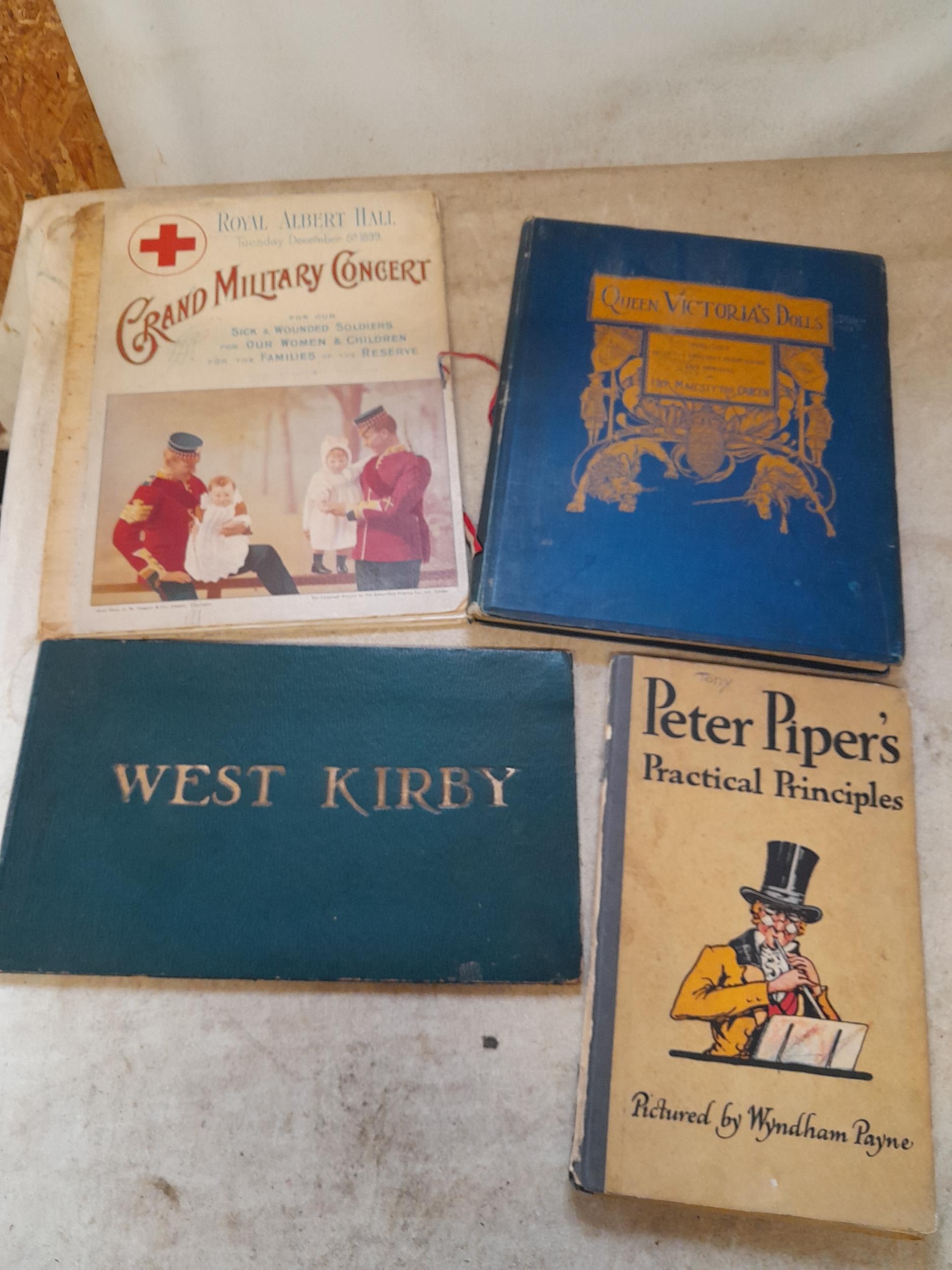 Various volumes : Tatty Peter Piper's Practical Principles 1926, Queen Victoria's Dolls 1902 , 1899 Grand Military Concert with condition issue and letter from Sothebys 2002