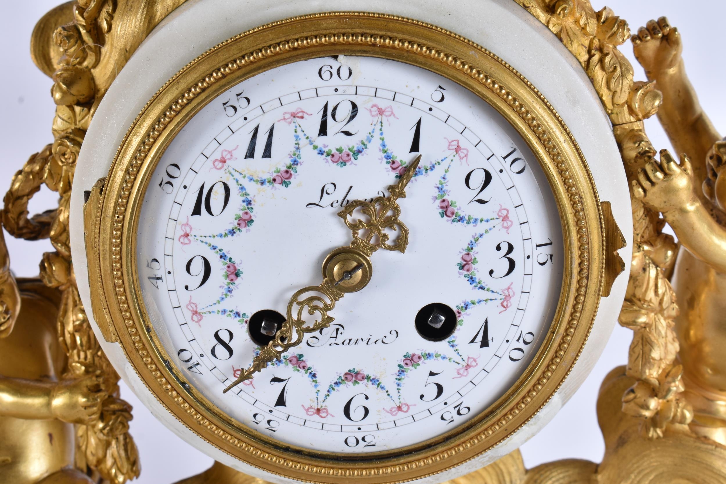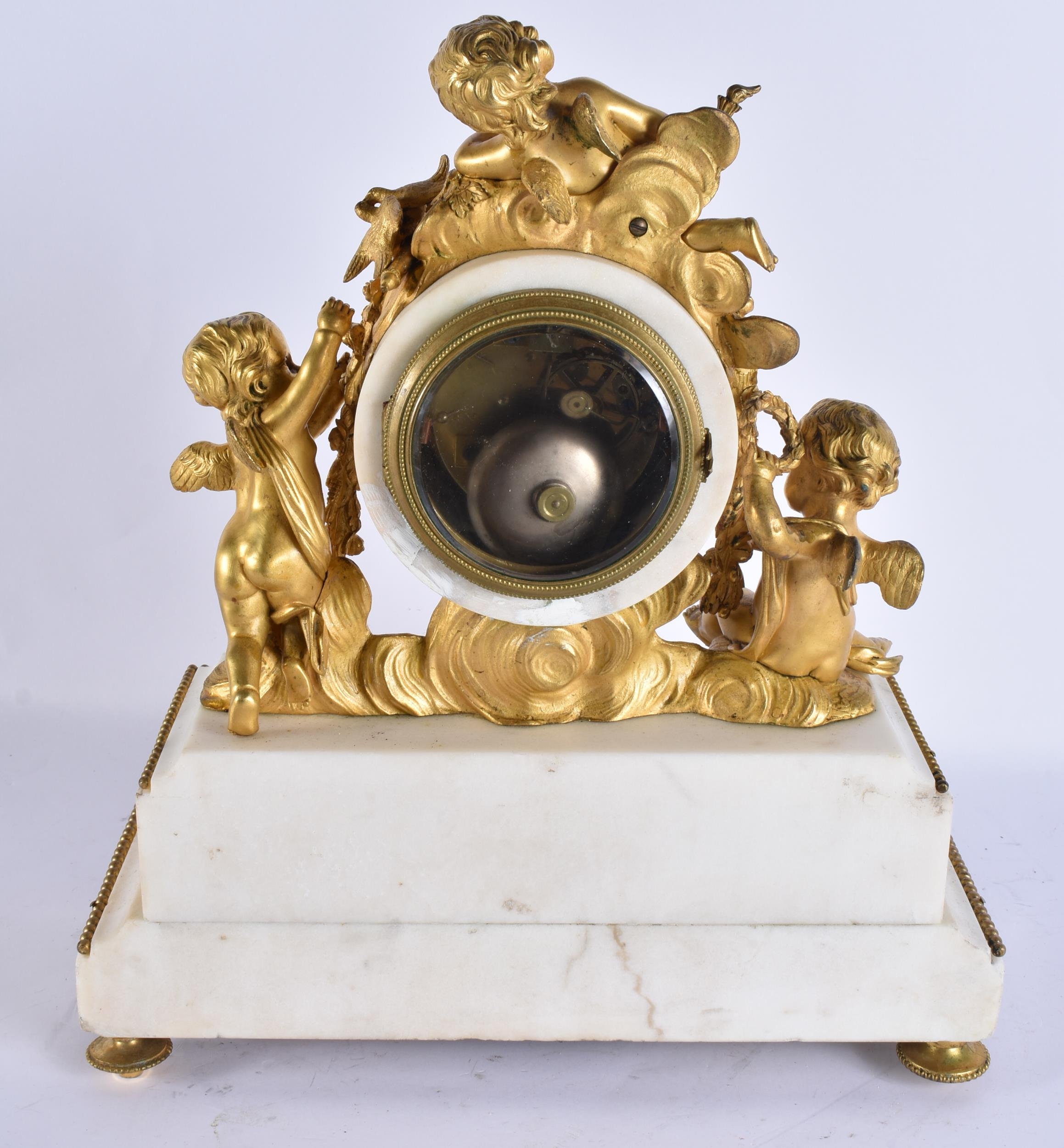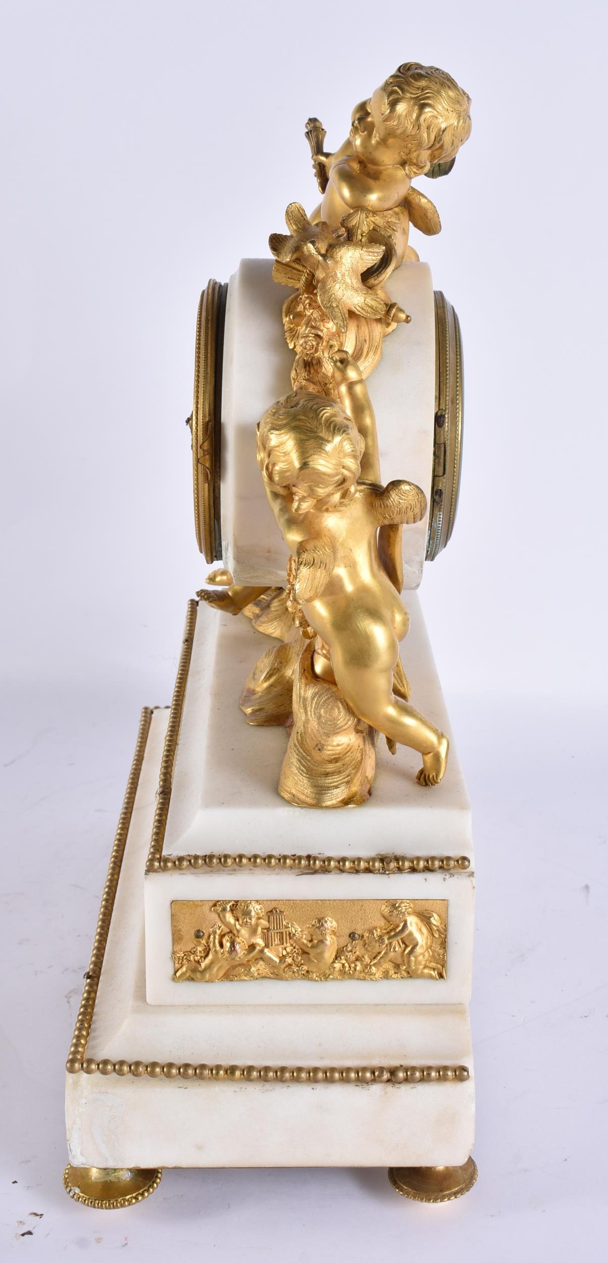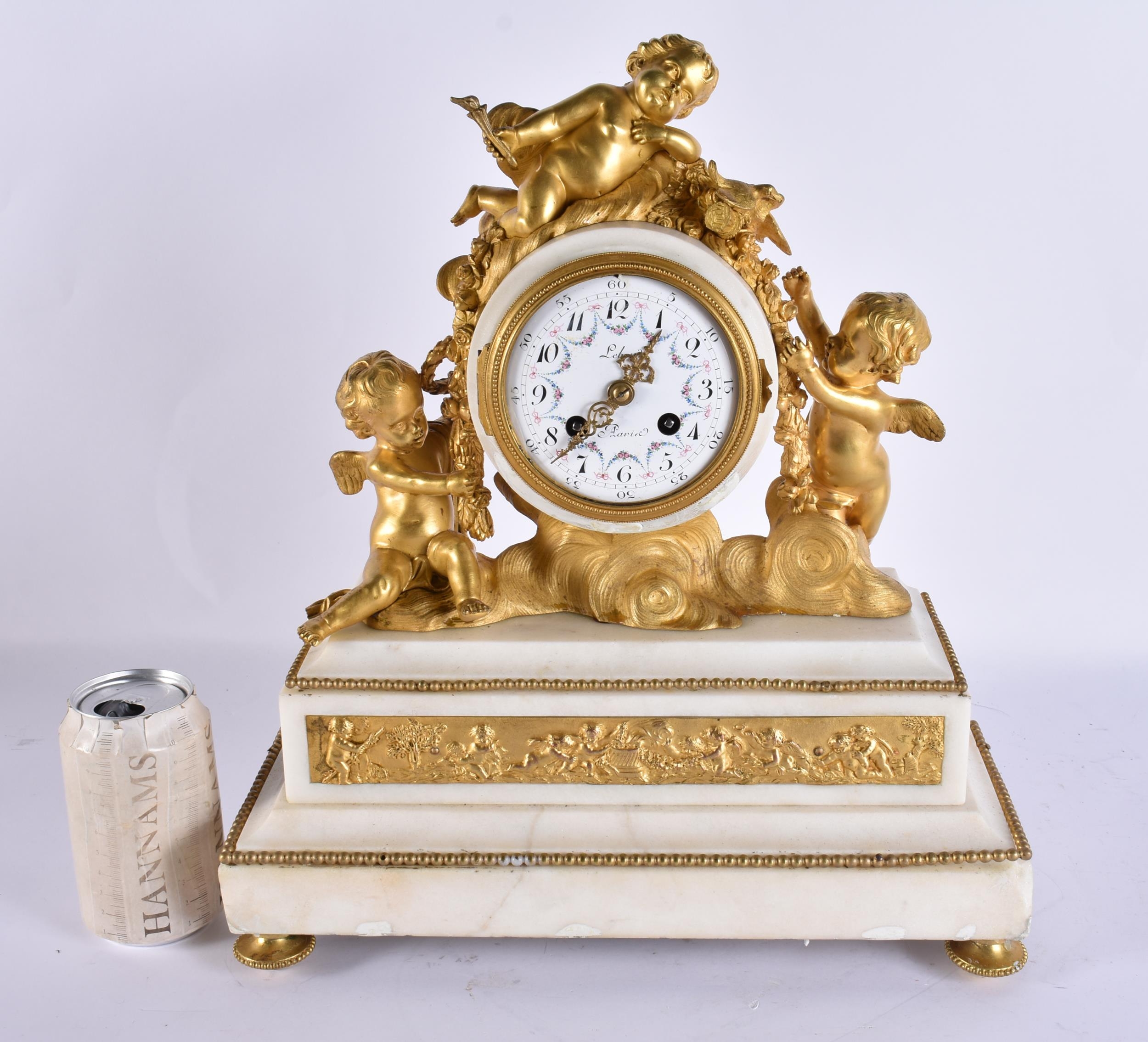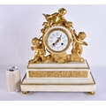 A LARGE 19TH CENTURY FRENCH GILT BRONZE MARBLE CLOCK formed with figures. 38 cm x 26 cm.