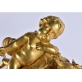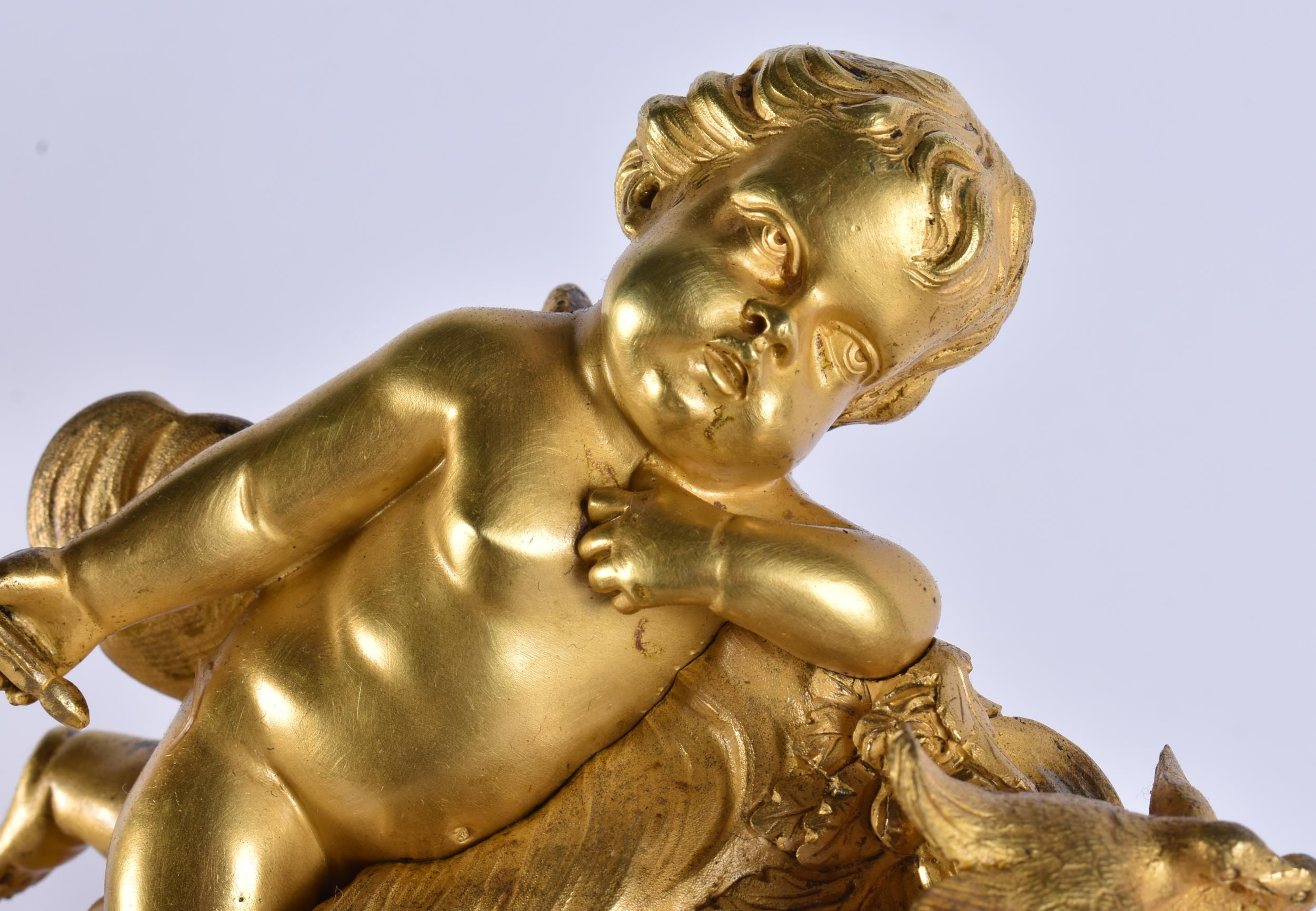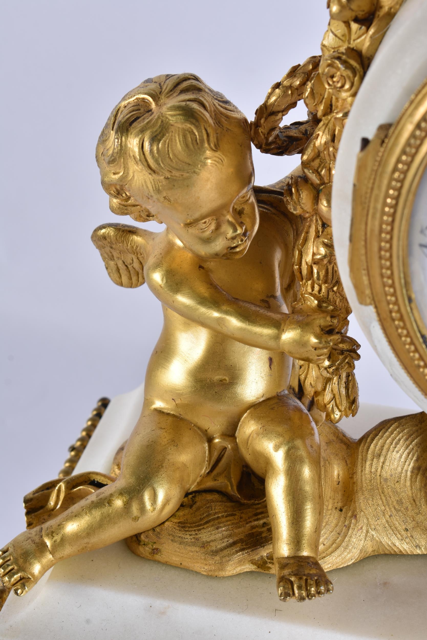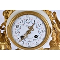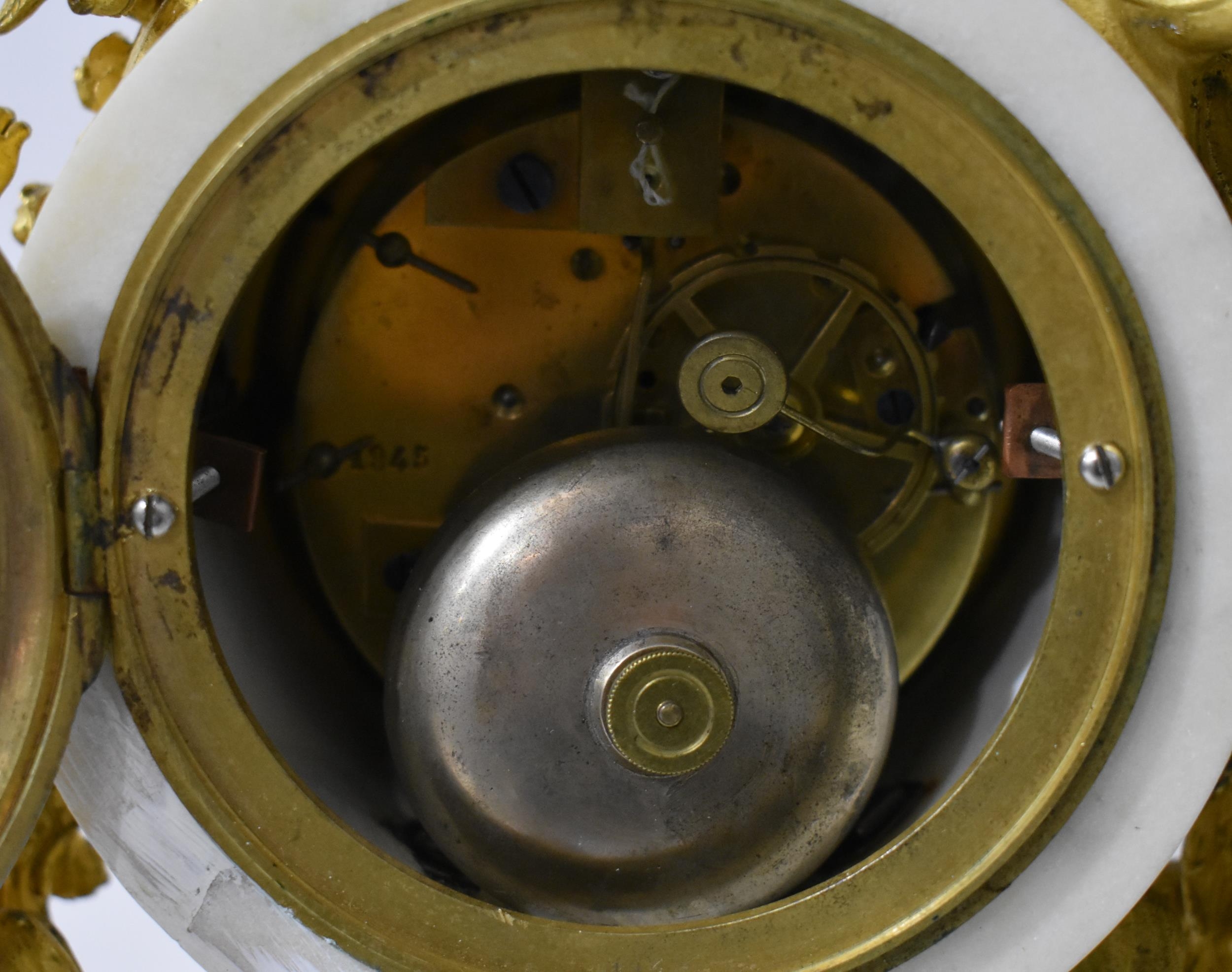 A LARGE 19TH CENTURY FRENCH GILT BRONZE MARBLE CLOCK formed with figures. 38 cm x 26 cm.
