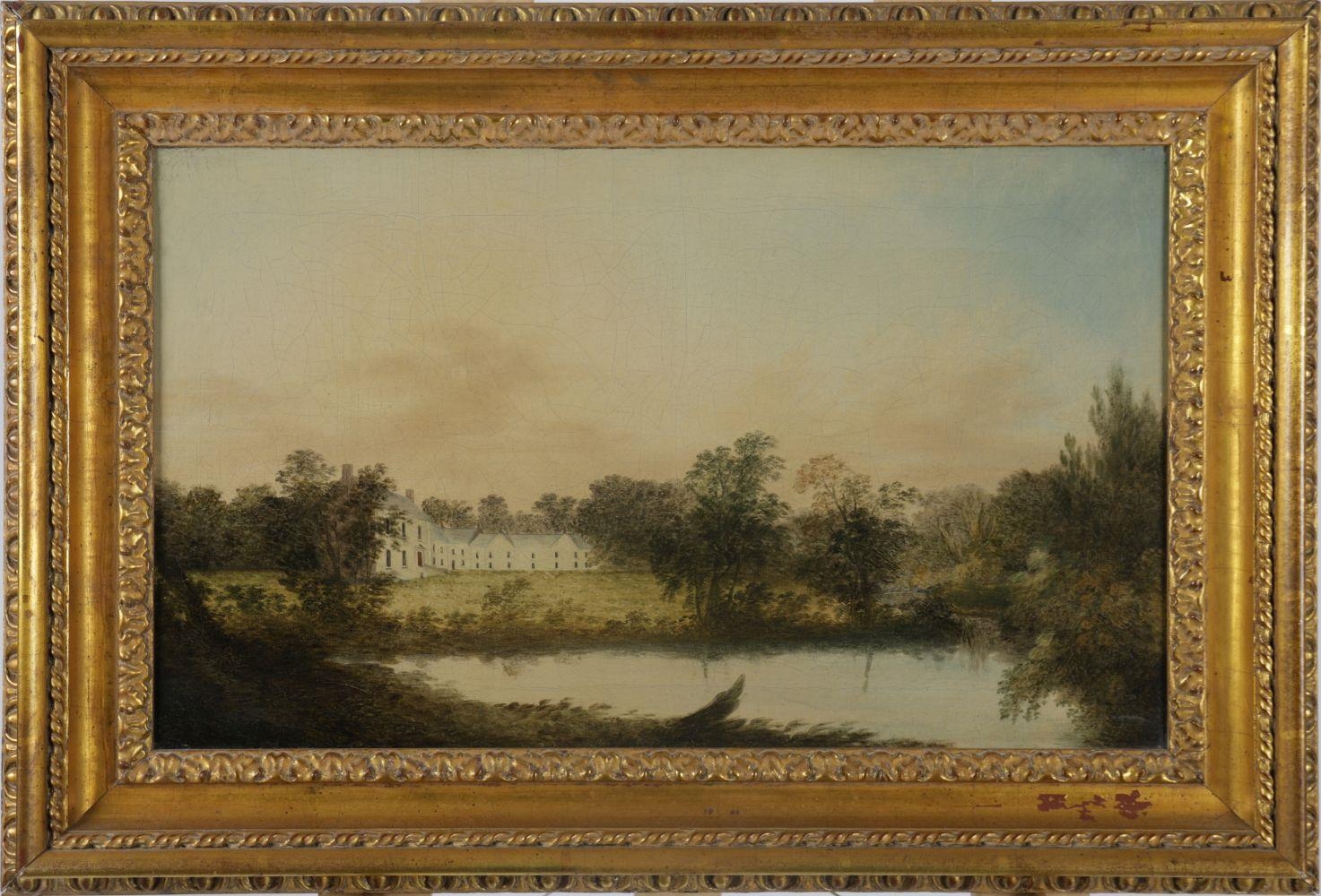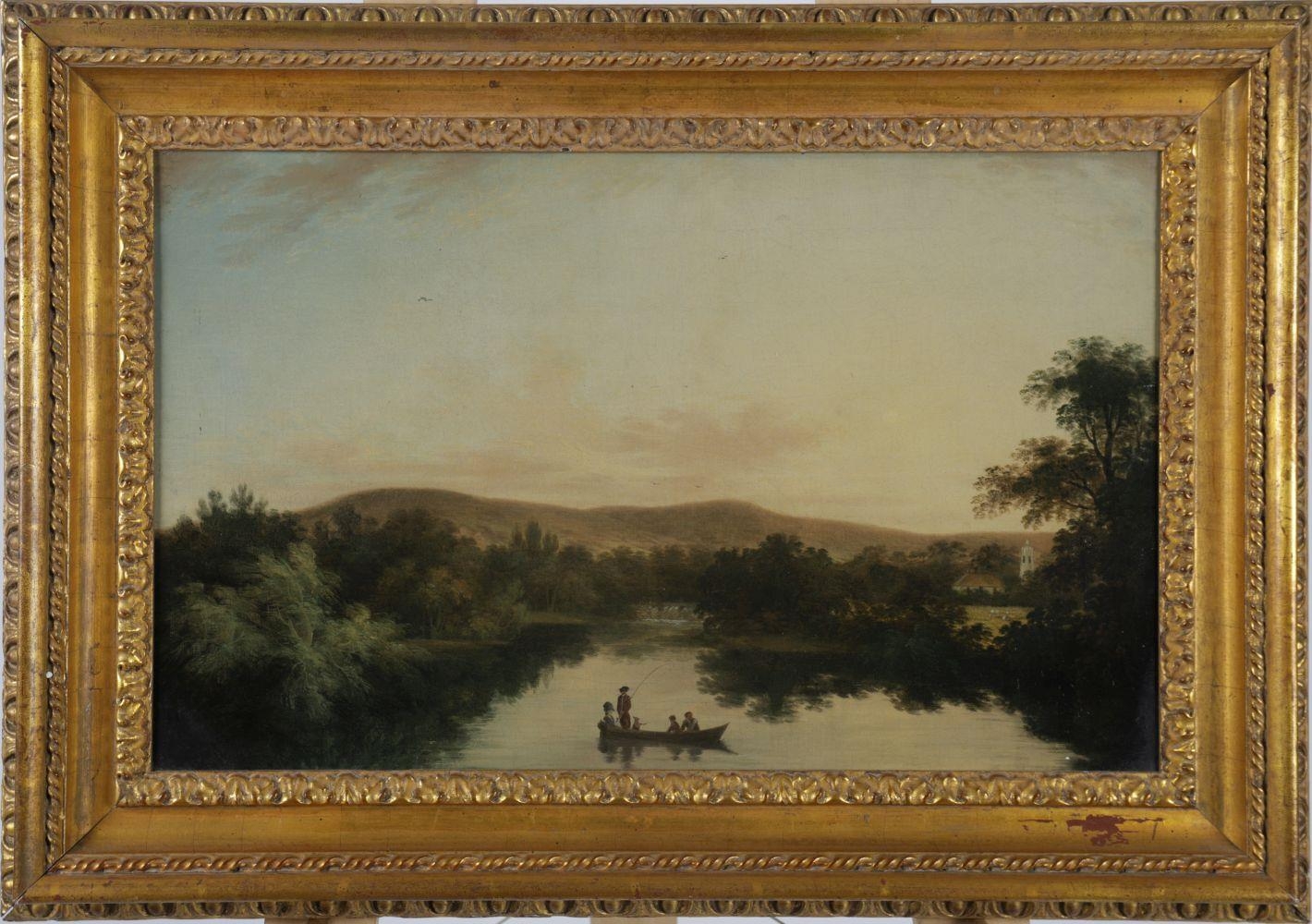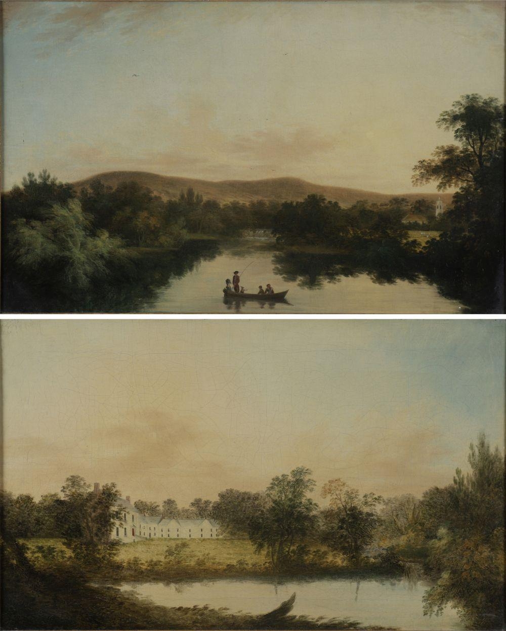 Irish School, late 18th-century. Irish country house in a river landscape; River landscape with a fishing party in a boat. Each an oil on canvas.
