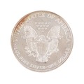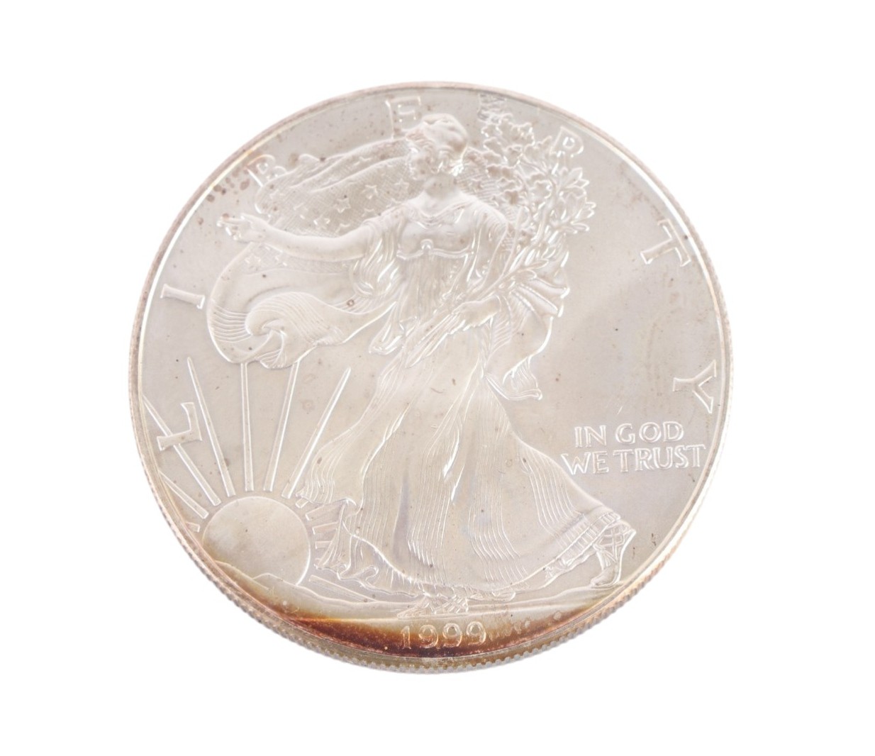 A 1999 fine silver dollar coin.