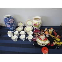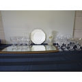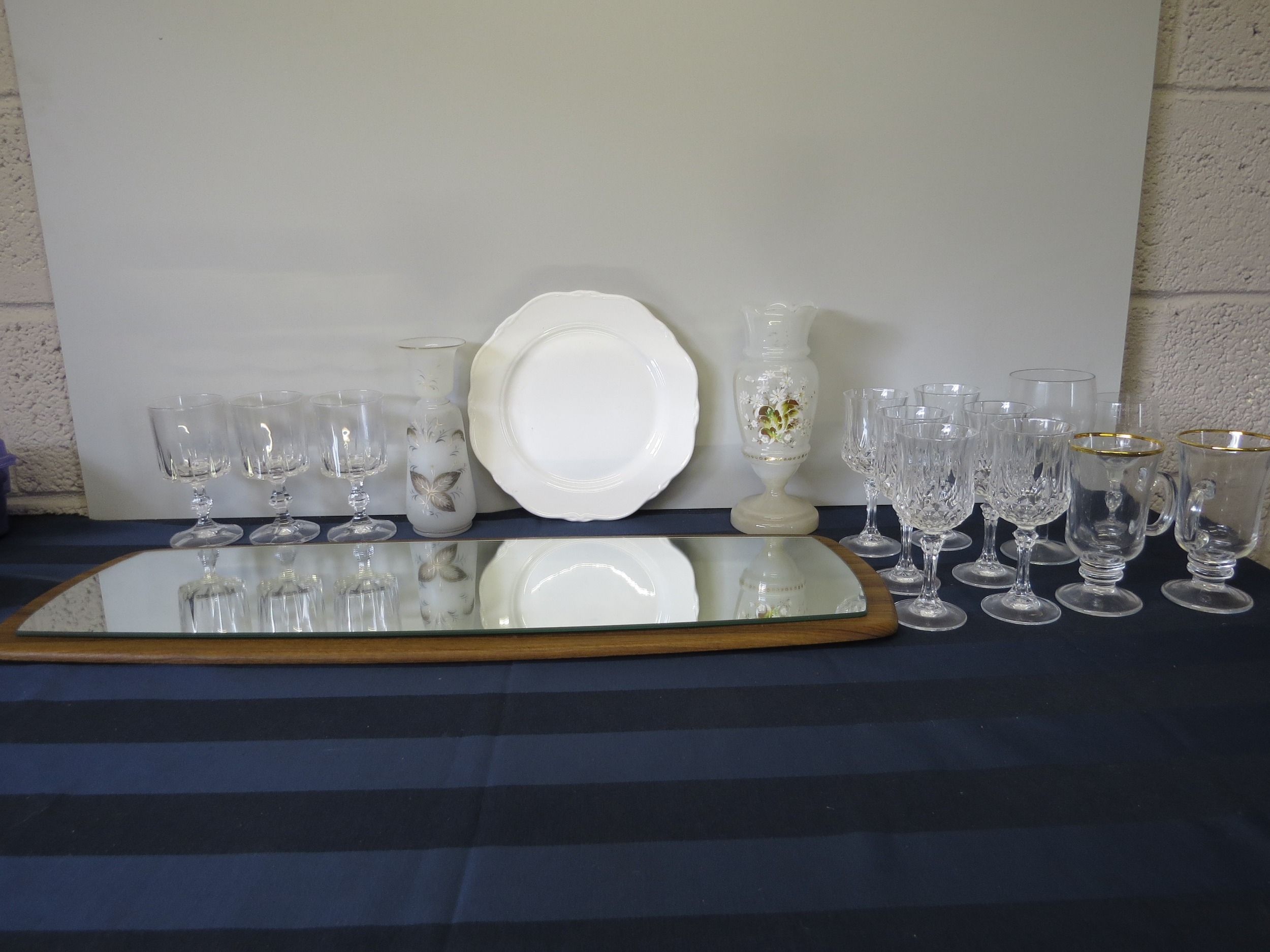 MIXED LOT OF GLASSES, CHINA AND A MIRROR