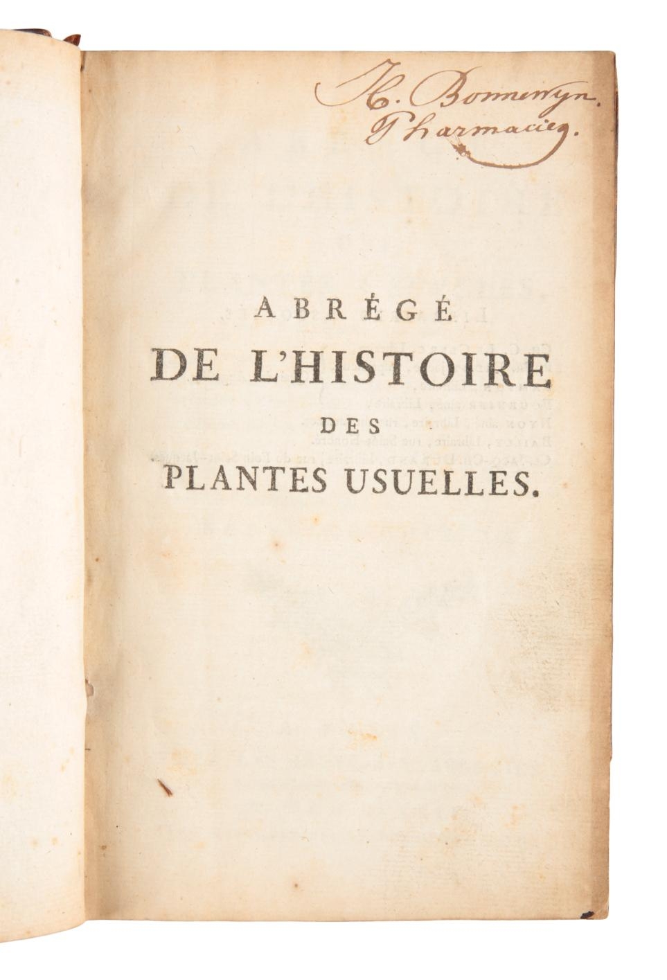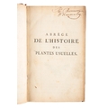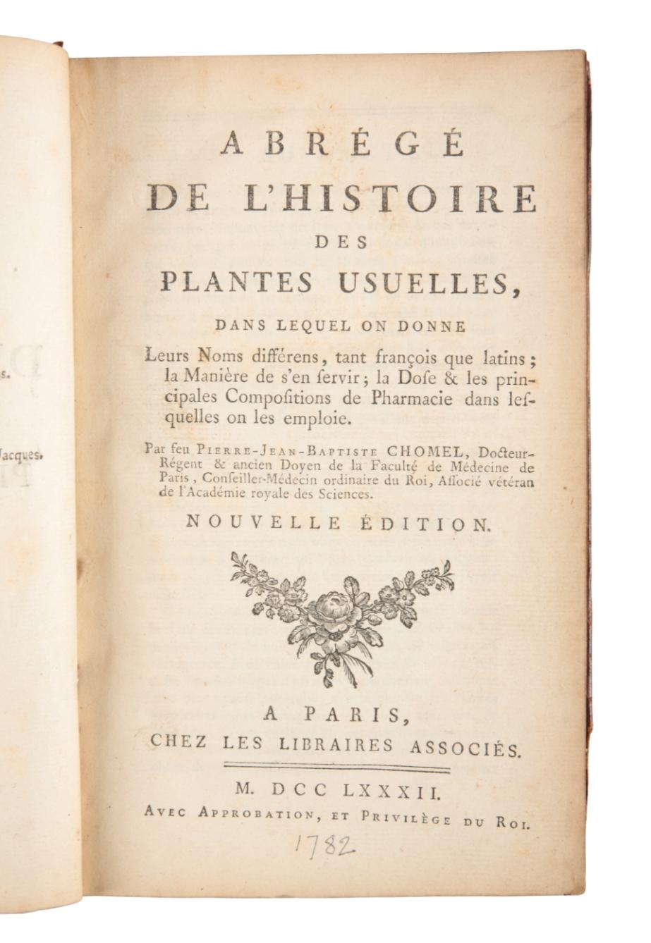 volumes 1-5, published by Didot et al, Paris, 1764, brown leather bound with gilt tooled spines and half titles, retaining plates, together with an incomplete fourth edition of the same title lacking plates (13 volumes), and eight other antiquarian French natural history books including Anime-Martin, M.: 'Etudes de la Nature', four volumes with attractive grained leather binding (26)