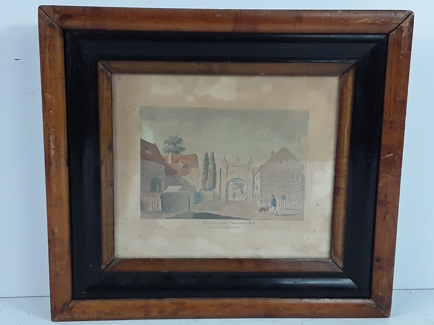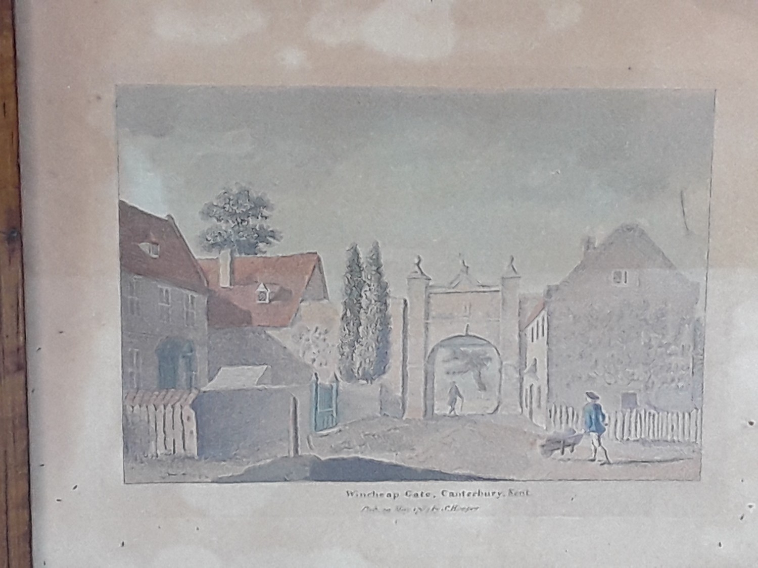 Wooden framed engraving BY hooper of Wincheap Gate, Canterbury 1784, 31 x 28cms