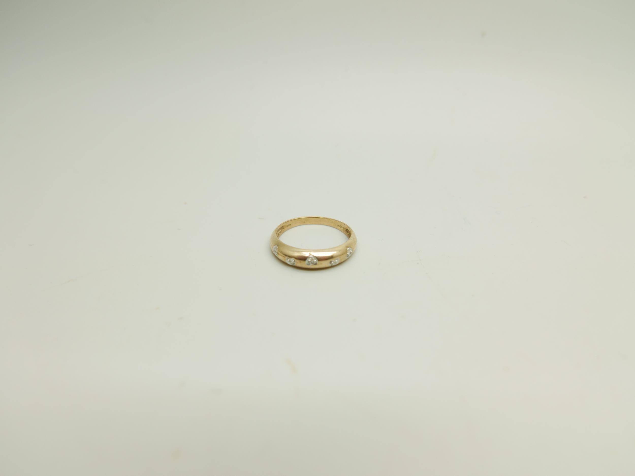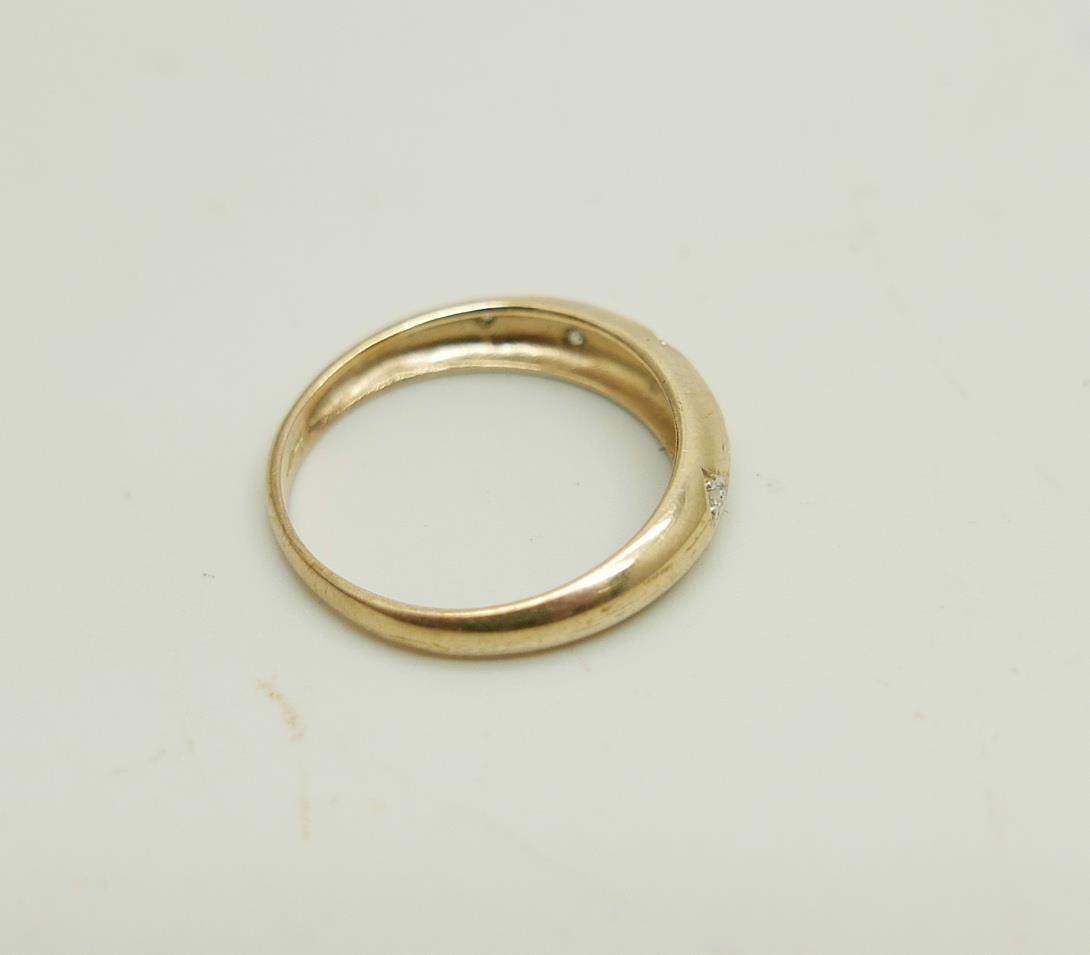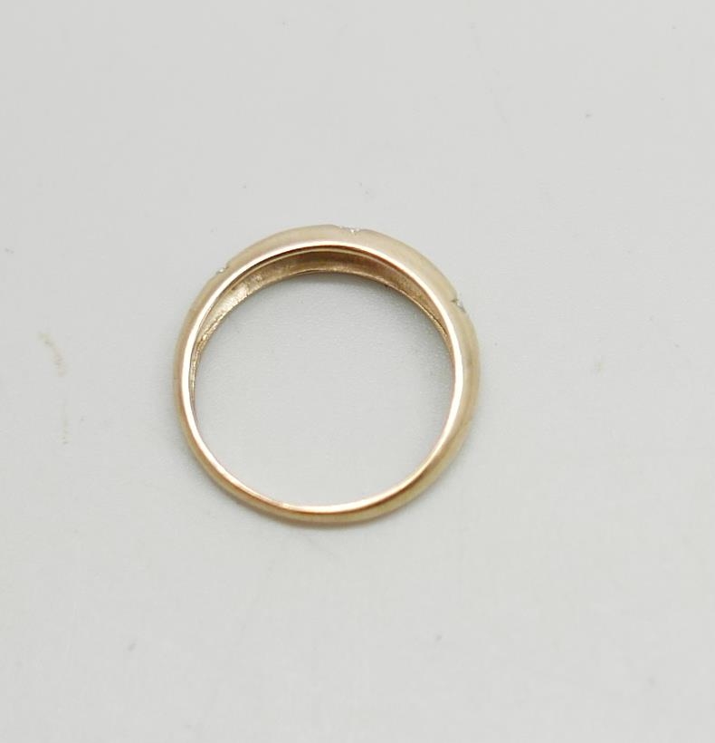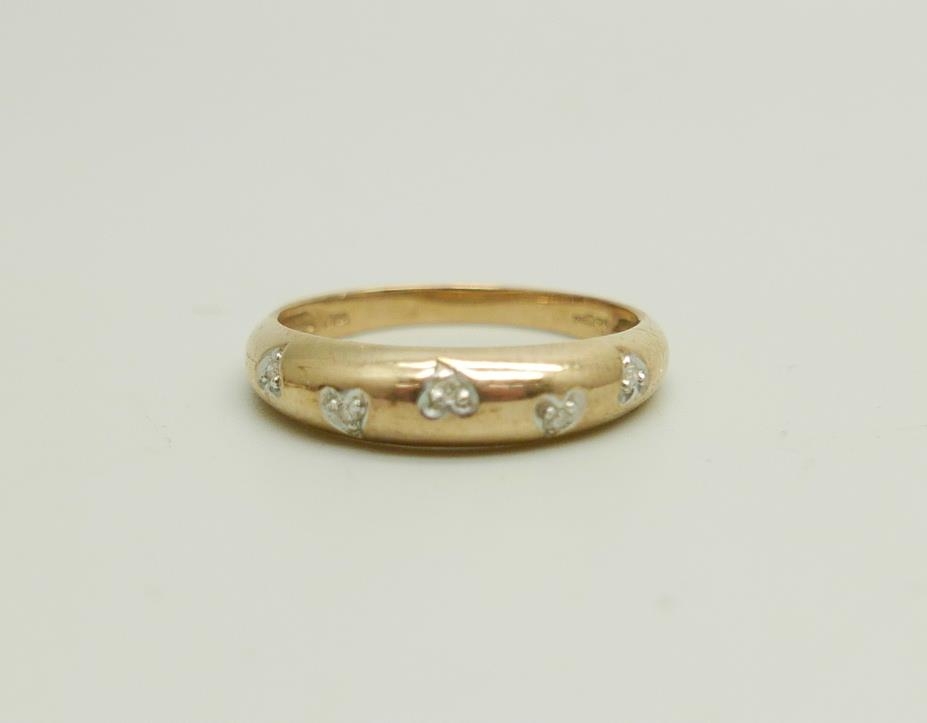 A 9ct gold, five stone diamond ring, 2g, P