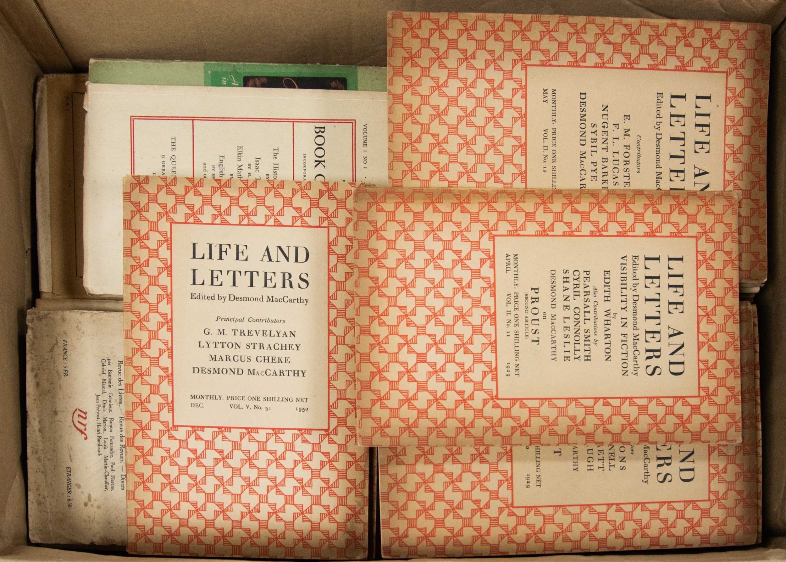 Desmond MacCarthy - Life and Letters, approx, 28 issues including, 1928 Vol I, Nos I, II, II, IV, V and beyond. The Book Collector 1952 Vol 1, No 1, with a quantity of additional Book Collector issues. Together with a quantity of additional LITERARY periodicals, journals etc. Contents of one box