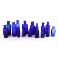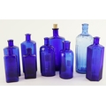 Blue Glass large Poison-type Bottles (9), two only marked "1...