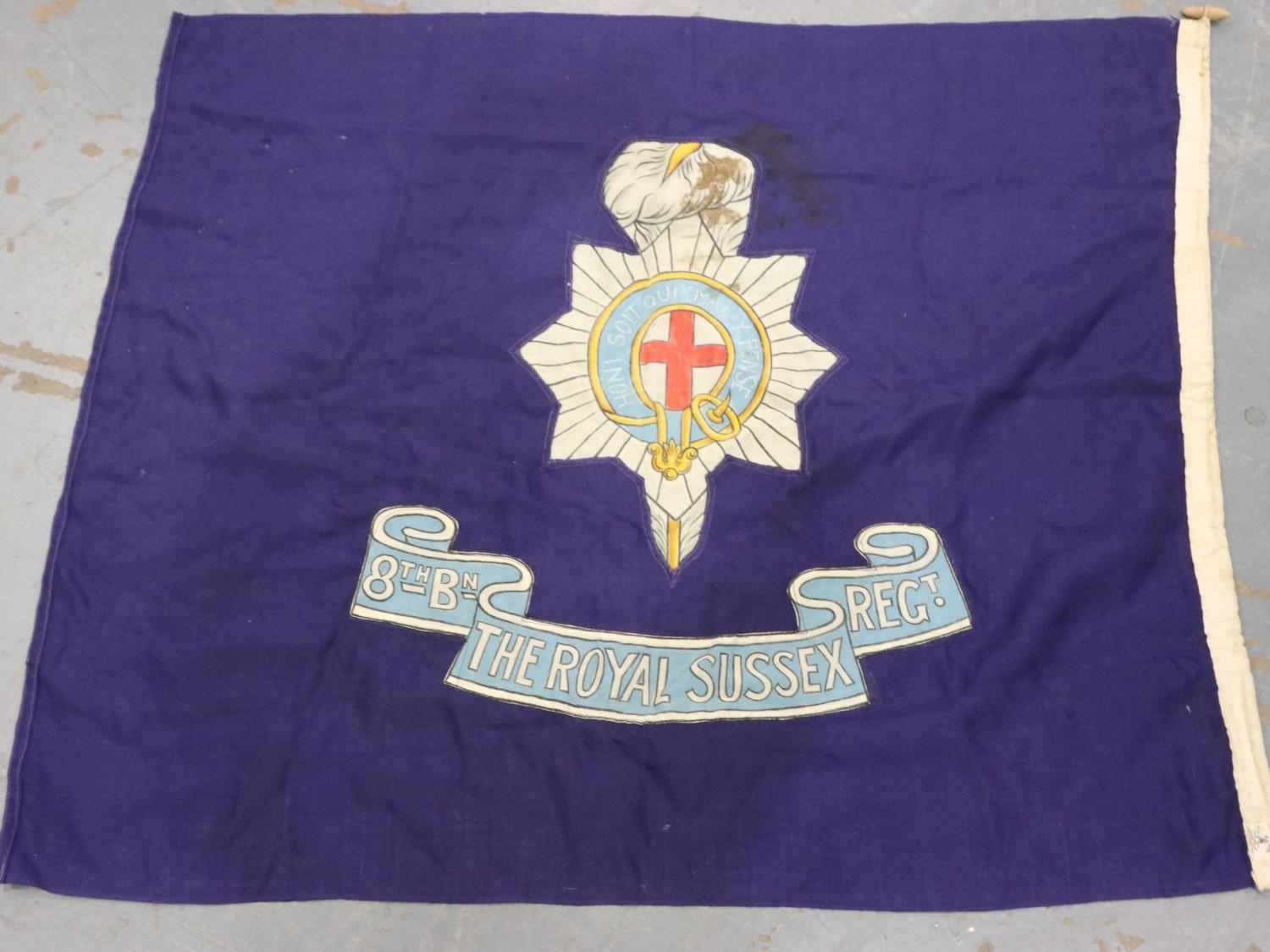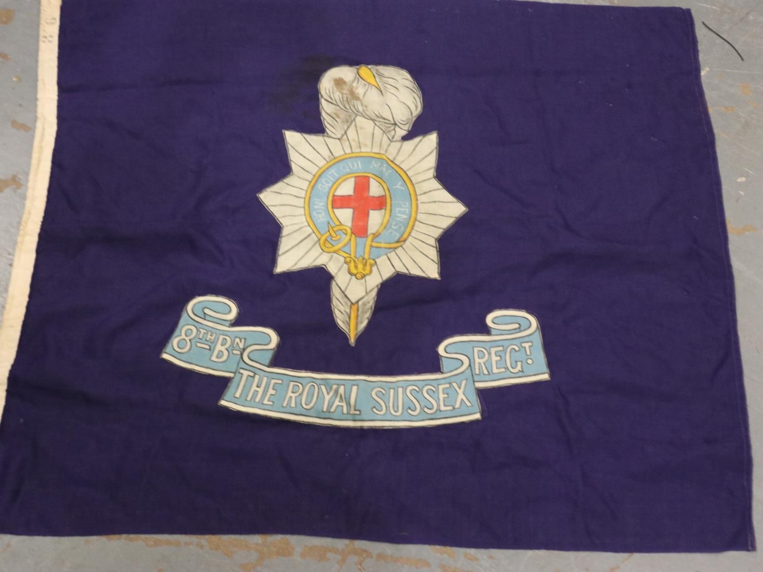 WWI British 8th Battalion Royal Sussex Regiment Flag made by the Excelsior Flag Company. UK P&P Group 1 (£16+VAT for the first lot and £2+VAT for subsequent lots)