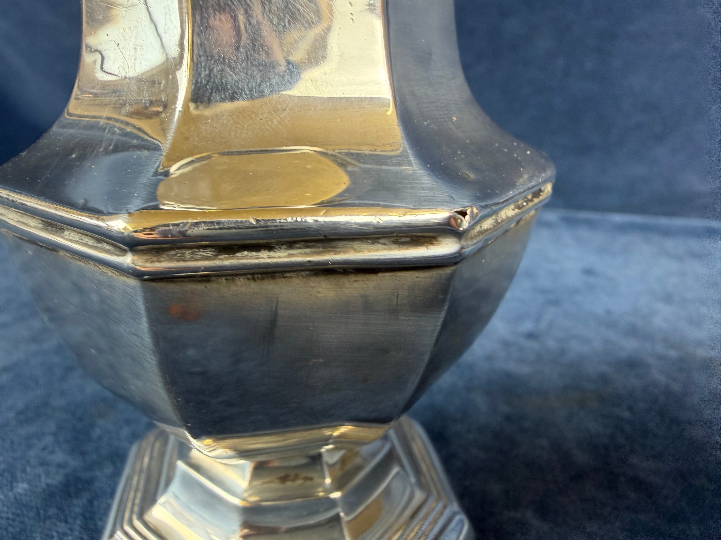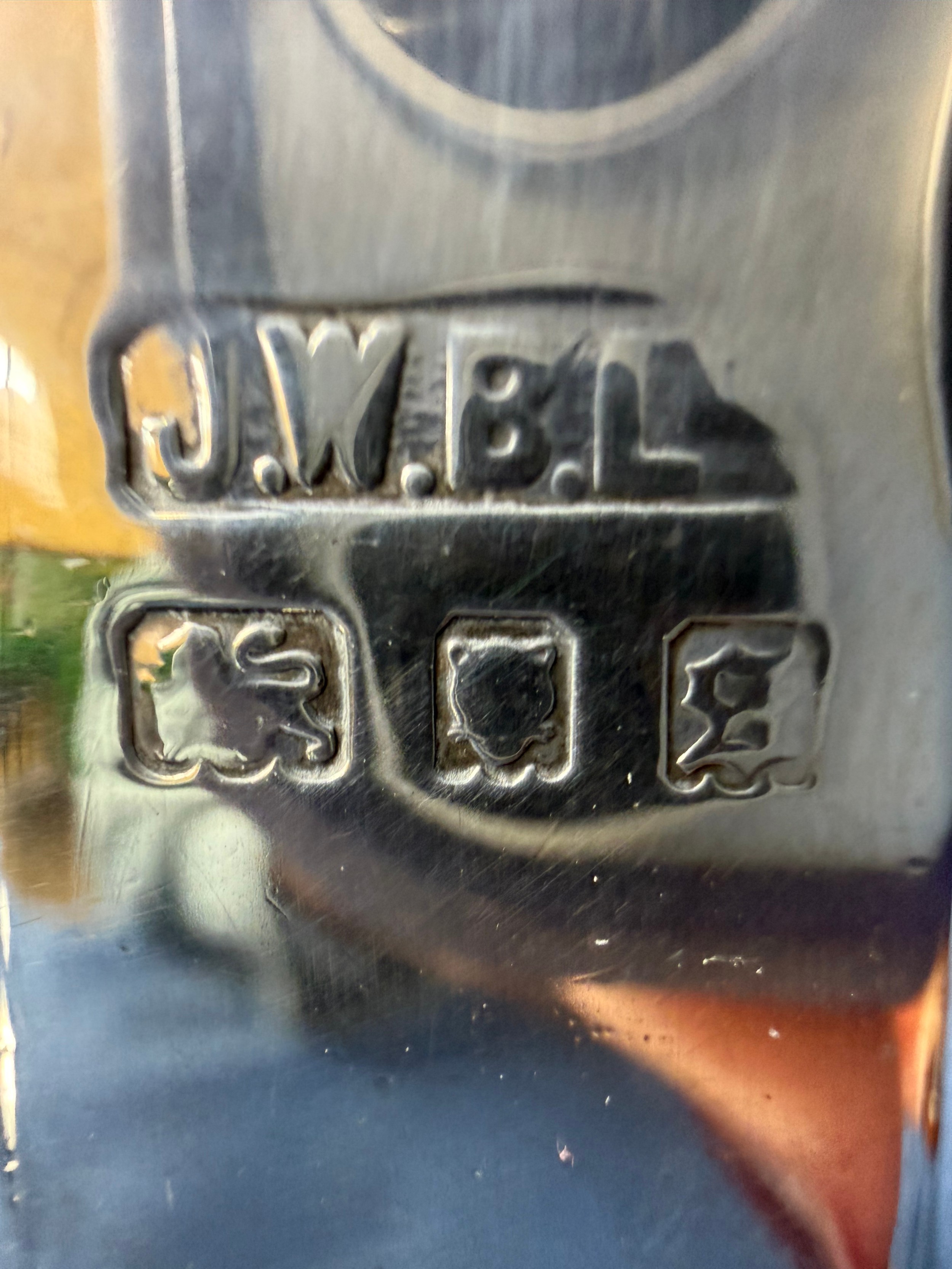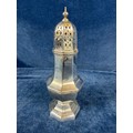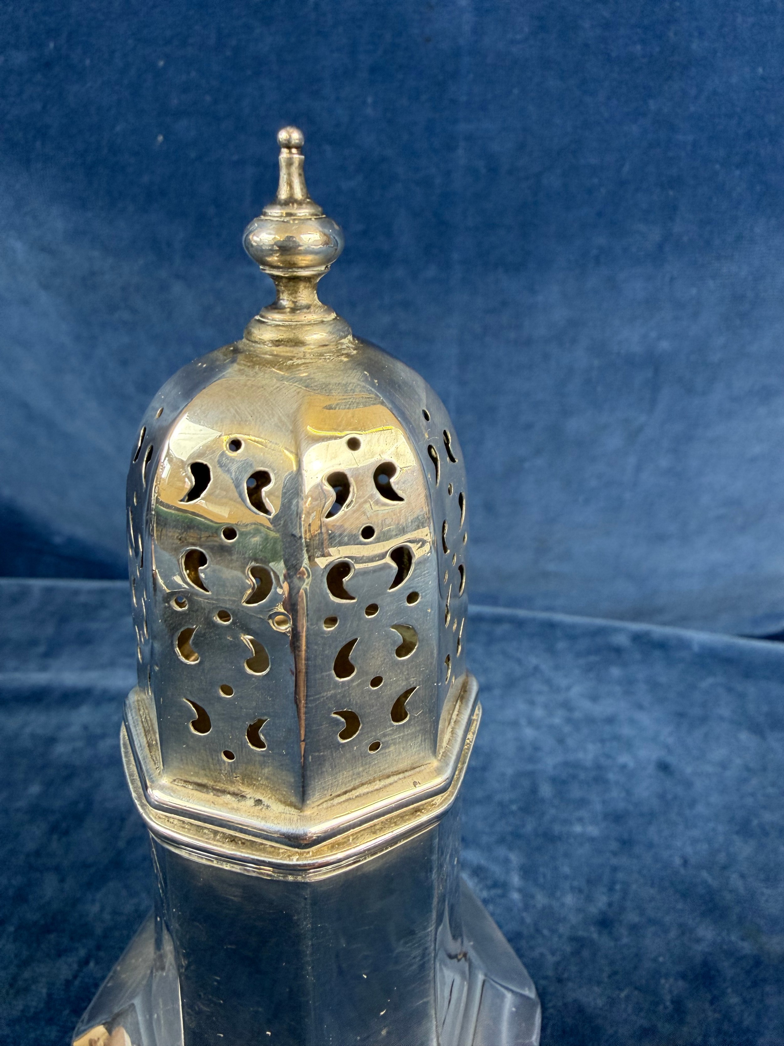 A silver sugar shaker of plain design and pierced top, hallmarked London 1933-1934, makers mark J. W. B. L.