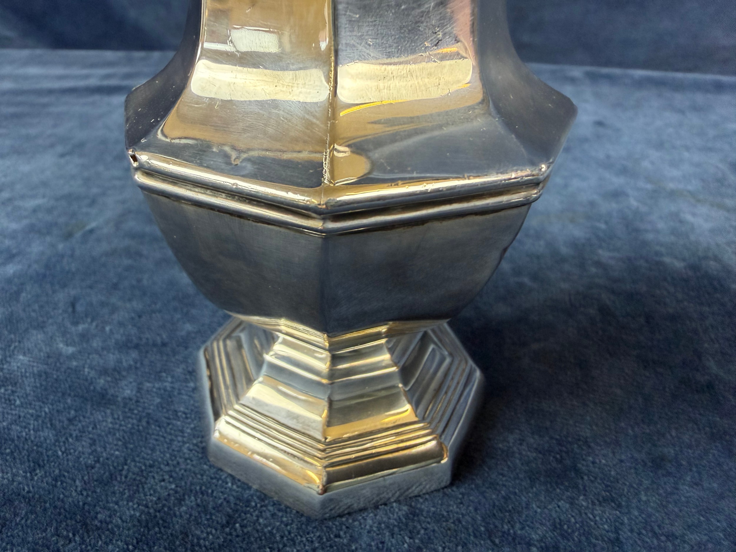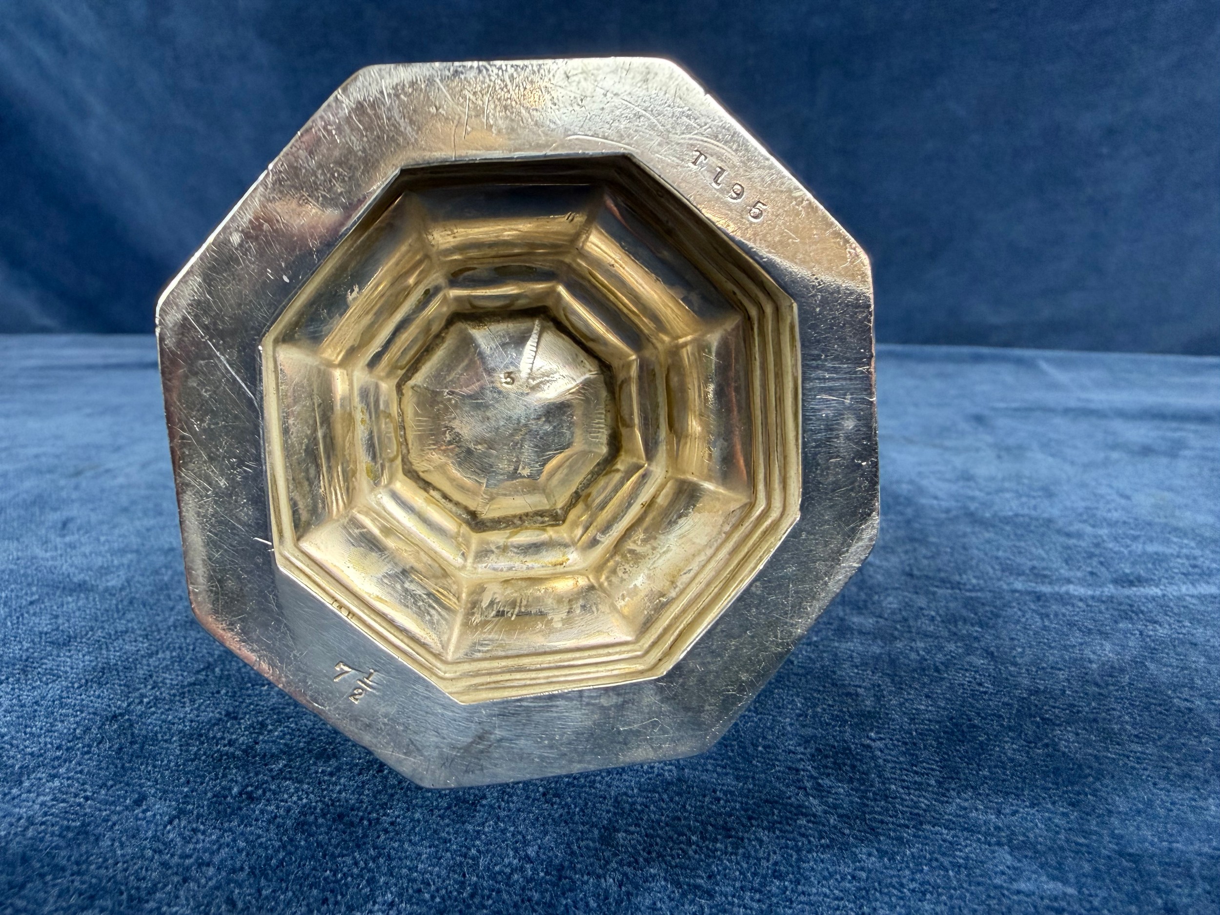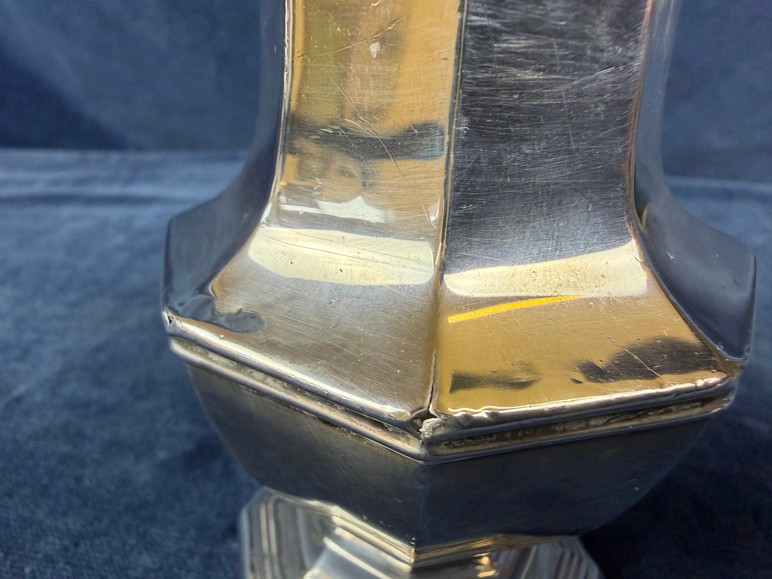 A silver sugar shaker of plain design and pierced top, hallmarked London 1933-1934, makers mark J. W. B. L.