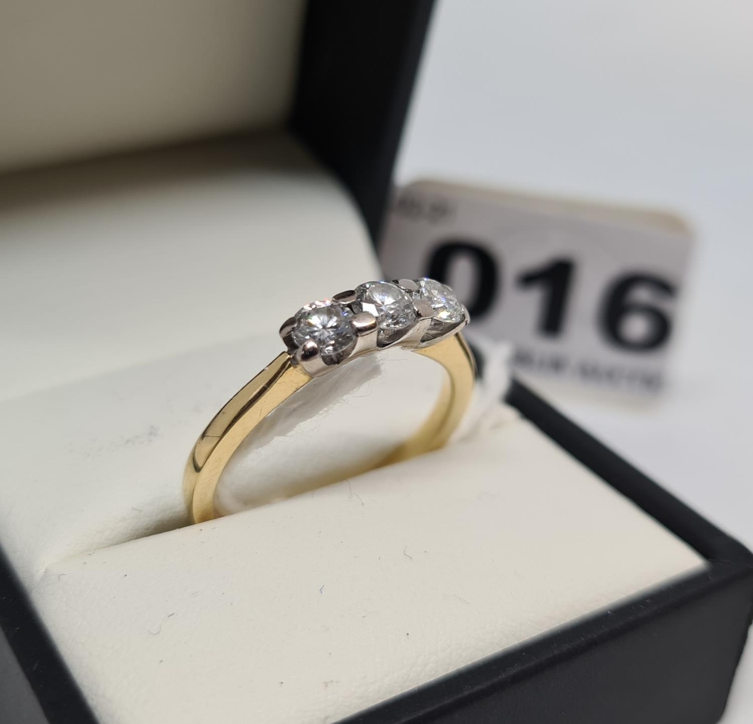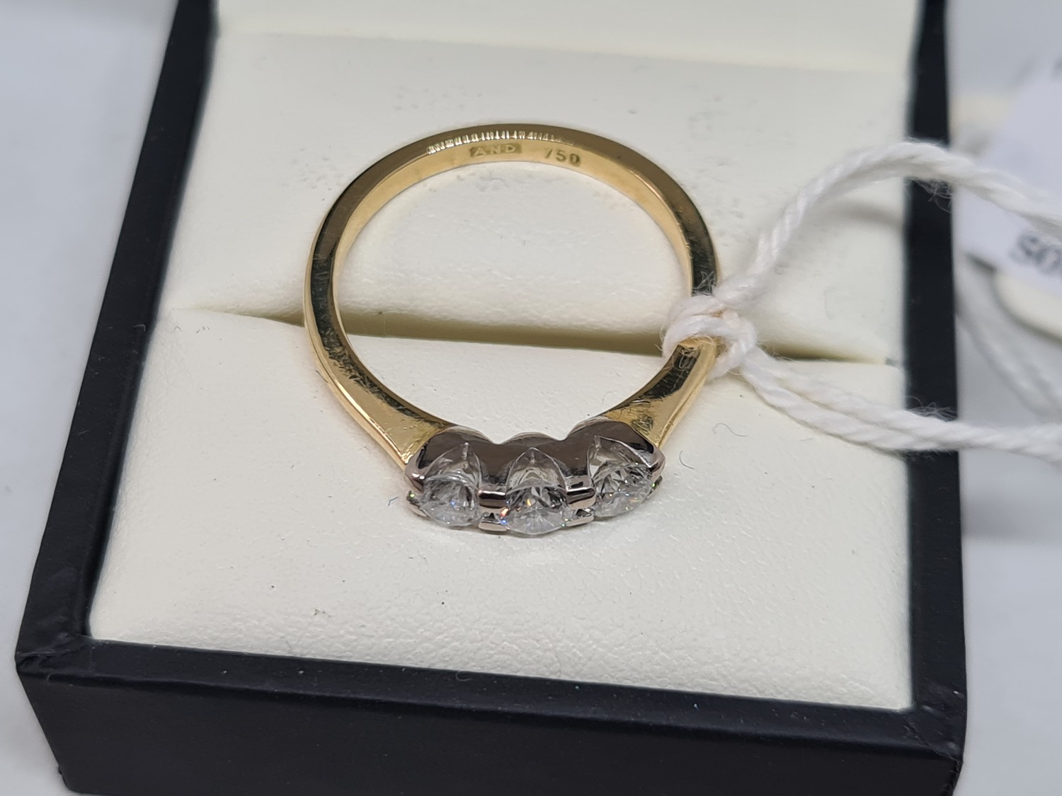 Vintage 18ct gold 3 stone diamond engagement ring Approx 0.60ct Size N 1/2