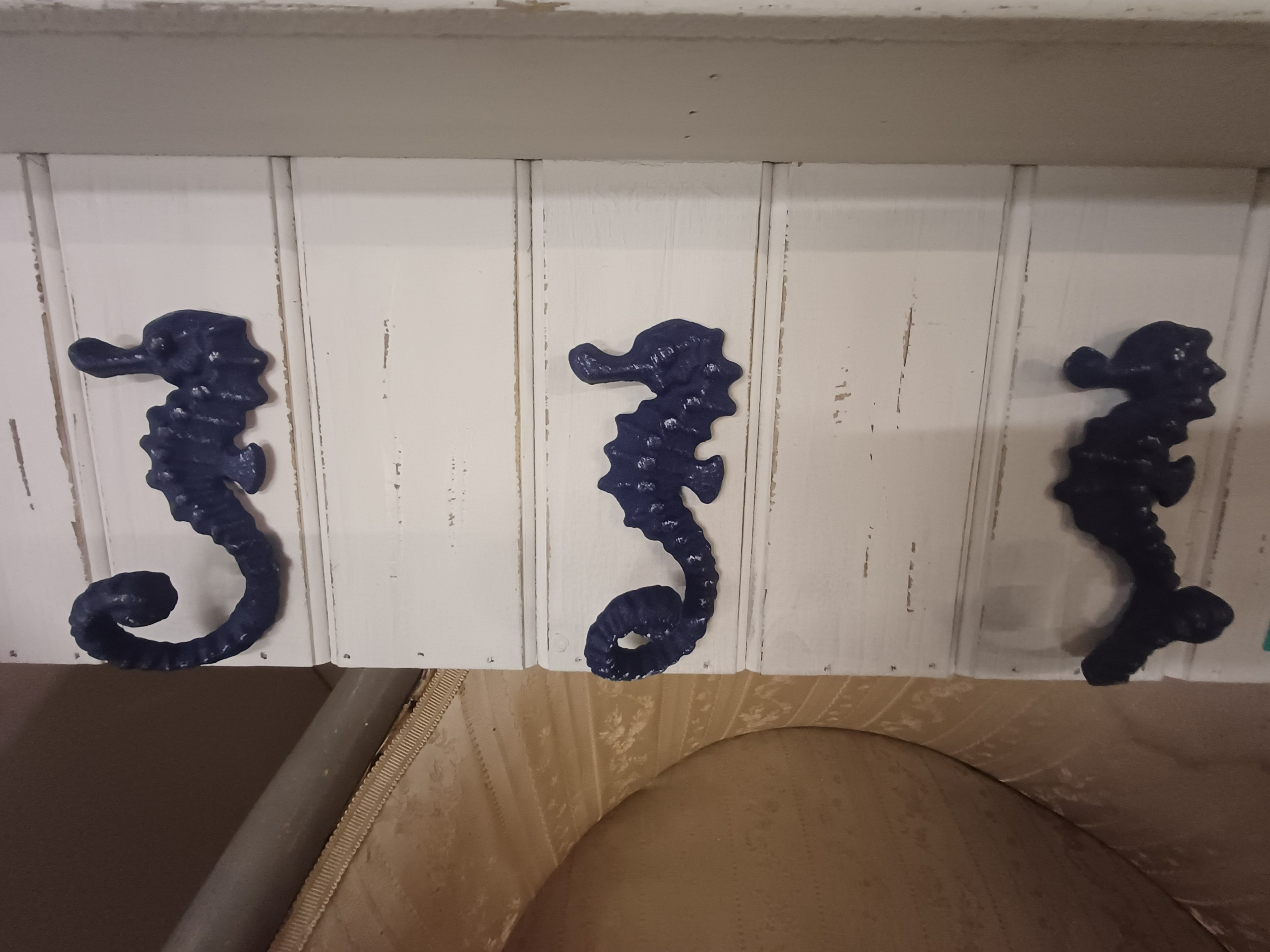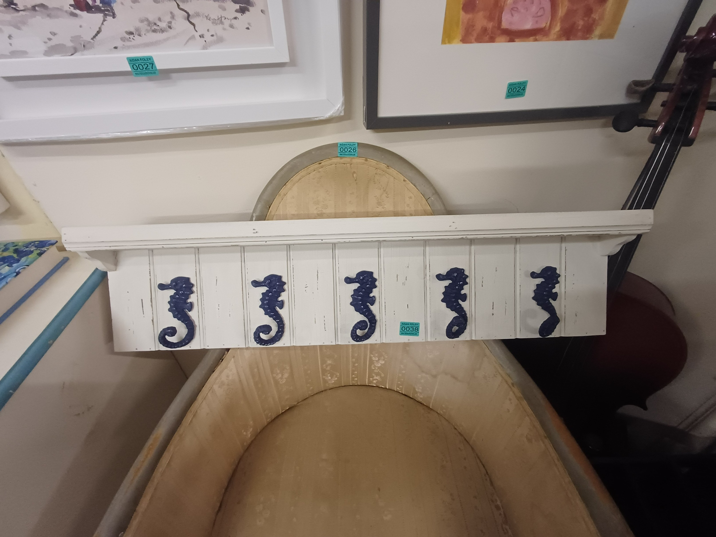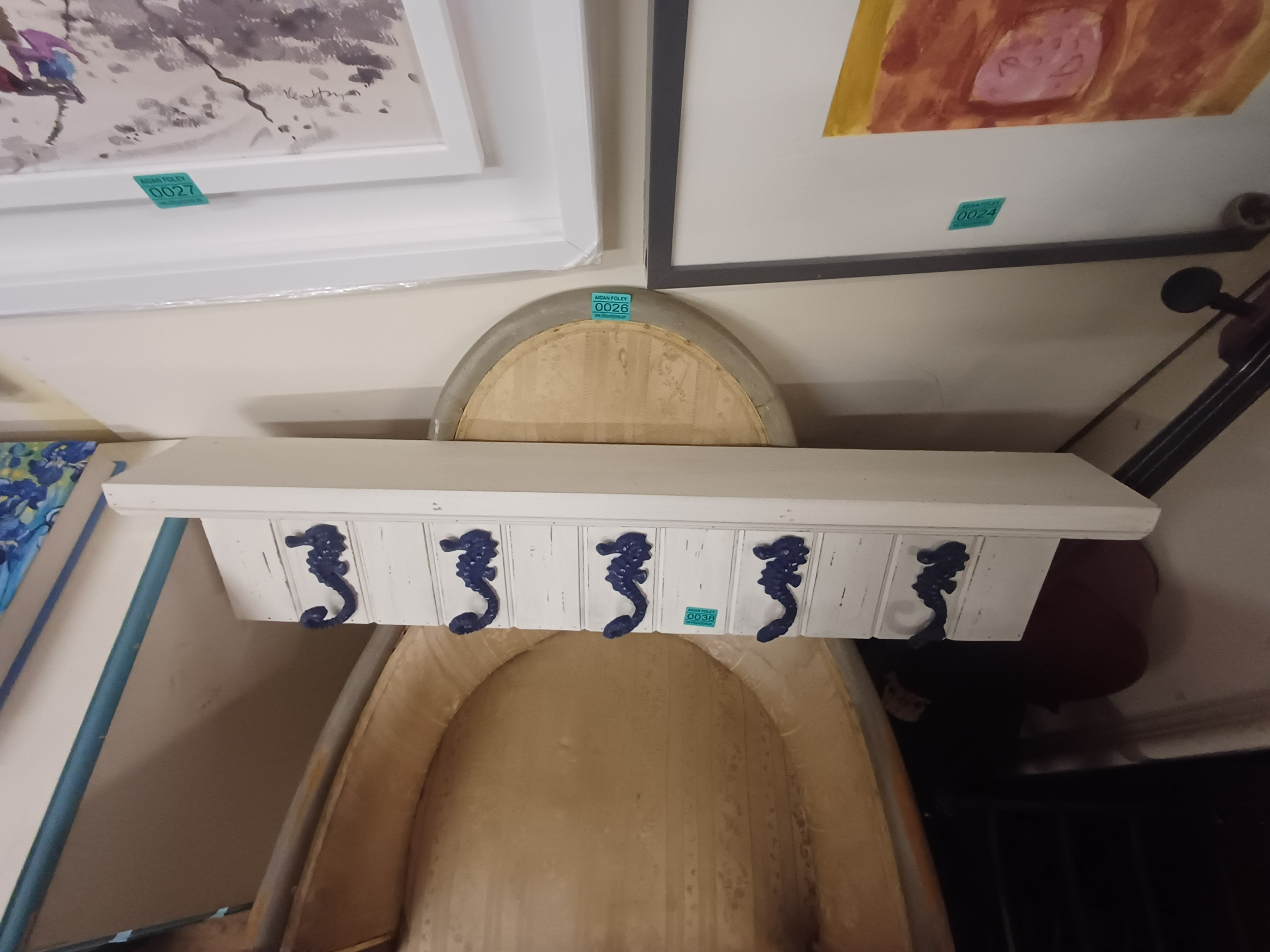 White Painted Coat Rack with Sea Horse Coat Hooks (88cm x 22cm x 11cm)
