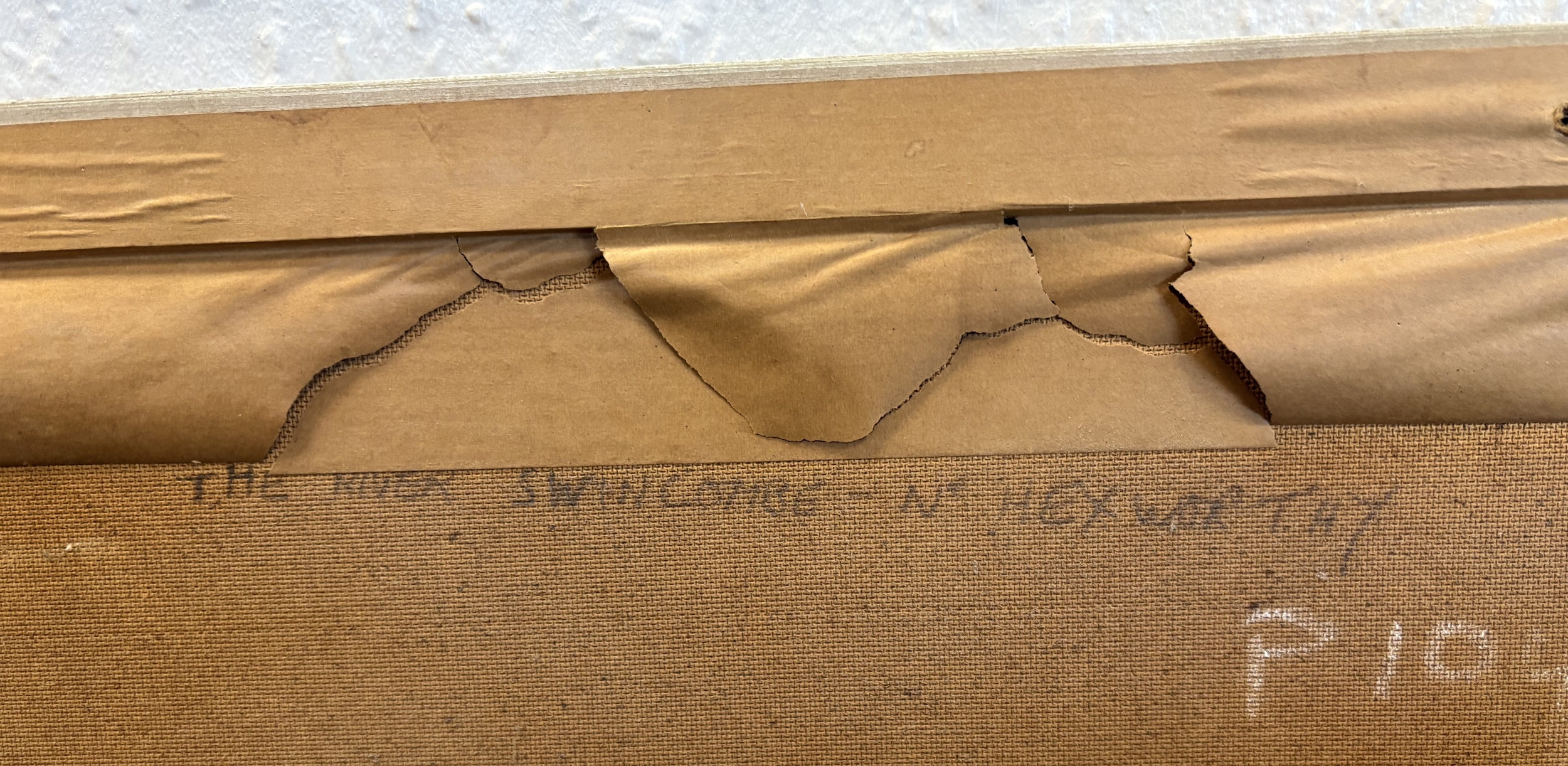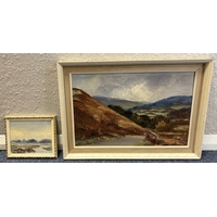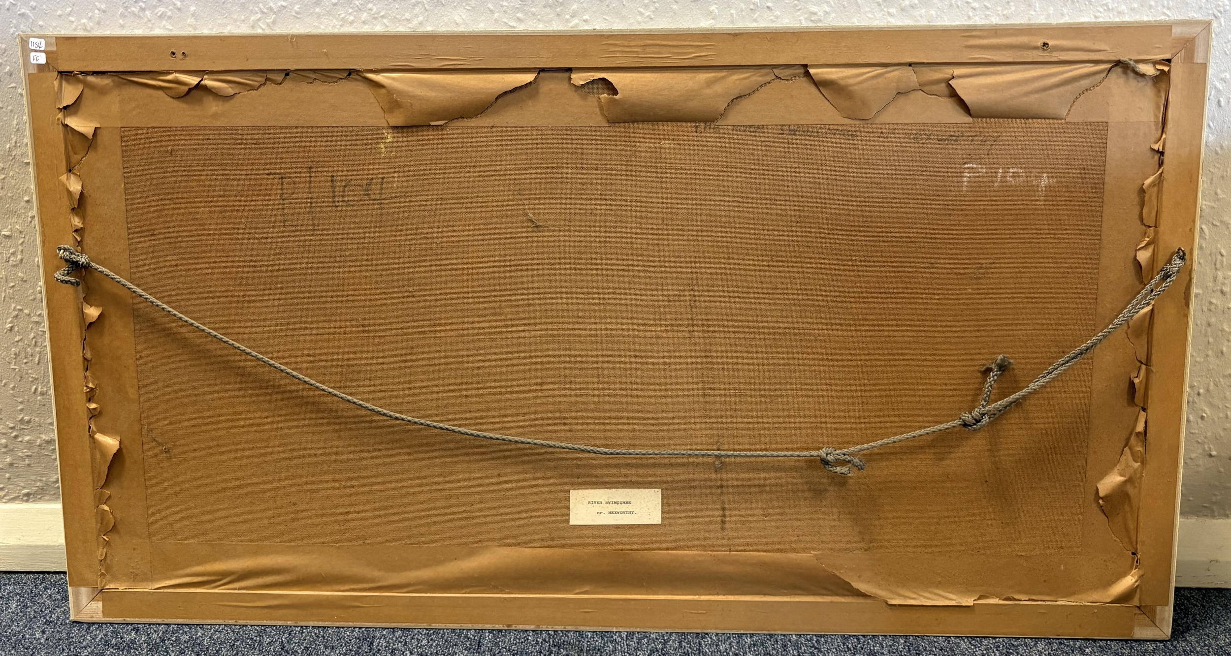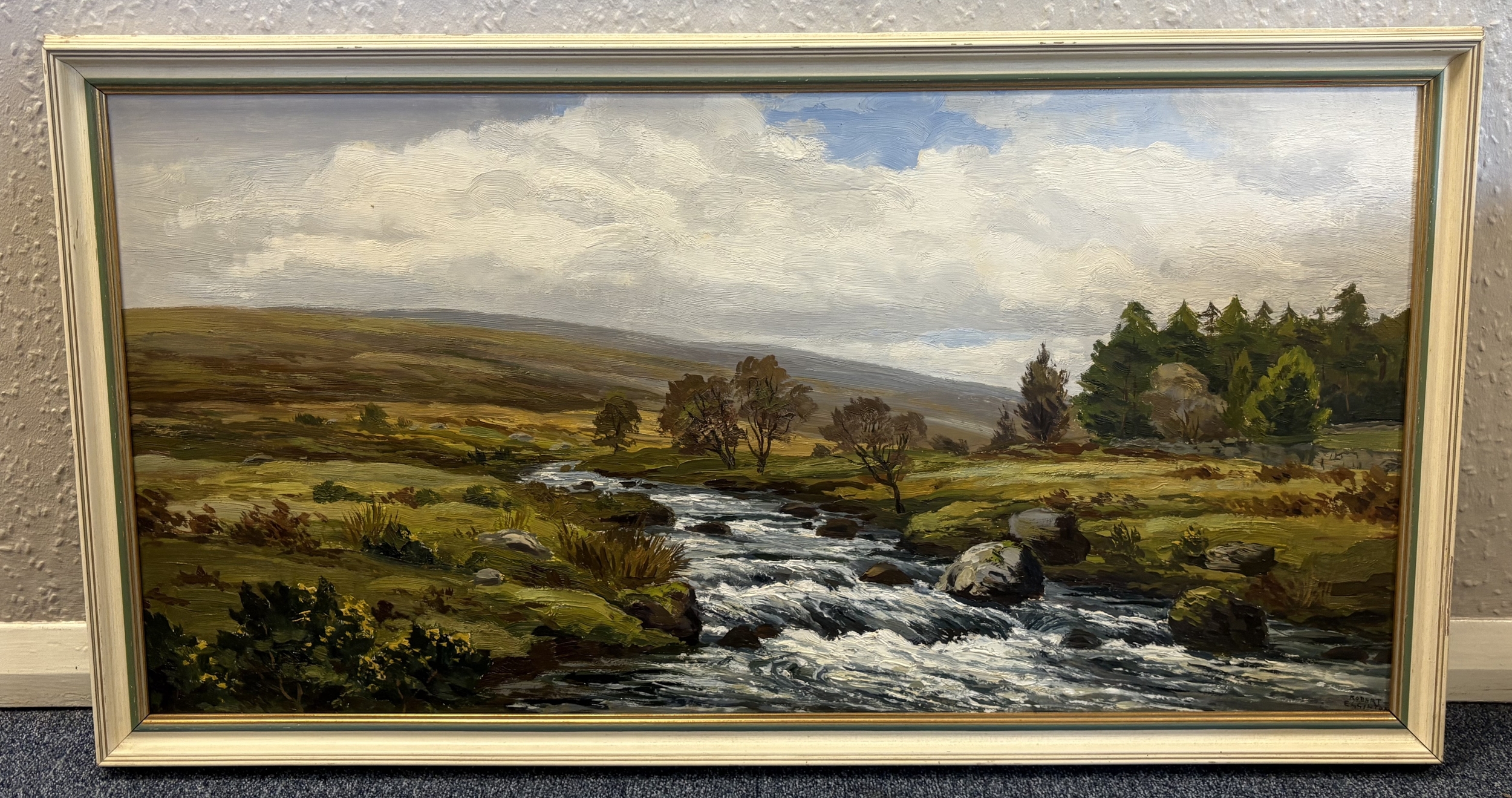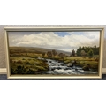 ROBERT EGGINGTON: A framed oil on board entitled ' The River Swincombe, Nr Hexworthy' depicting a typical Dartmoor scene. Signed to bottom left' Labelled verso. Approx. 90 cm x 44 cm (ss). Est. £80 - £120.