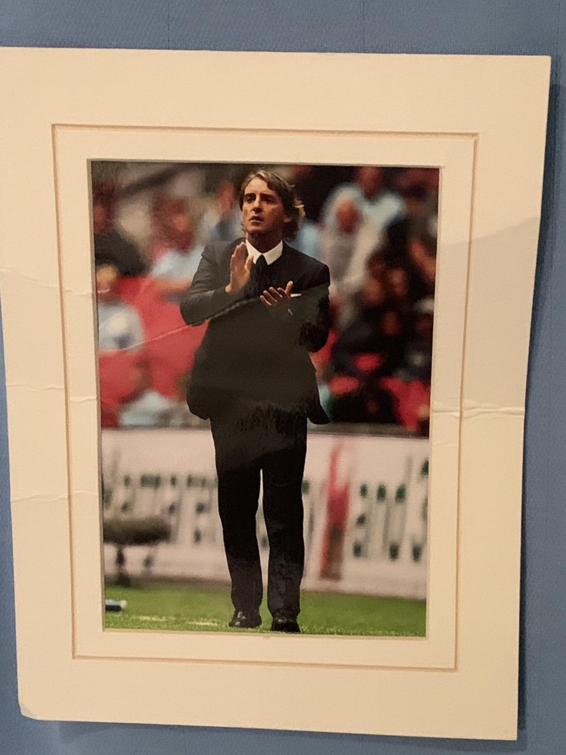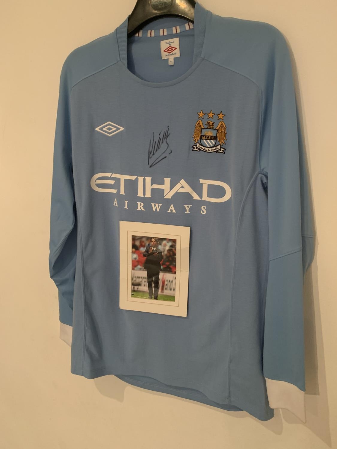 A SIGNED MANCHESTER CITY SHIRT ROBERTO MANCINI WITH A PHOTOGRAPH COMPLETE WITH CERTIFICATE OF AUTHENTICITY
