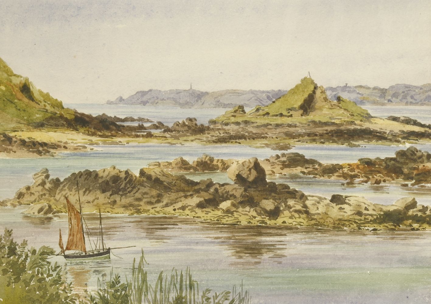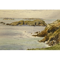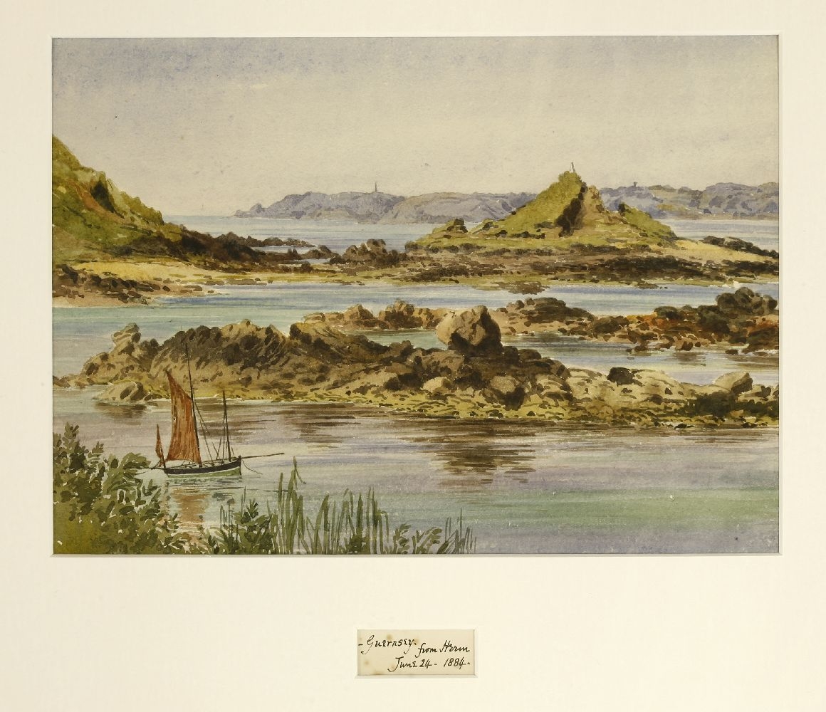 Eliza Ridley Sandys (British19th century) Guernsey from Herm, watercolour, inscribed with title and dated June 24 1884, 17 x 24 cm.