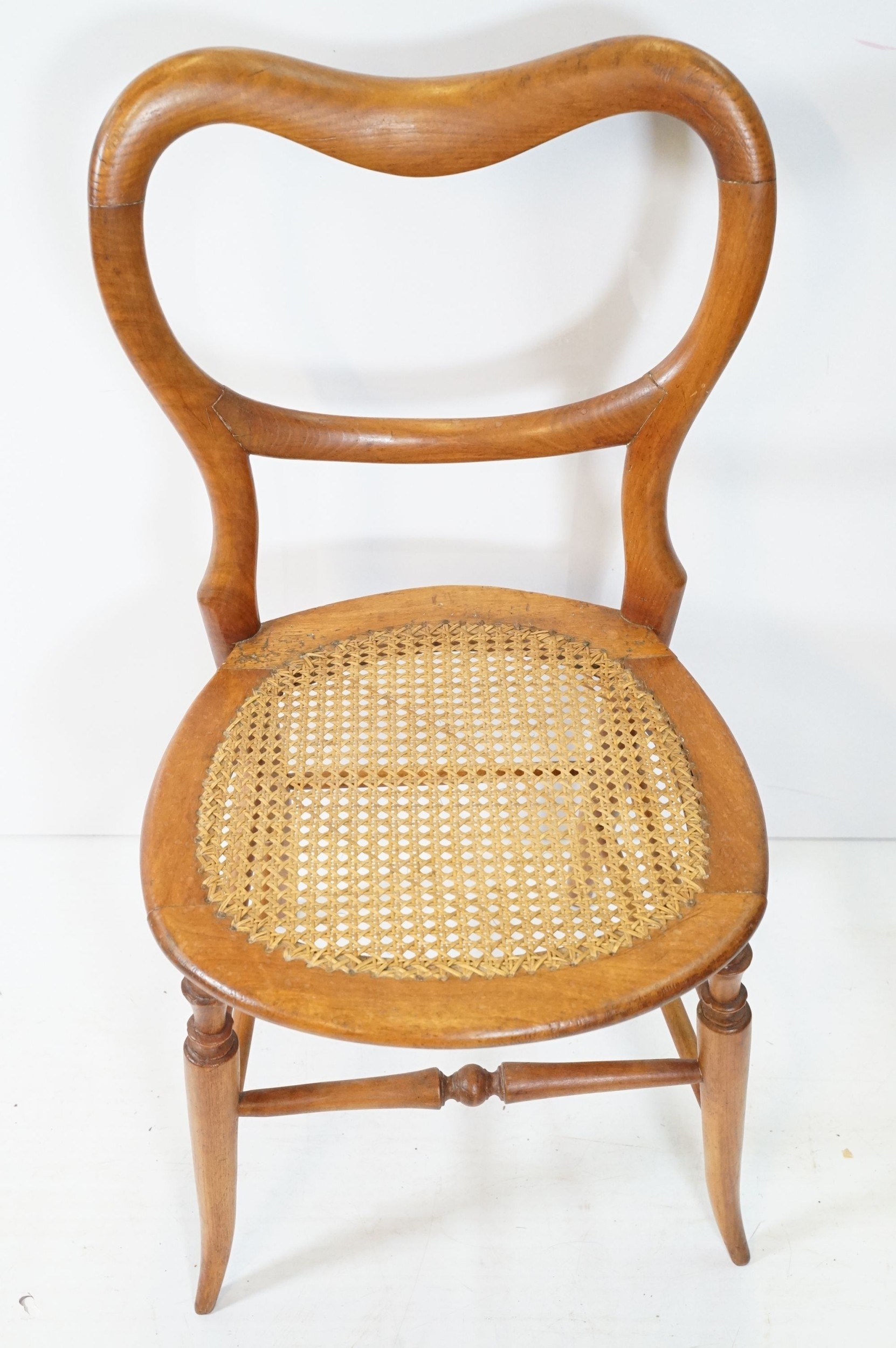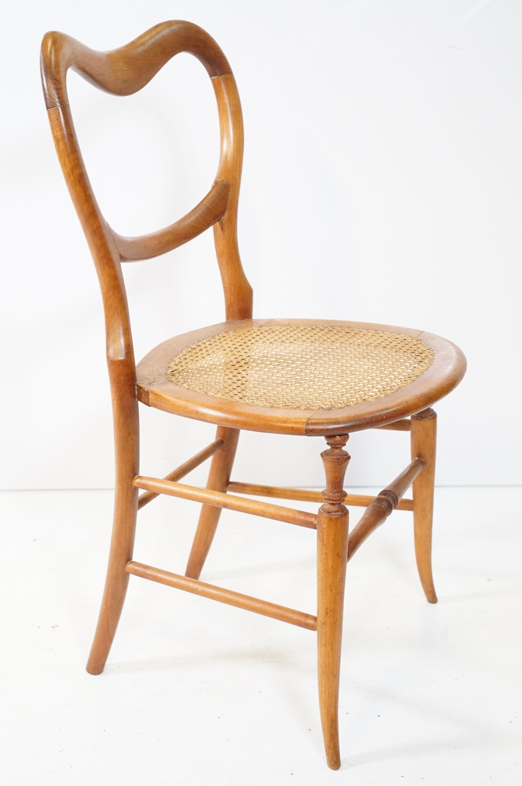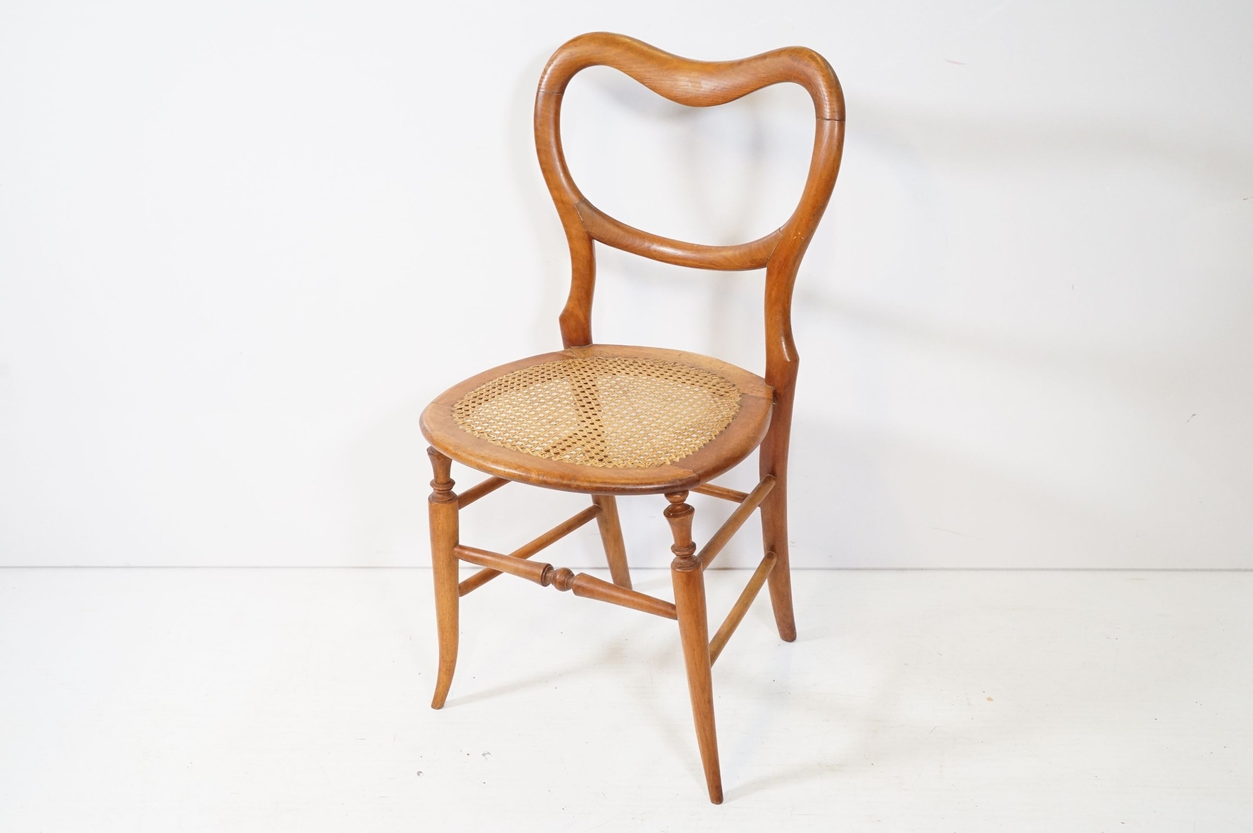 Early 20th century balloon back dining chair, with rattan seat, raised on splayed legs and box stretcher, W 43cm x H 85cm (approx.)