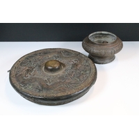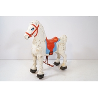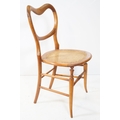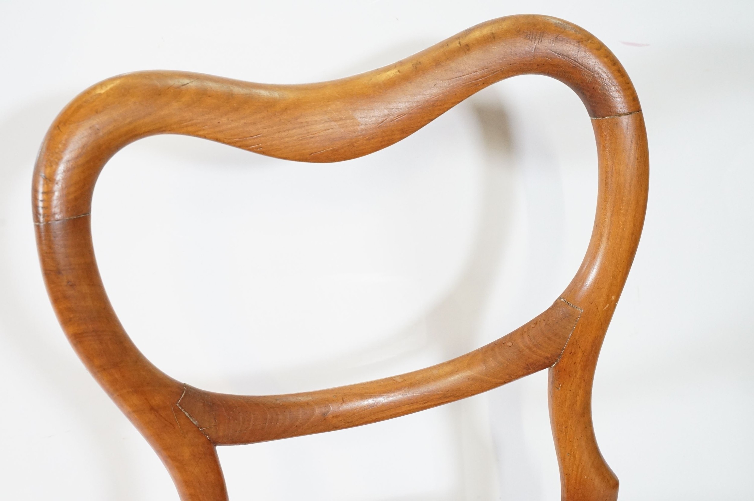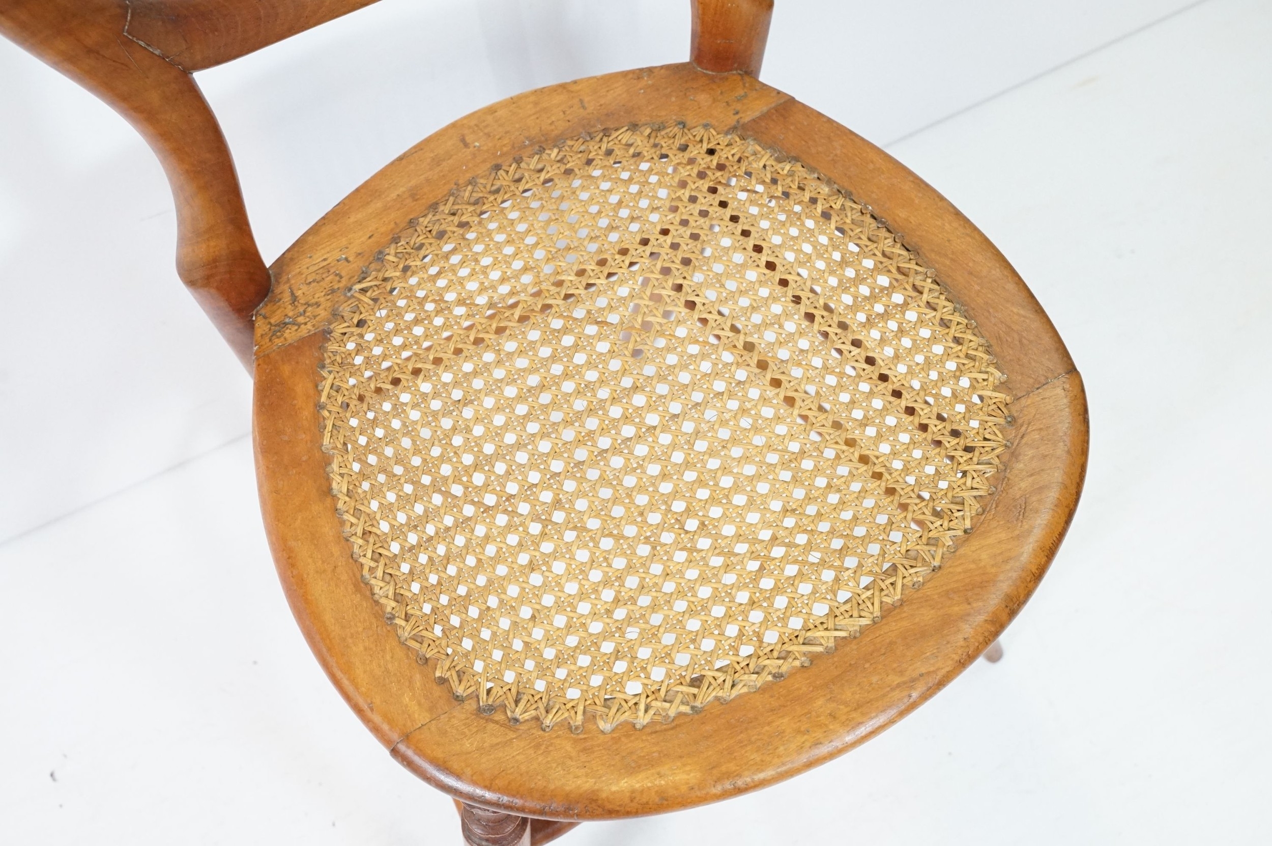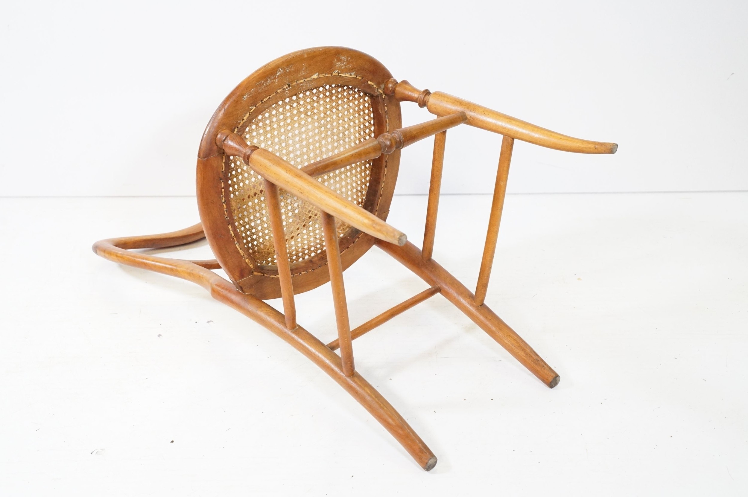 Early 20th century balloon back dining chair, with rattan seat, raised on splayed legs and box stretcher, W 43cm x H 85cm (approx.)