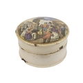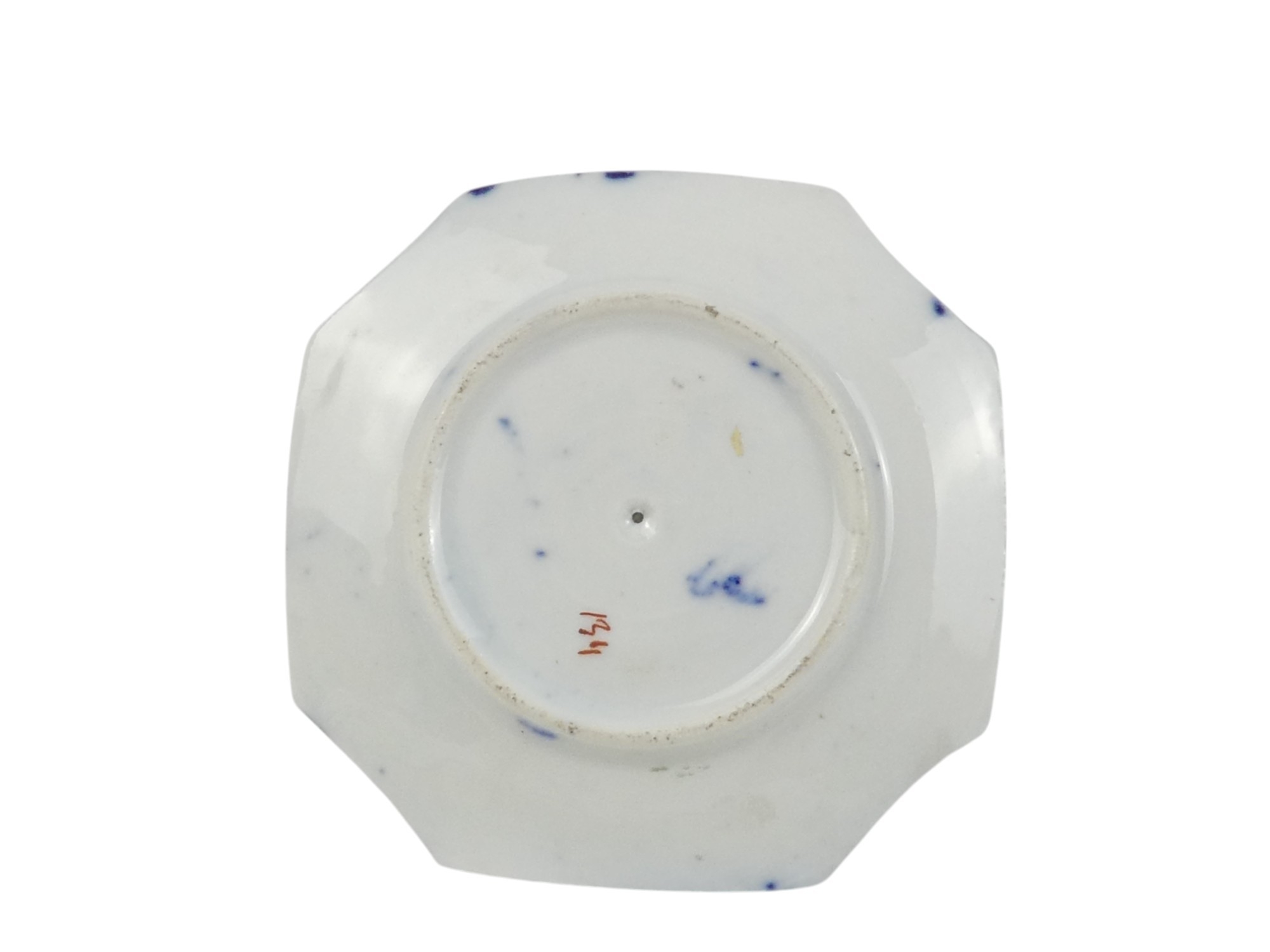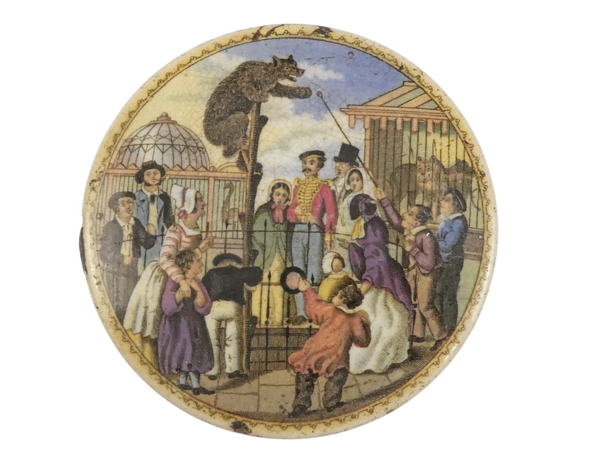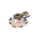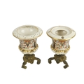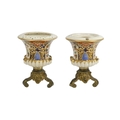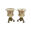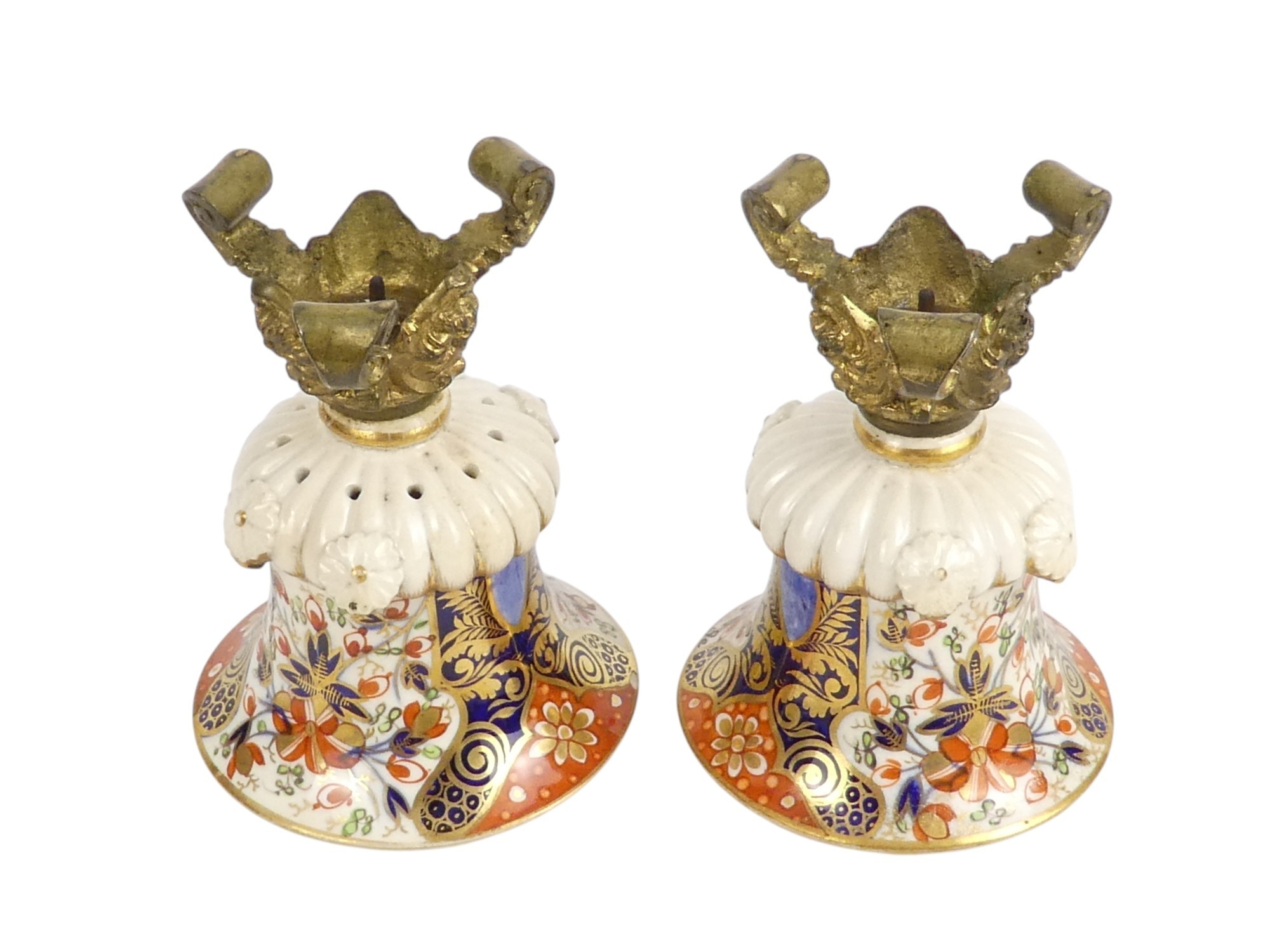 A pair of Royal Crown Derby jugs - of squat form and decorated in the Imari style, marks to base, 13cm high, together with a pair of campana style desk pieces, a continental inkwell and a Prattware pot with cover.